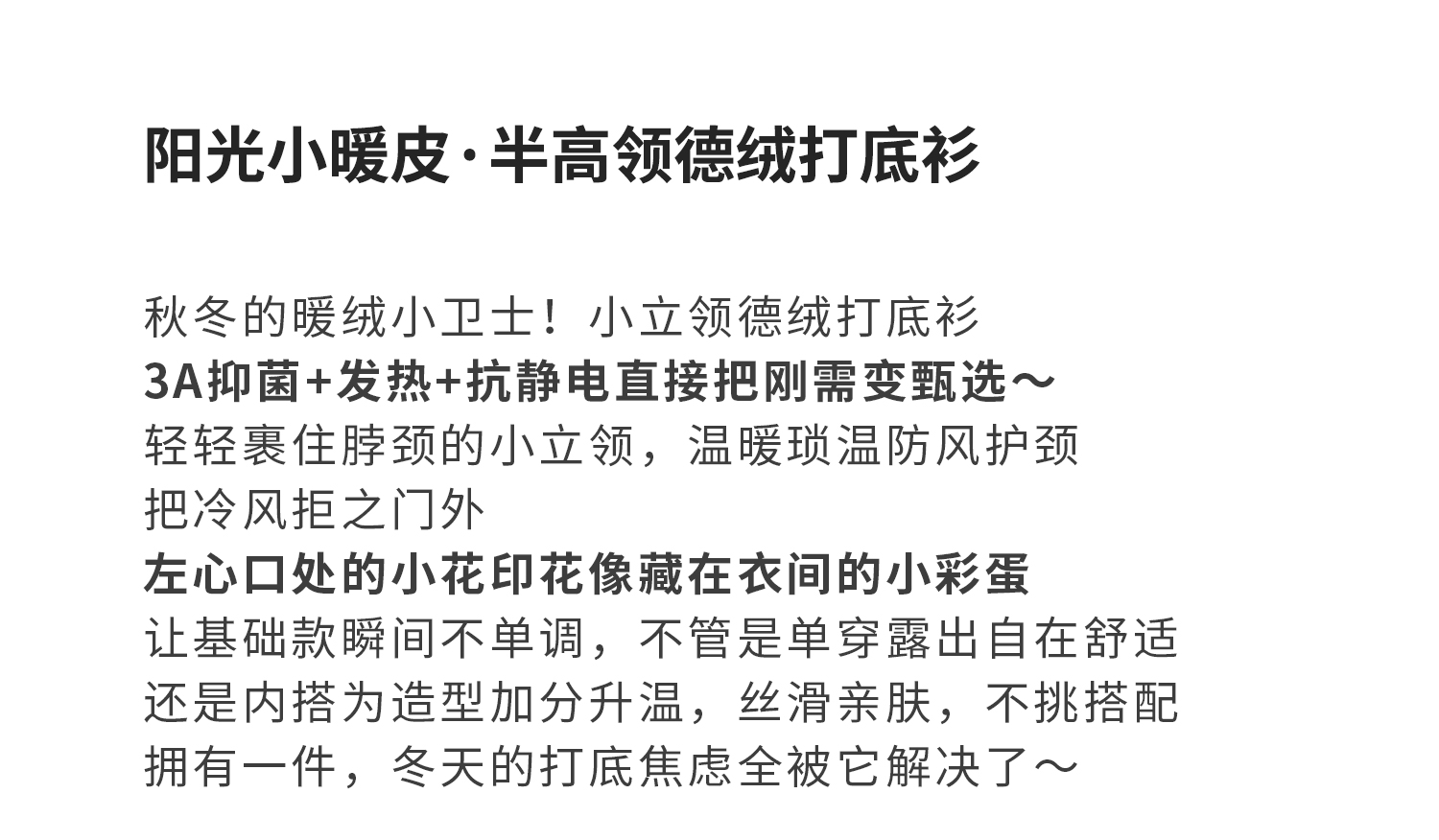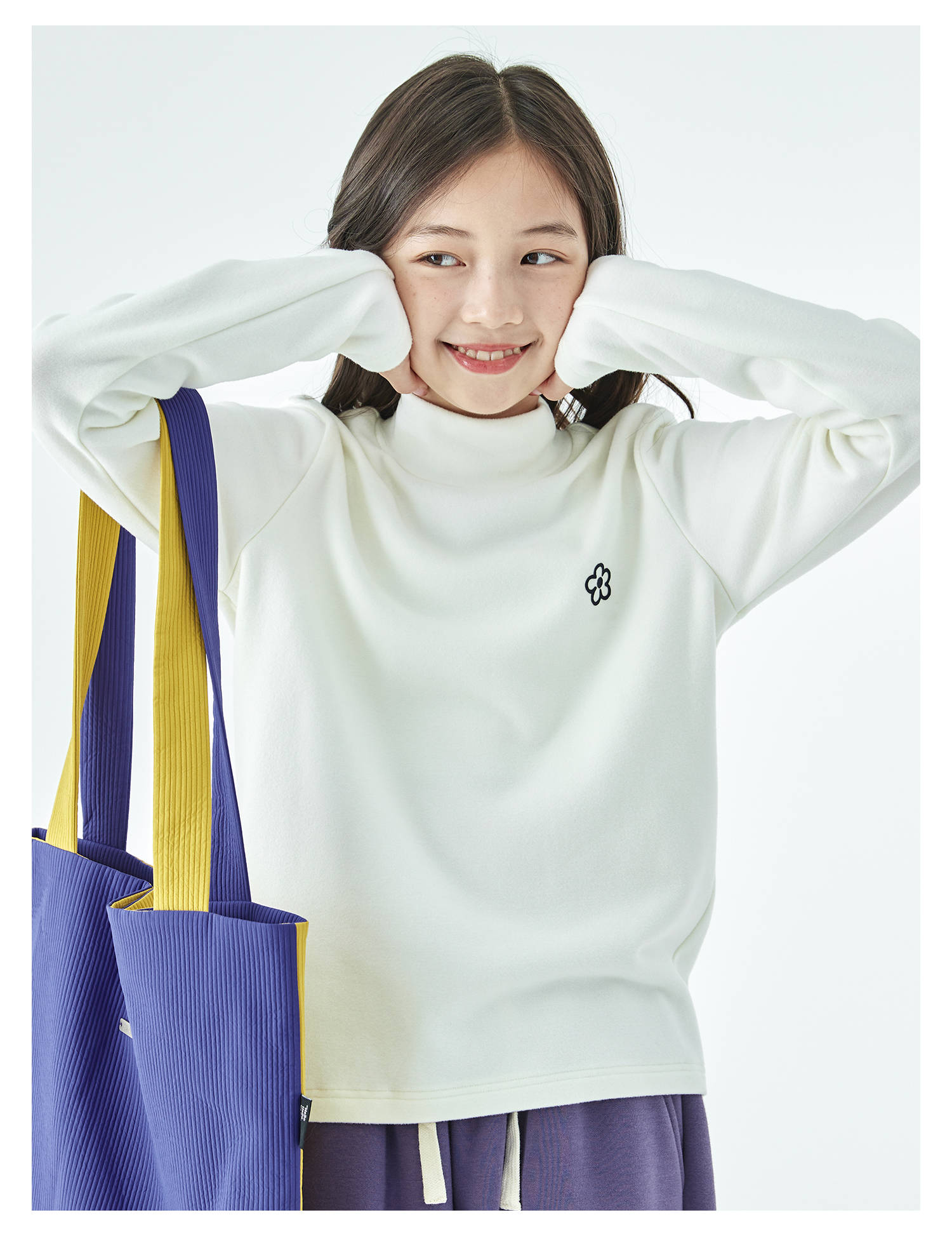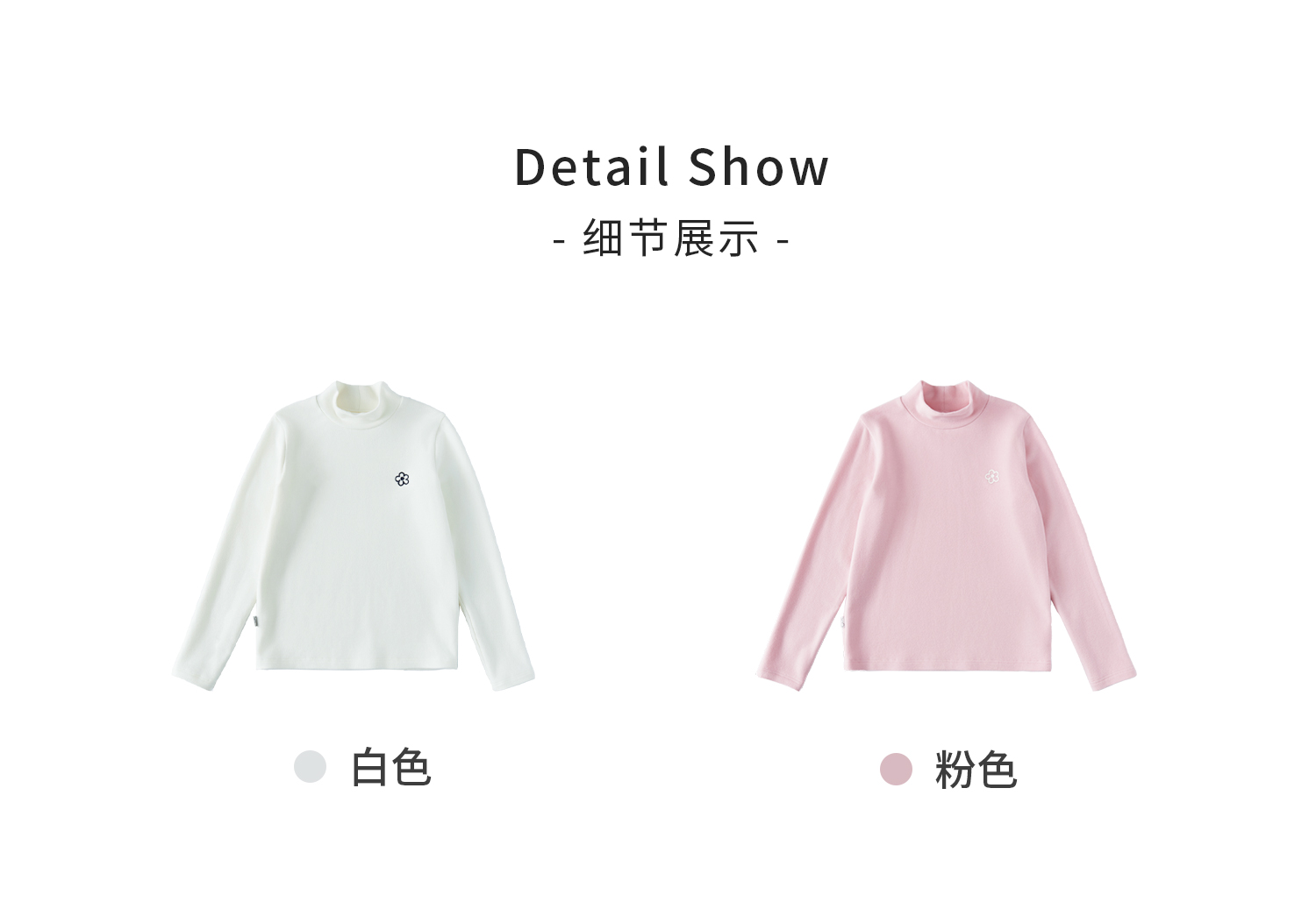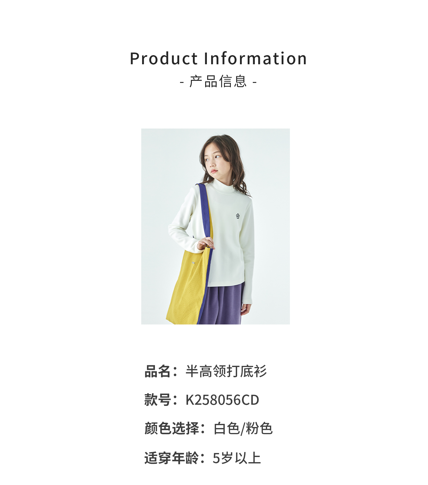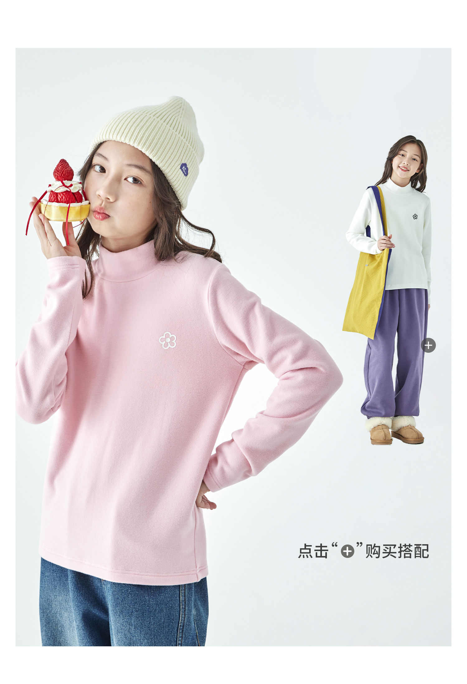 白色预售12.21发 棵初25年秋冬新款亲子中大女童半高领德绒打底衫3A抑菌抗静电卫衣