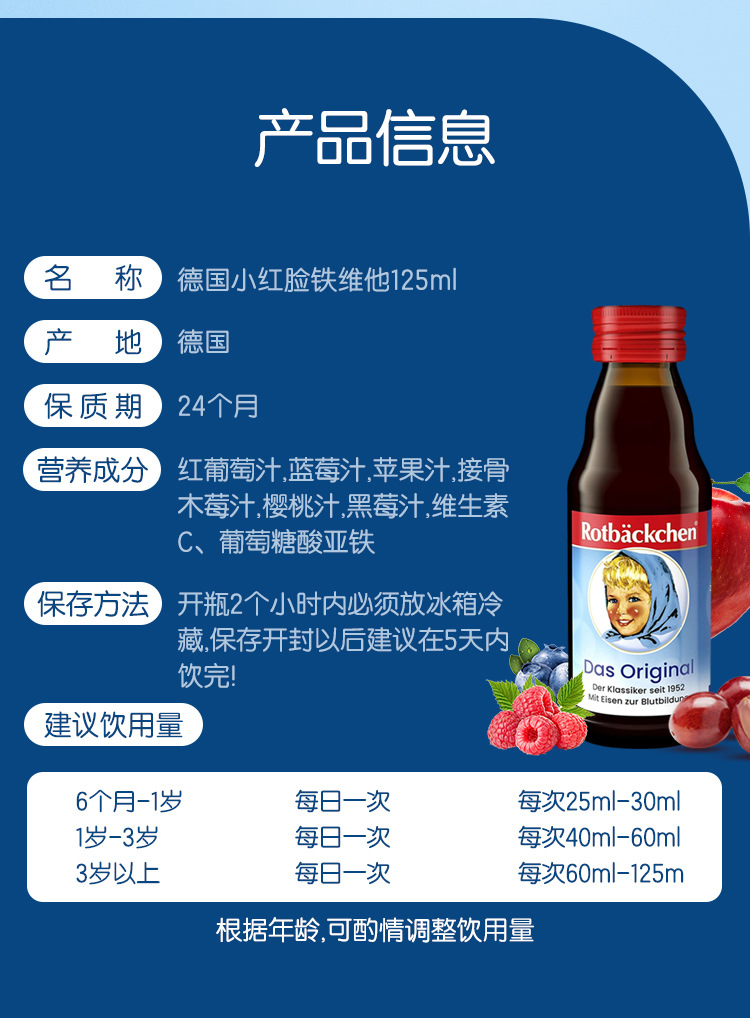 【保税仓】德国 小红脸(ROTBACKCHEN)铁维他复合果汁饮料 125ml