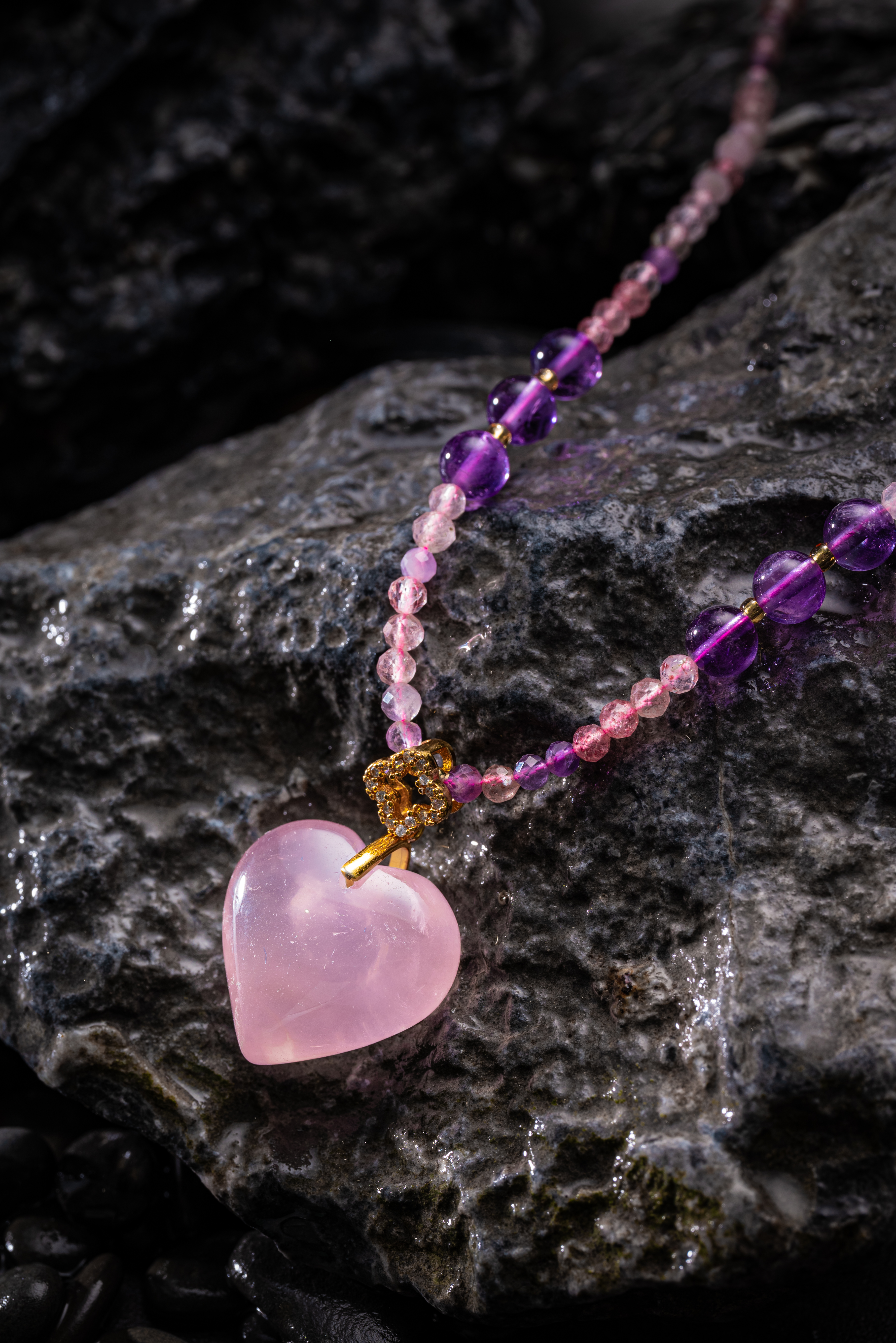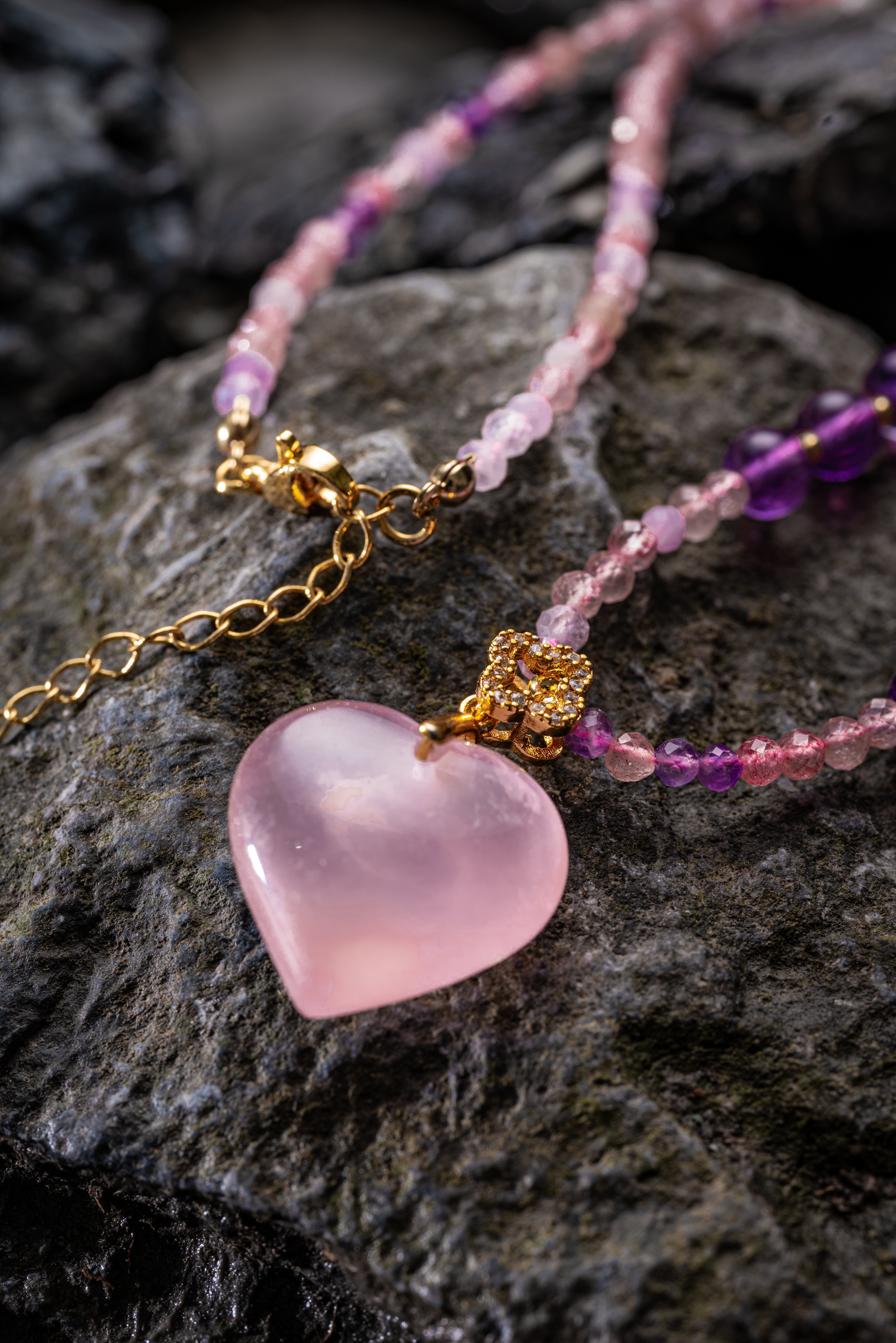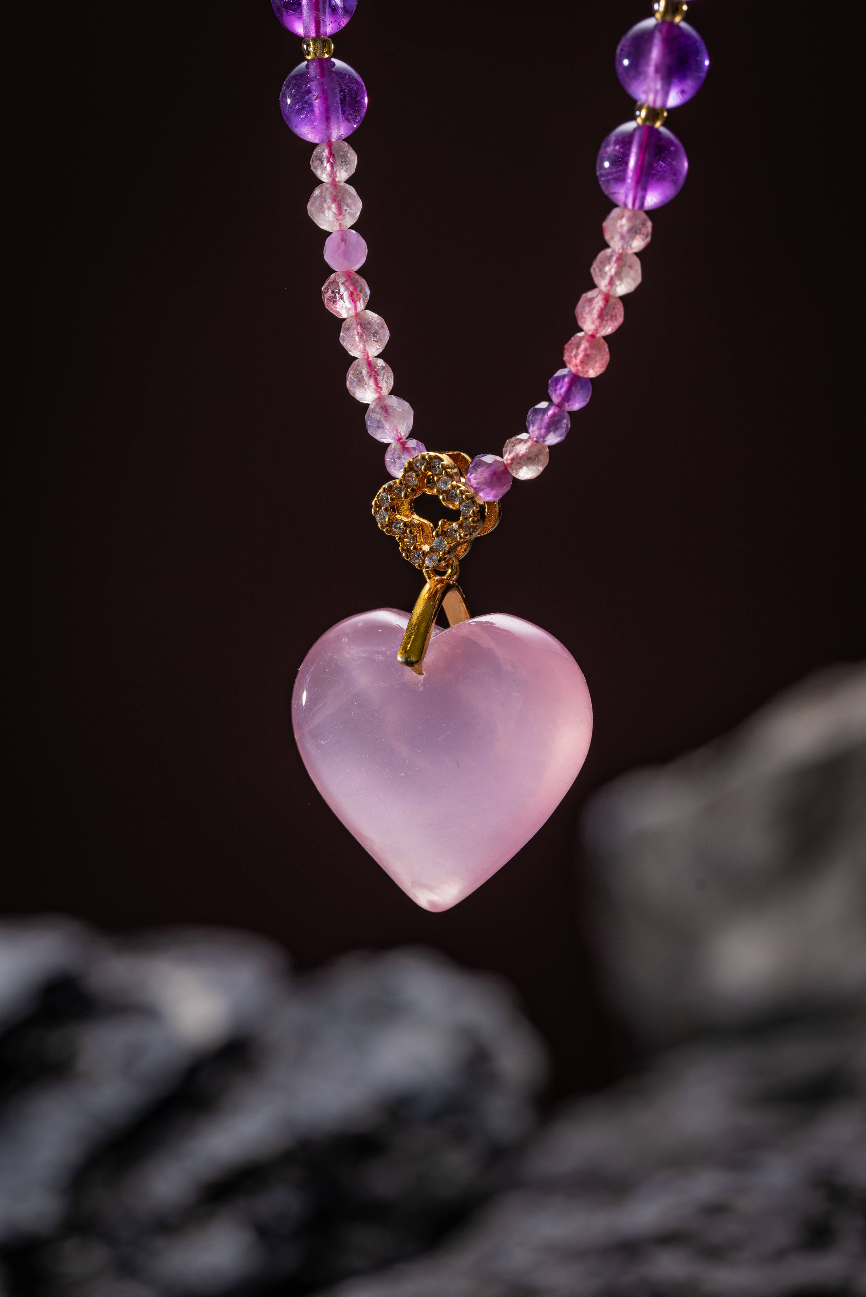 吉祥天地 粉水晶心形项链 礼品送礼送女友