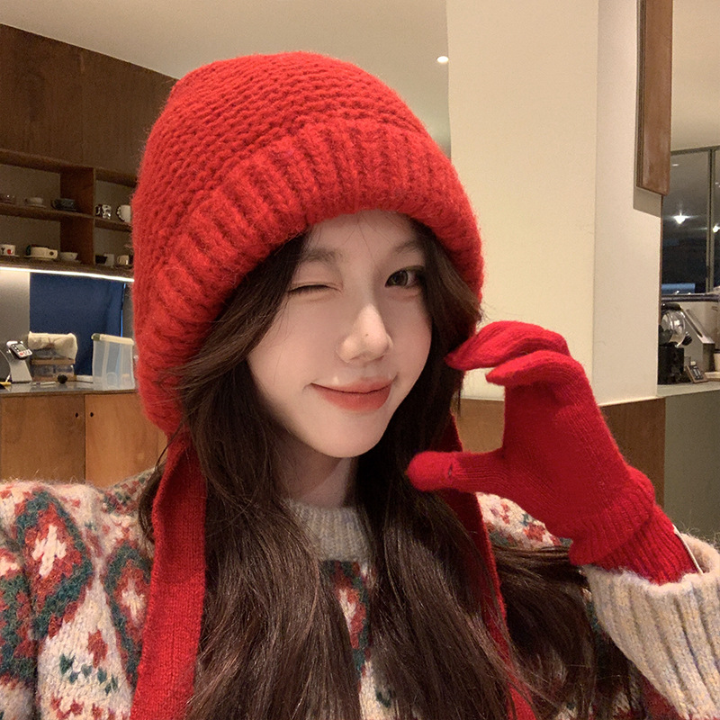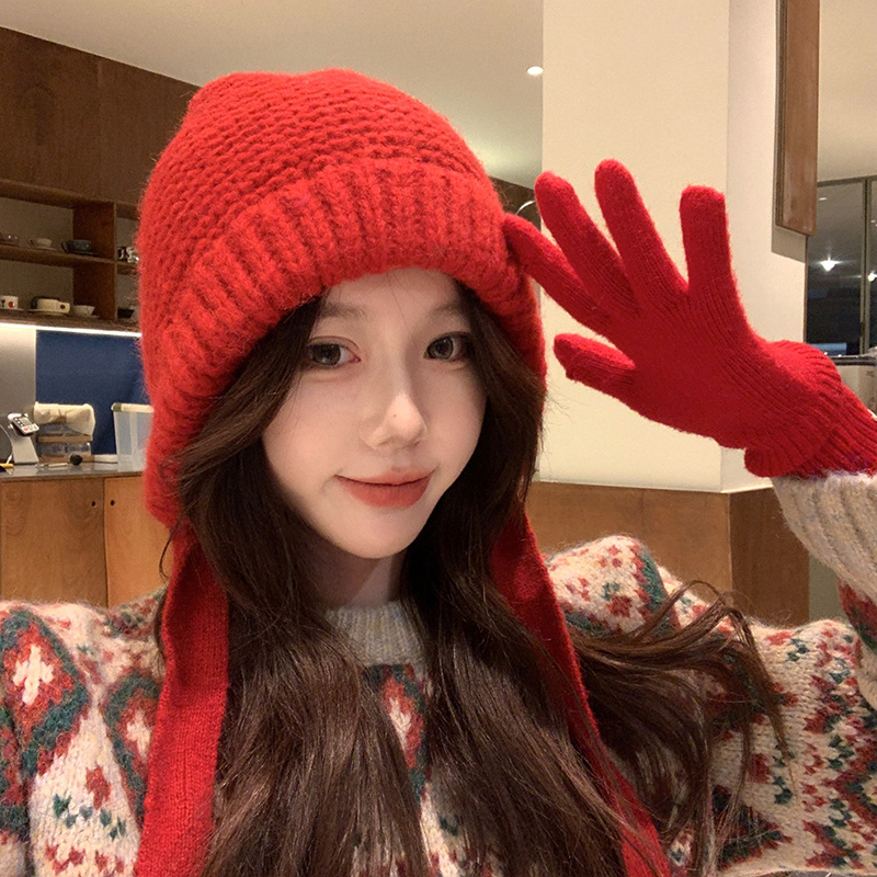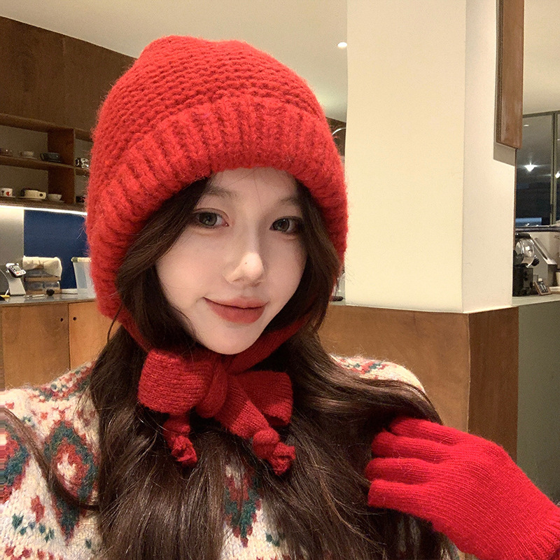 【一帽两用❗️巴拉克拉法帽子】保暖御寒,显脸小,柔软舒适,软糯亲肤!赫本风绑带堆堆帽女冬季保暖圣诞红毛线帽本命年新年马年
