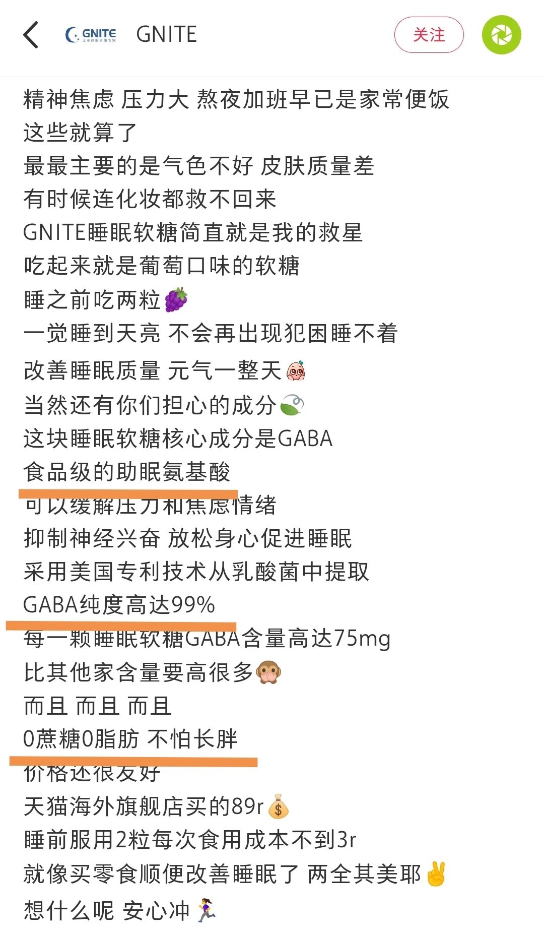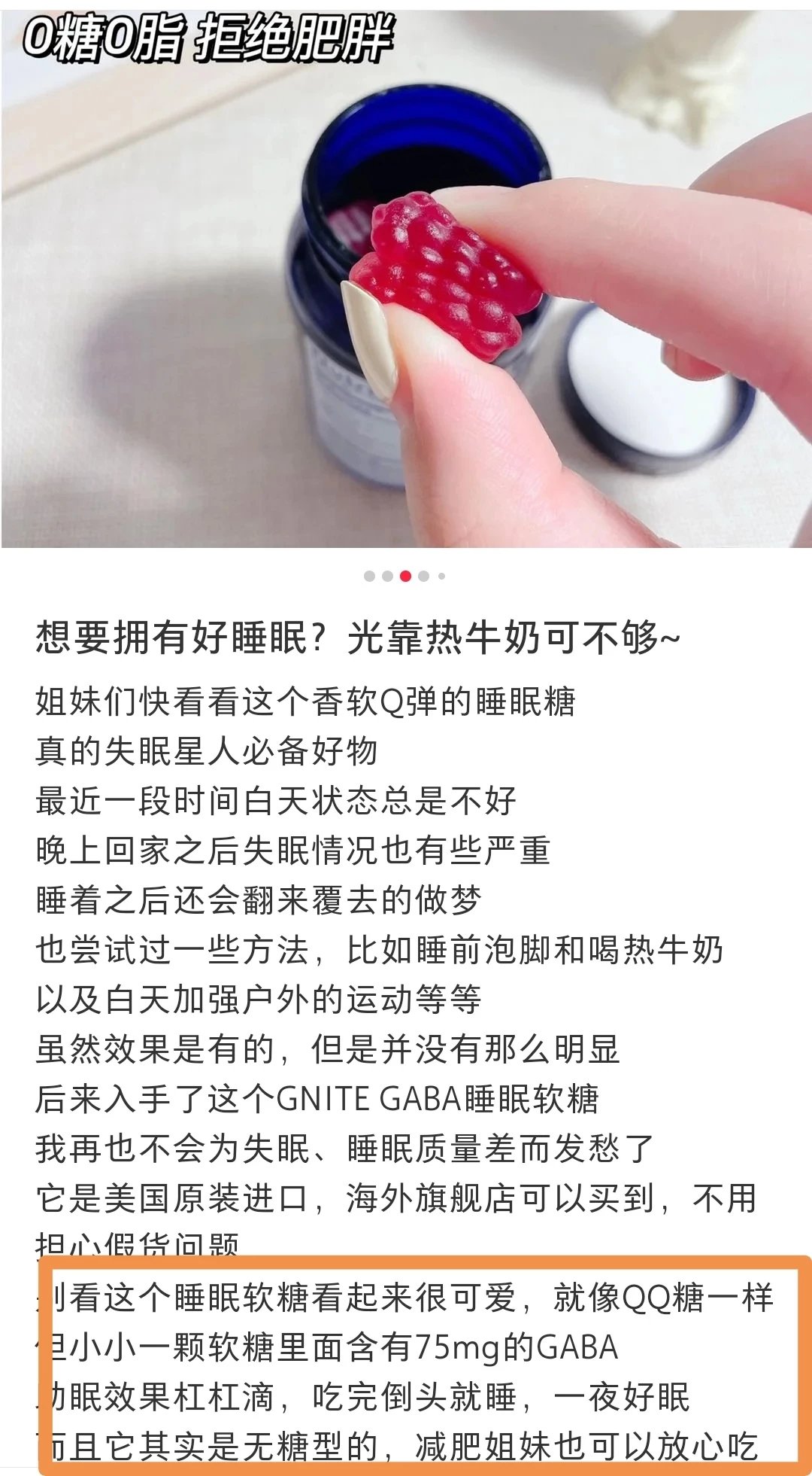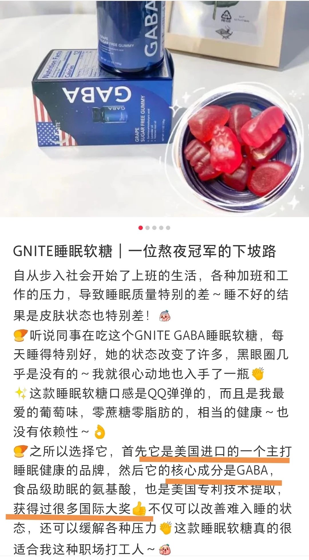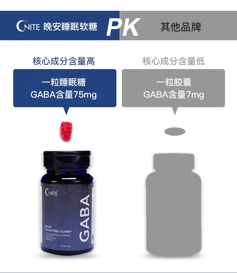 GNITE 的睡眠软糖每颗GABA含量高达75mg