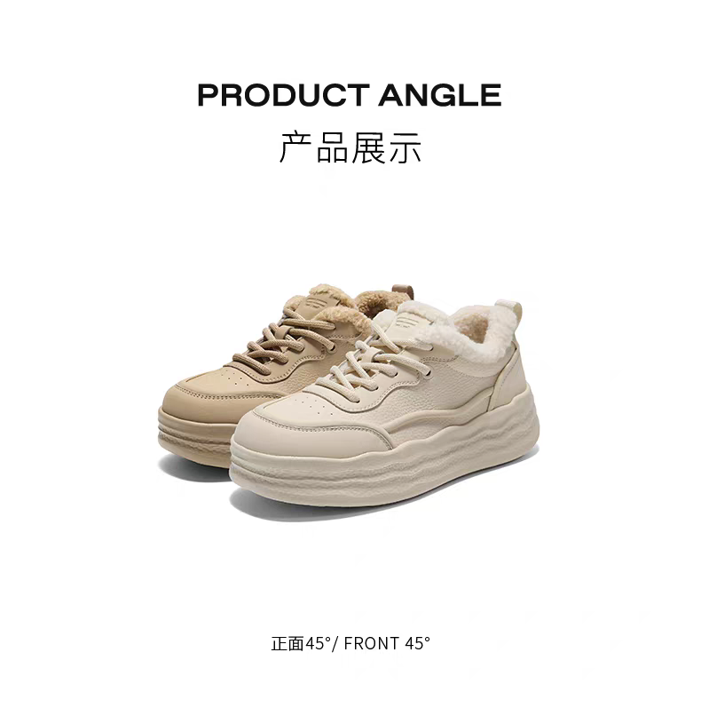 BF楼百丽25冬新款厚底高帮小白板鞋女加绒保暖毛毛鞋E6J1DDM5