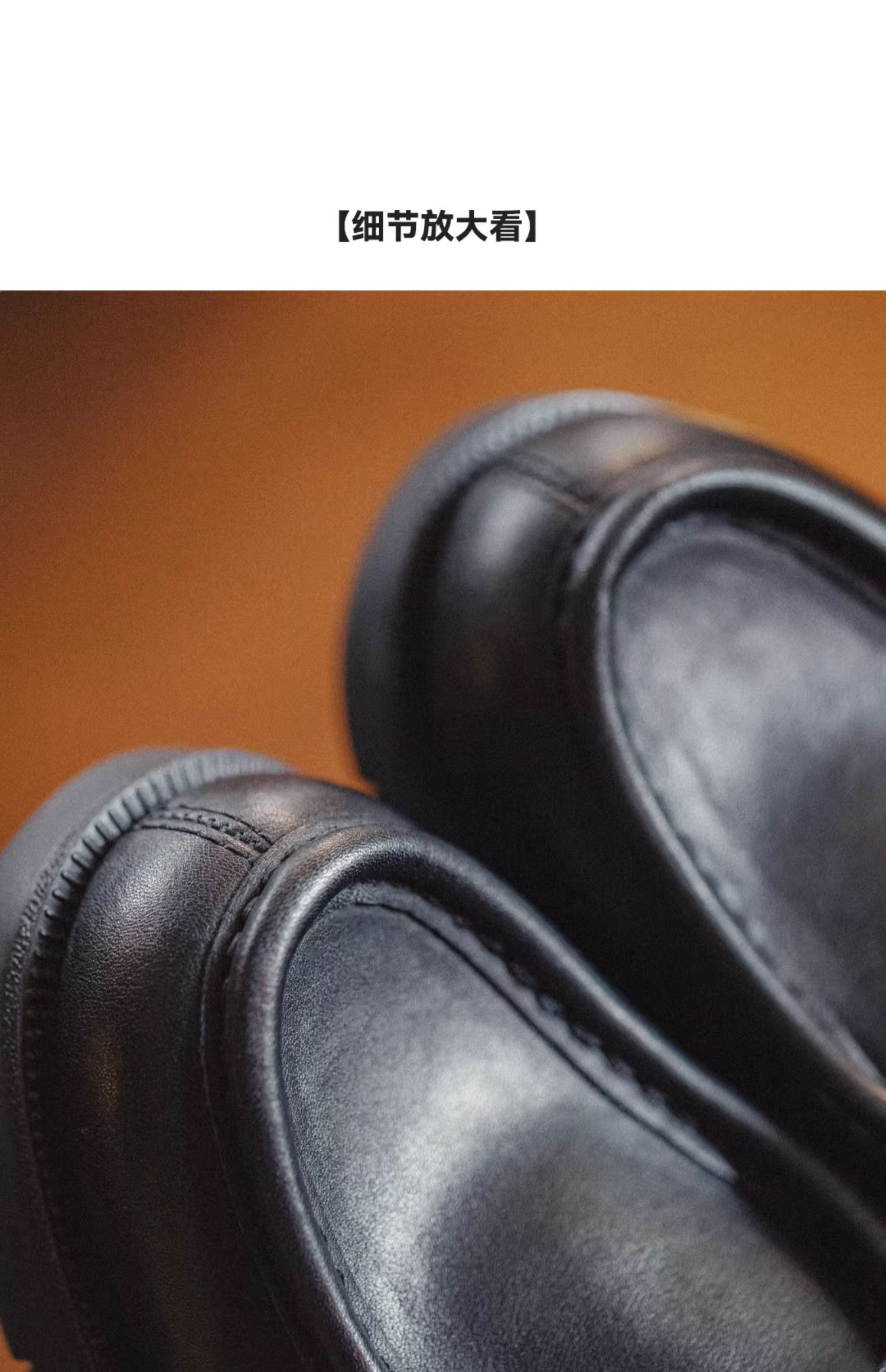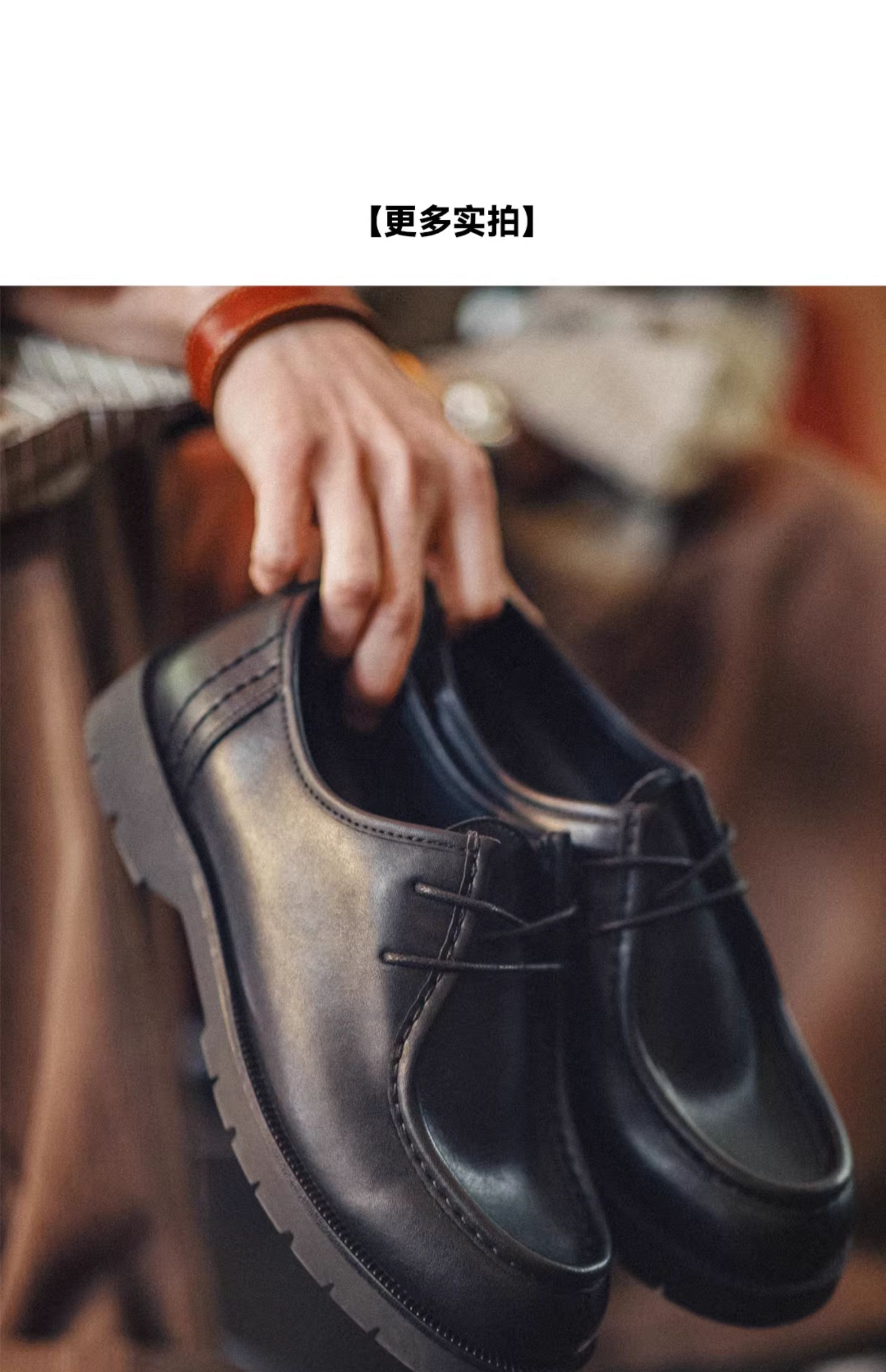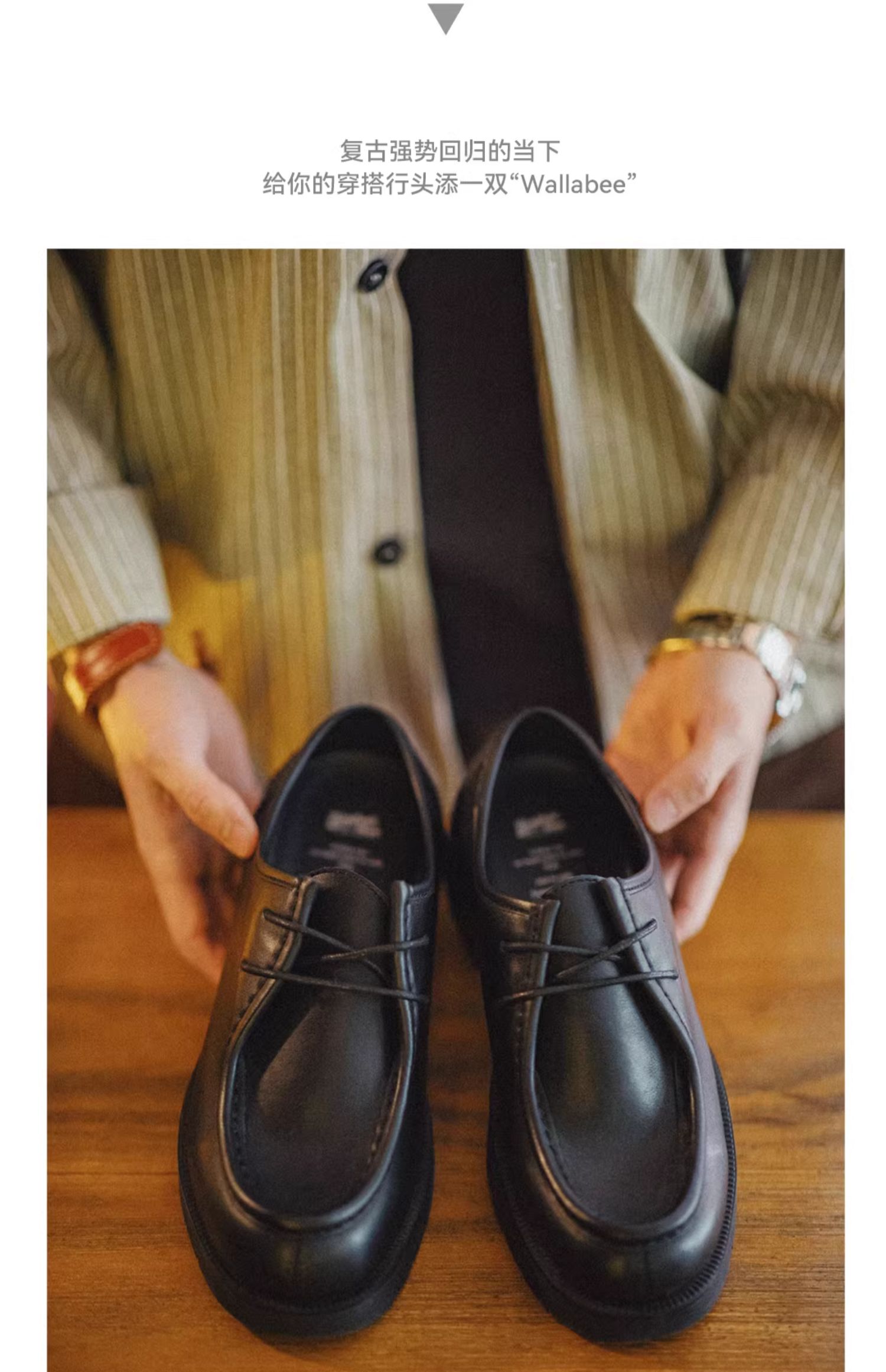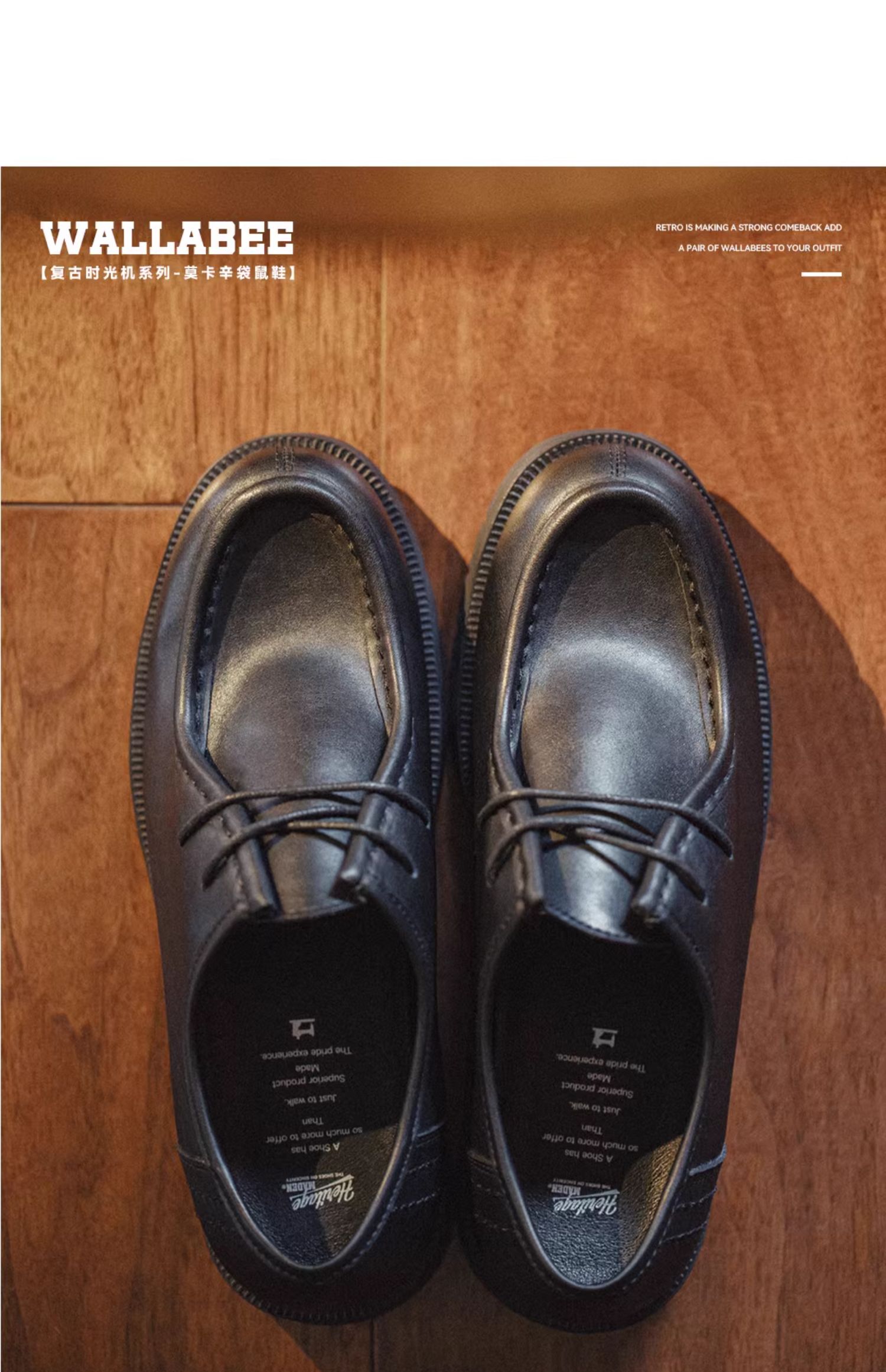 马登莫卡辛袋鼠鞋男新款英伦美式复古休闲工装黑色圆头德比小皮鞋