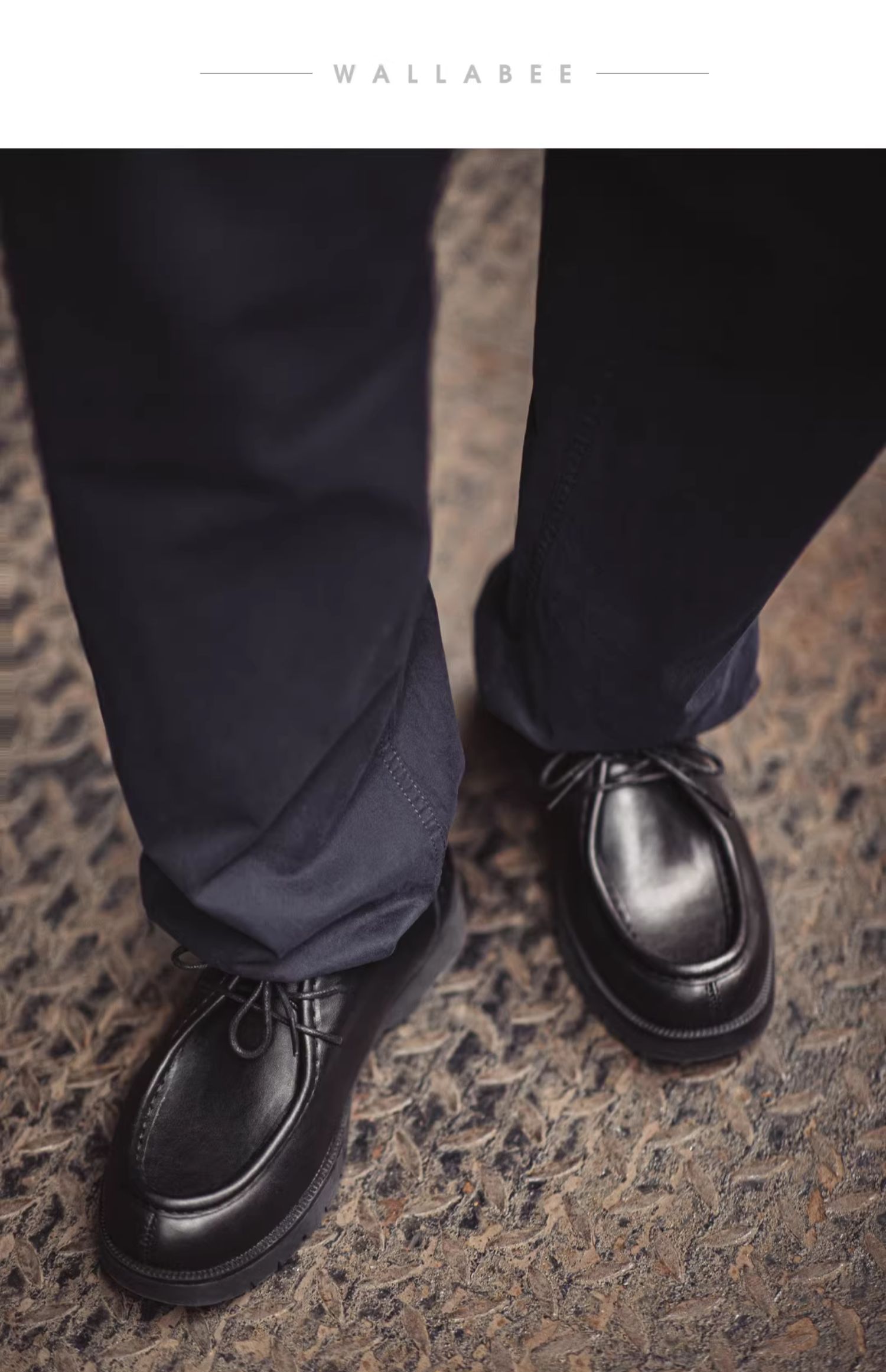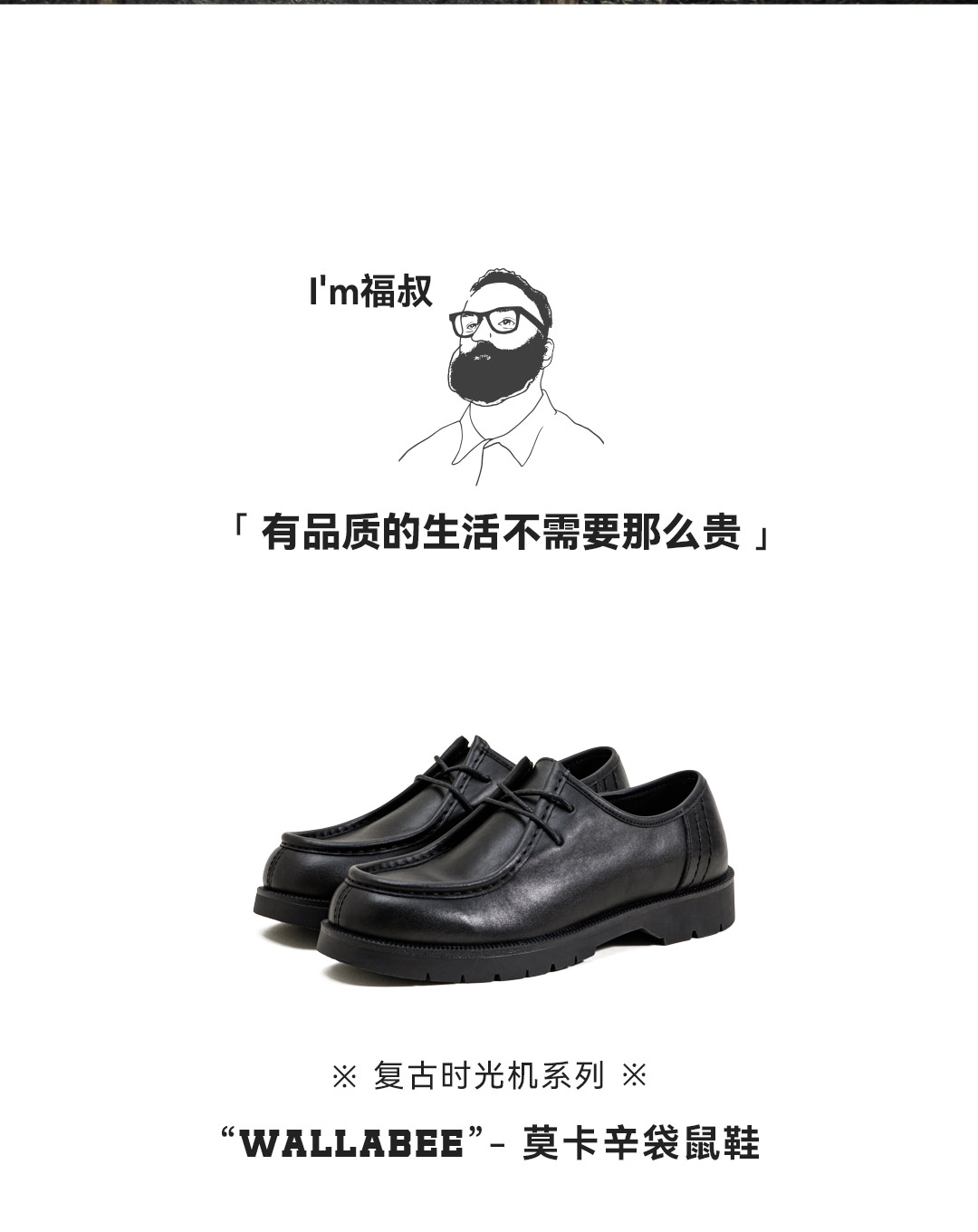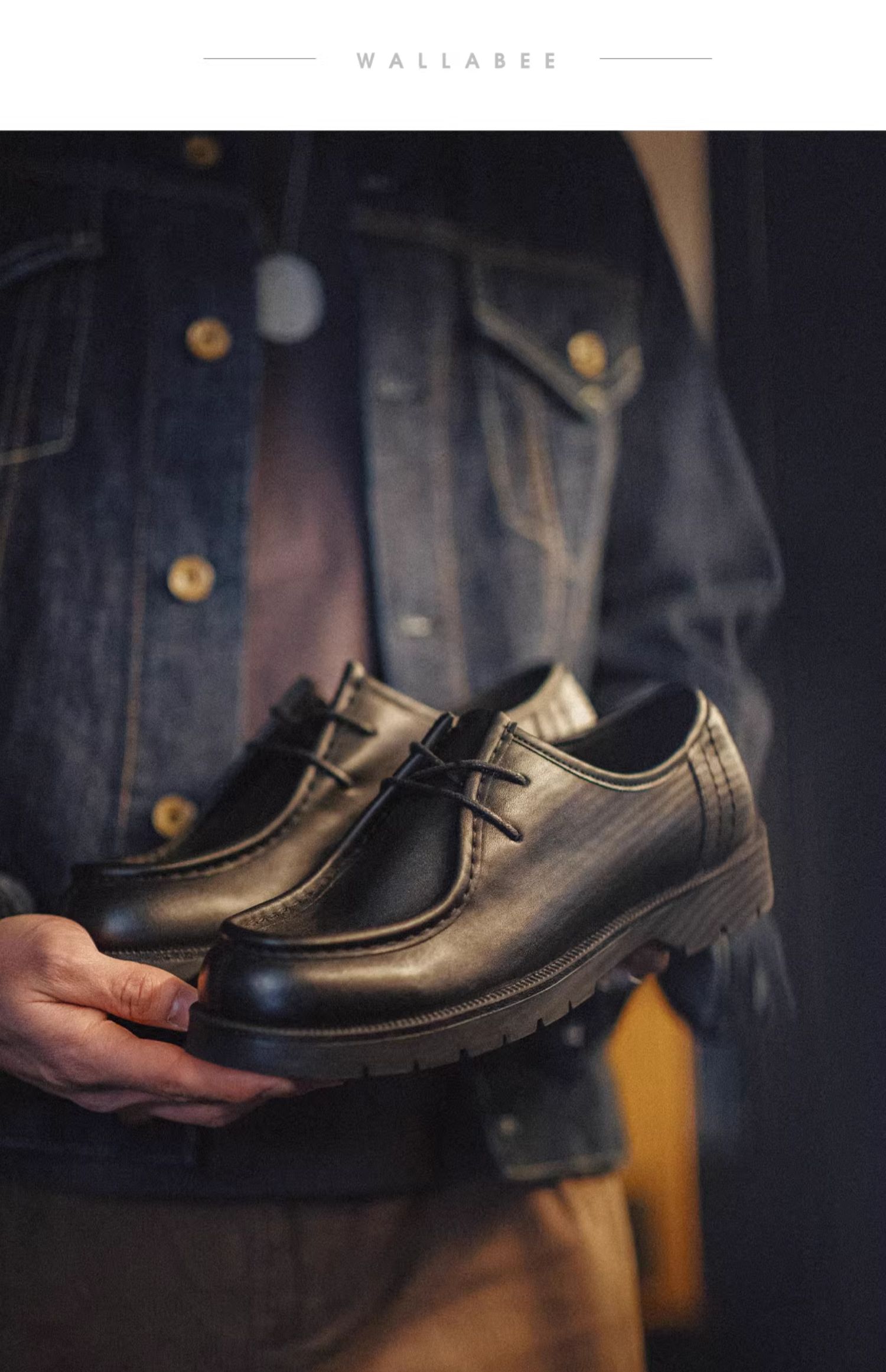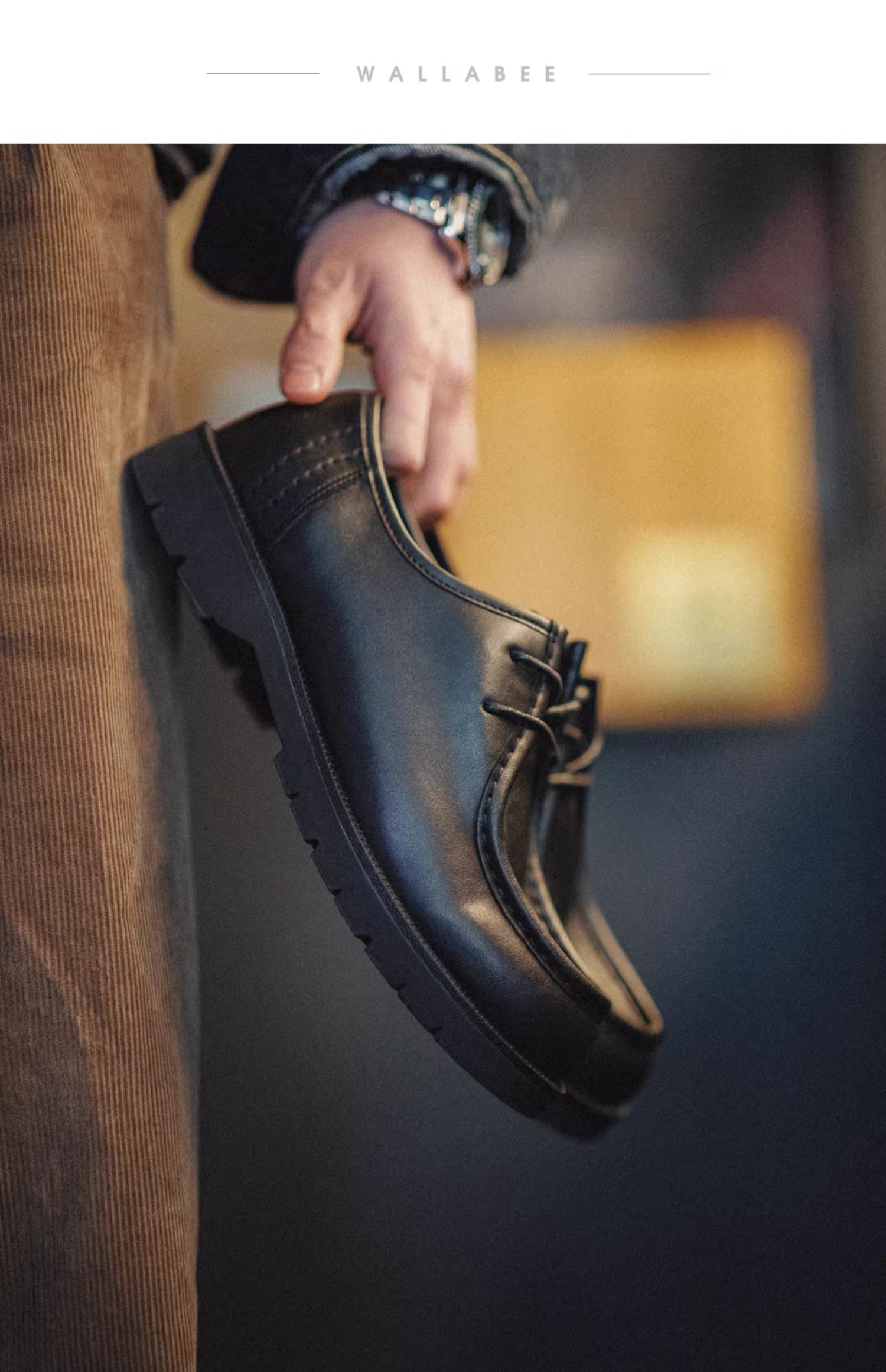马登莫卡辛袋鼠鞋男新款英伦美式复古休闲工装黑色圆头德比小皮鞋