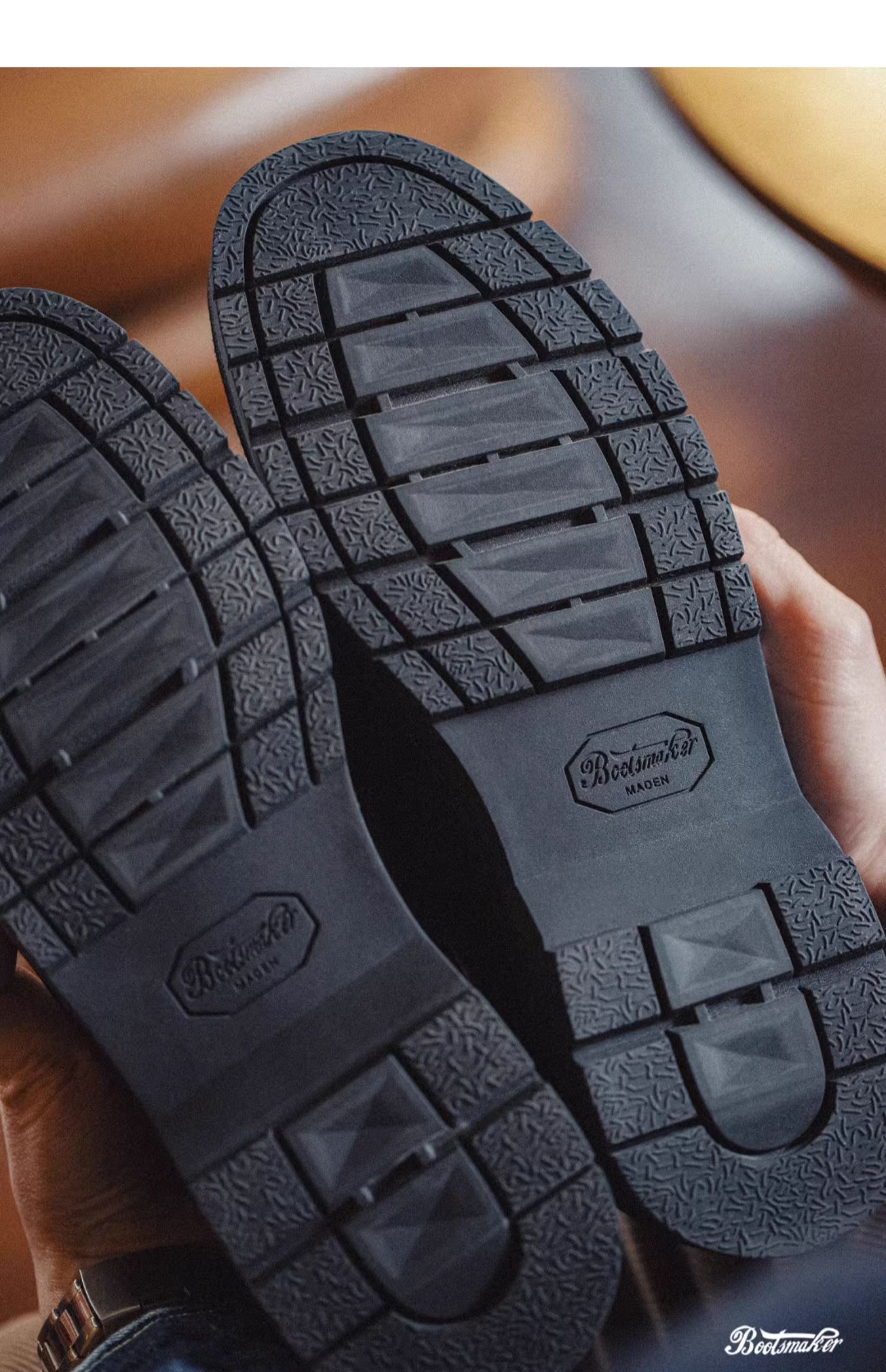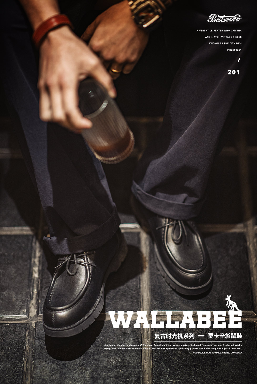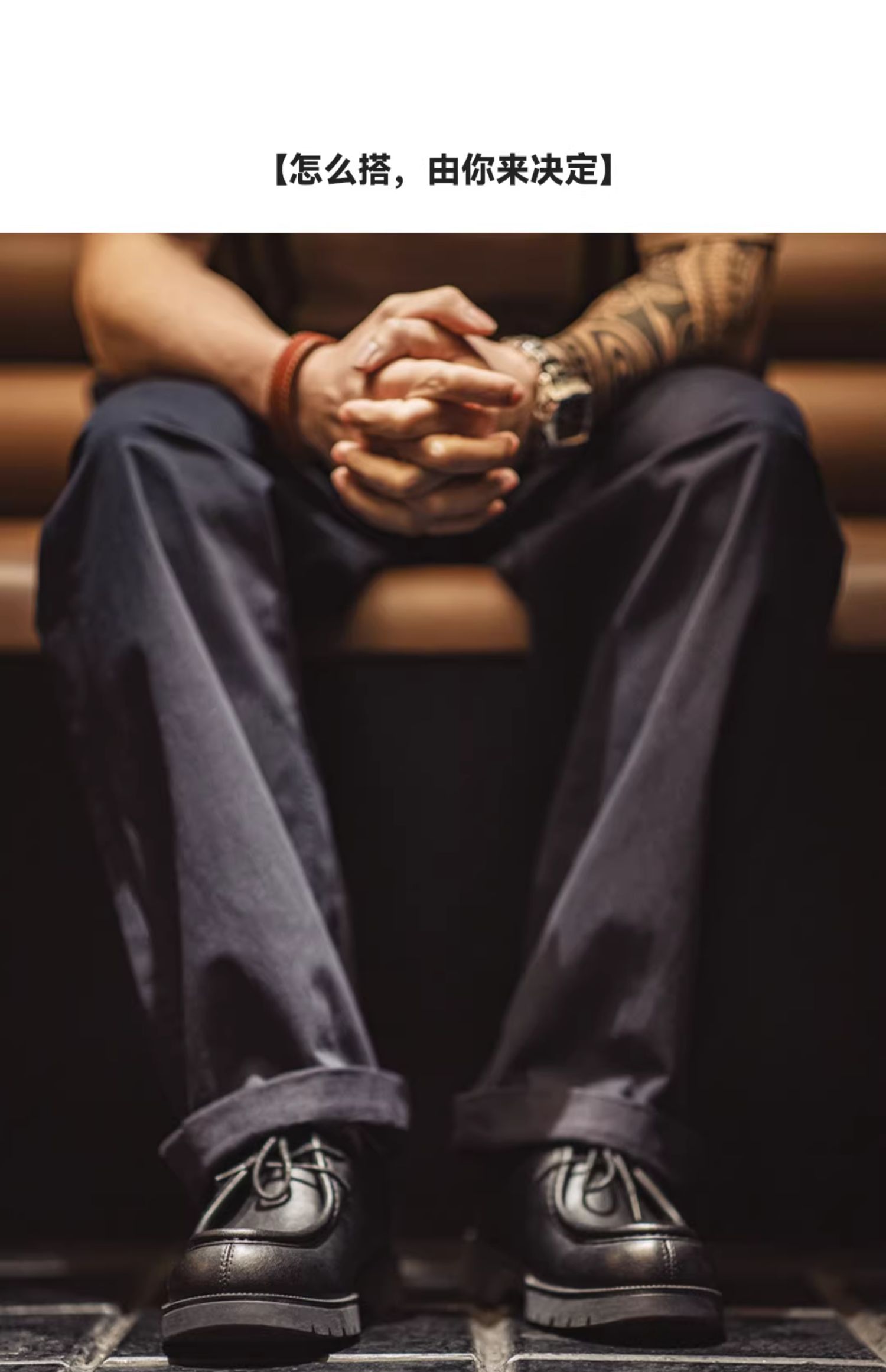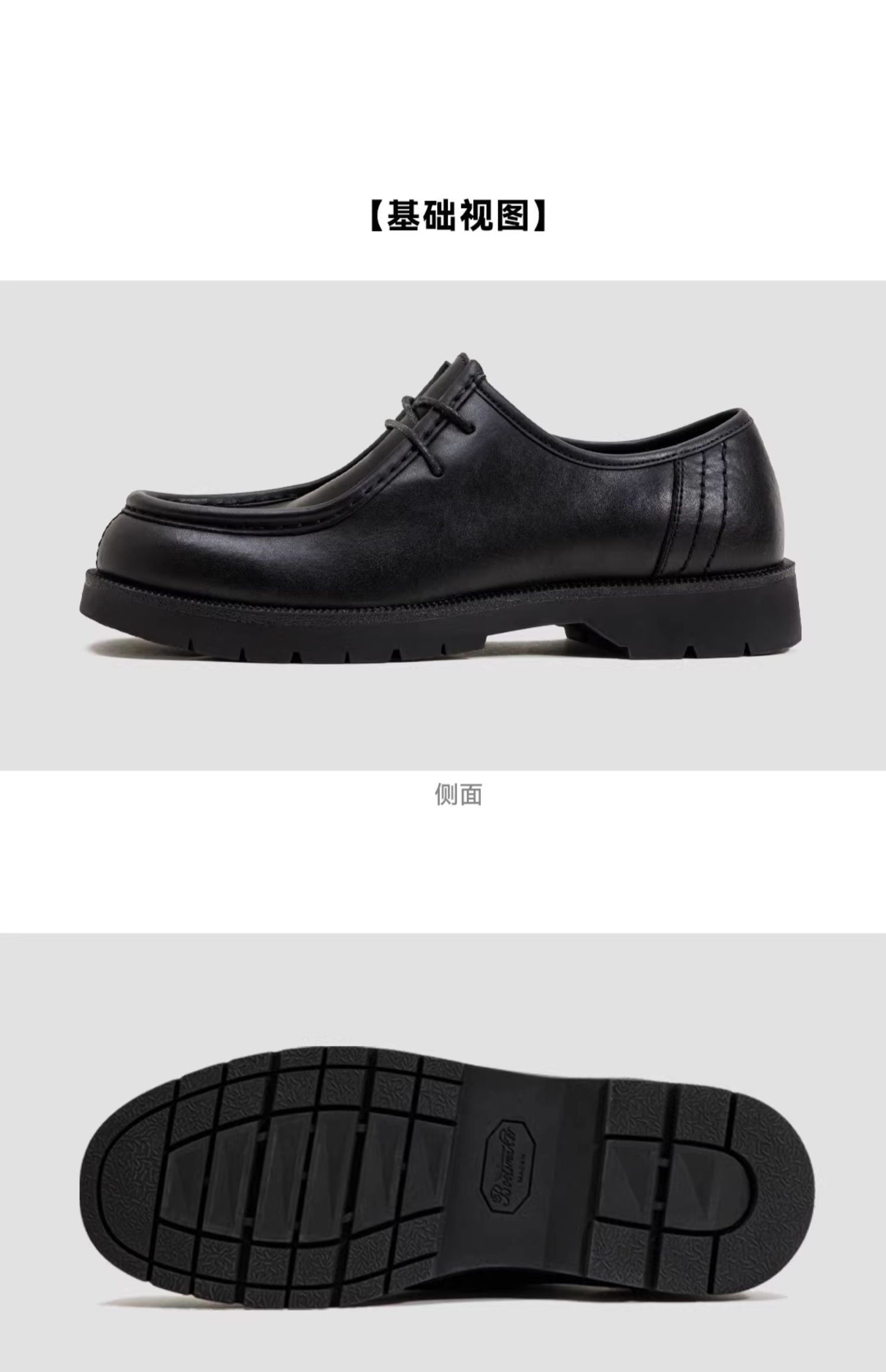 马登莫卡辛袋鼠鞋男新款英伦美式复古休闲工装黑色圆头德比小皮鞋