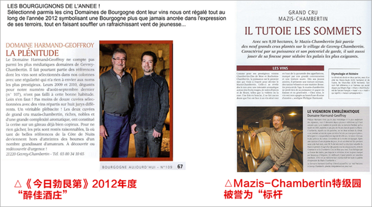 权威葡萄酒杂志《今日勃艮第》2012年度“醉佳酒庄”,美誉Mazis-Chambertin特级园为标杆之酒!