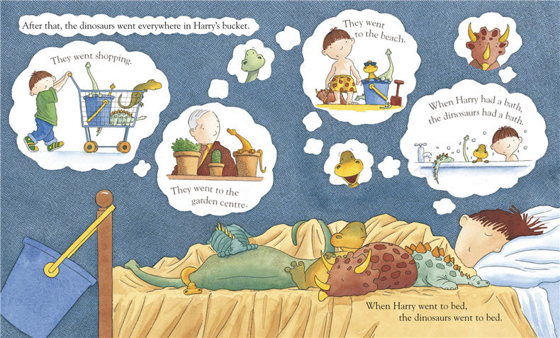 哈利和恐龙绘本 哈利和满桶的恐龙 英文原版 Harry and the Bucketful of Dinosaurs 英文版儿童英语故事图画书 进口原版书籍