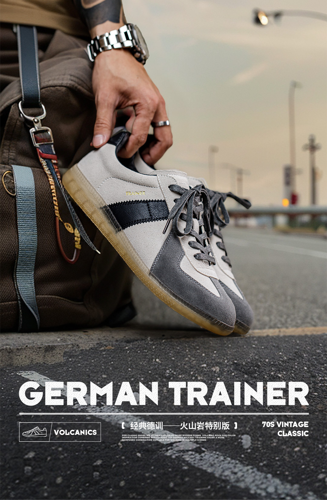 马登(Maden)2023新款火山岩德训鞋男夏季百搭休闲鞋复古运动鞋