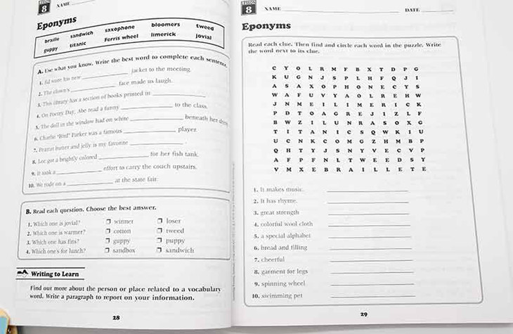 3.让孩子在笔记本上完成写作练习,这样,孩子有更多的空间复习这些单词。