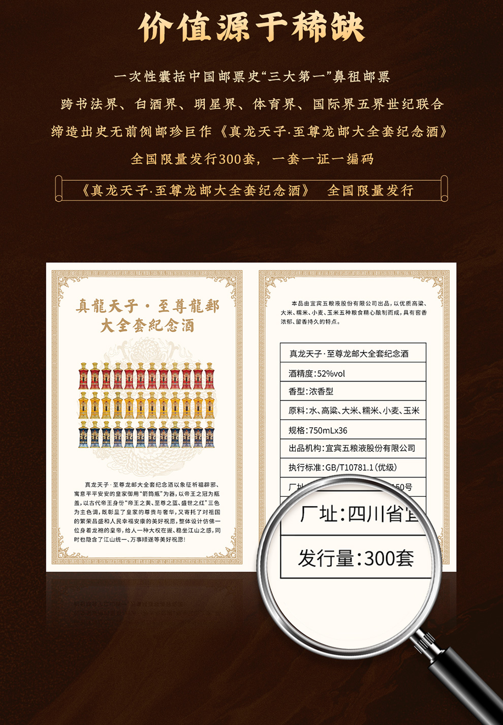 真龙天子至尊龙邮大全套纪念酒 52度浓香型 750ml*36瓶 高端文创酒 送礼白酒