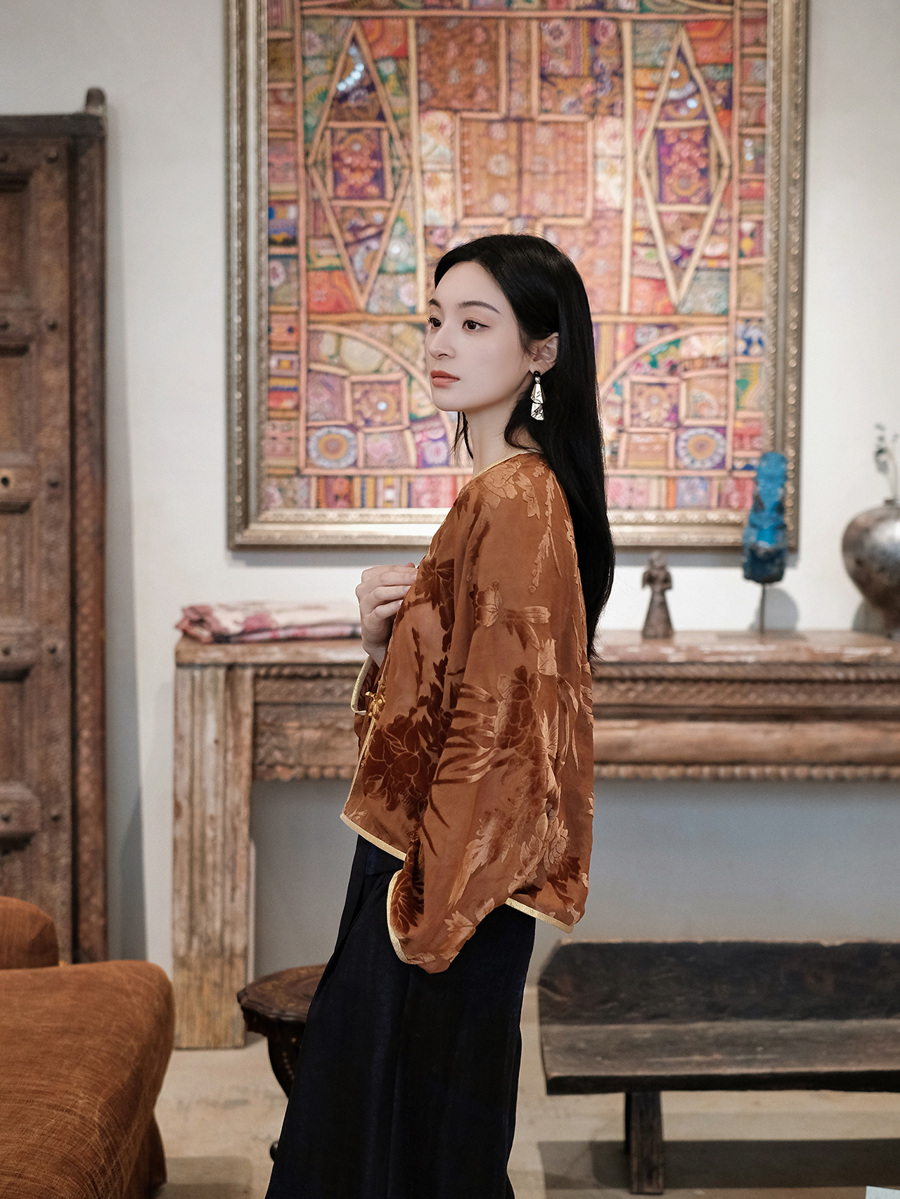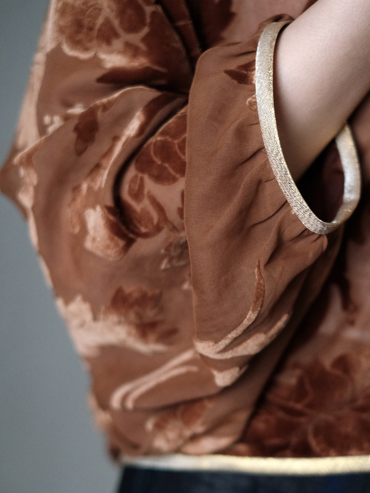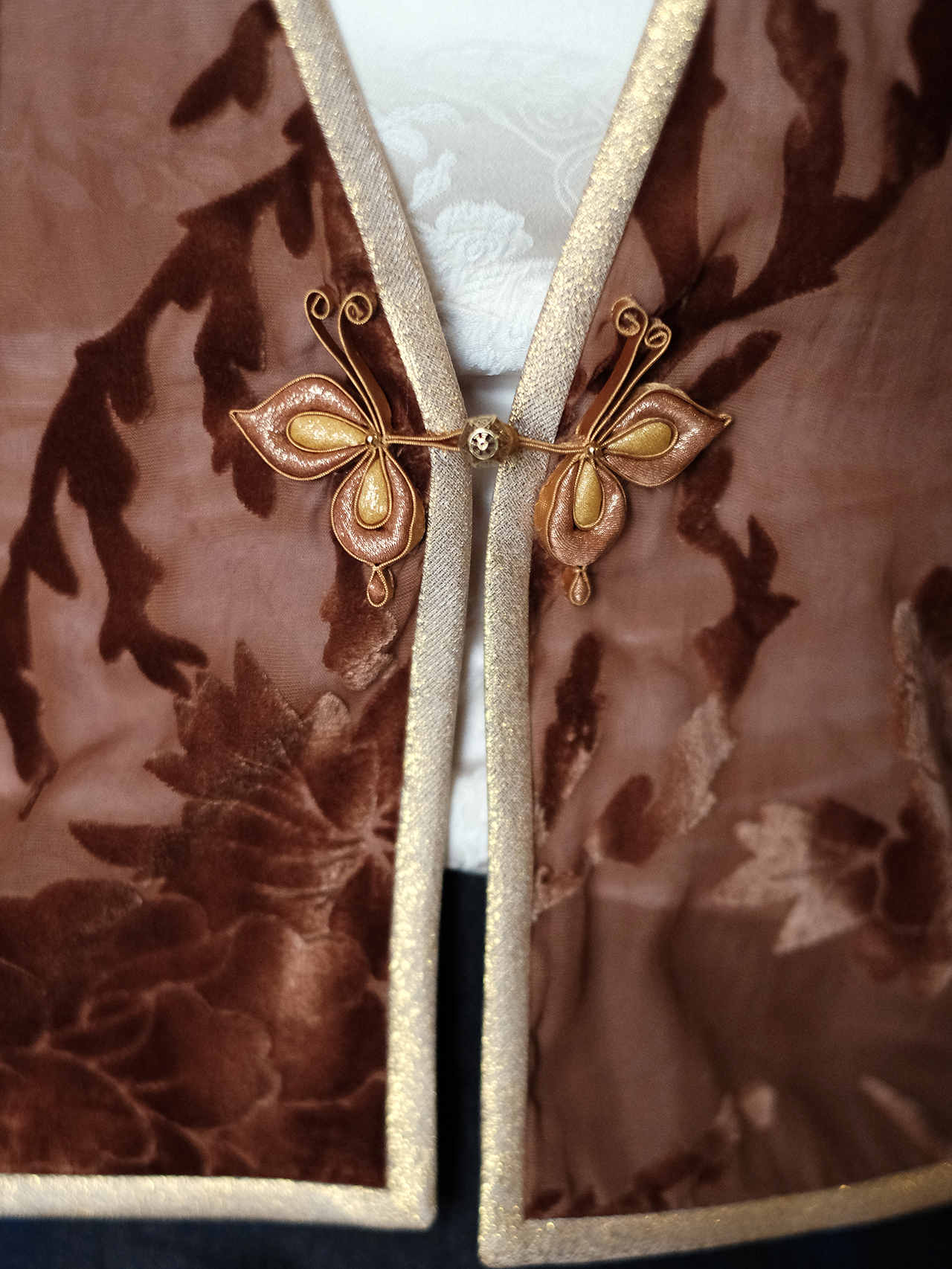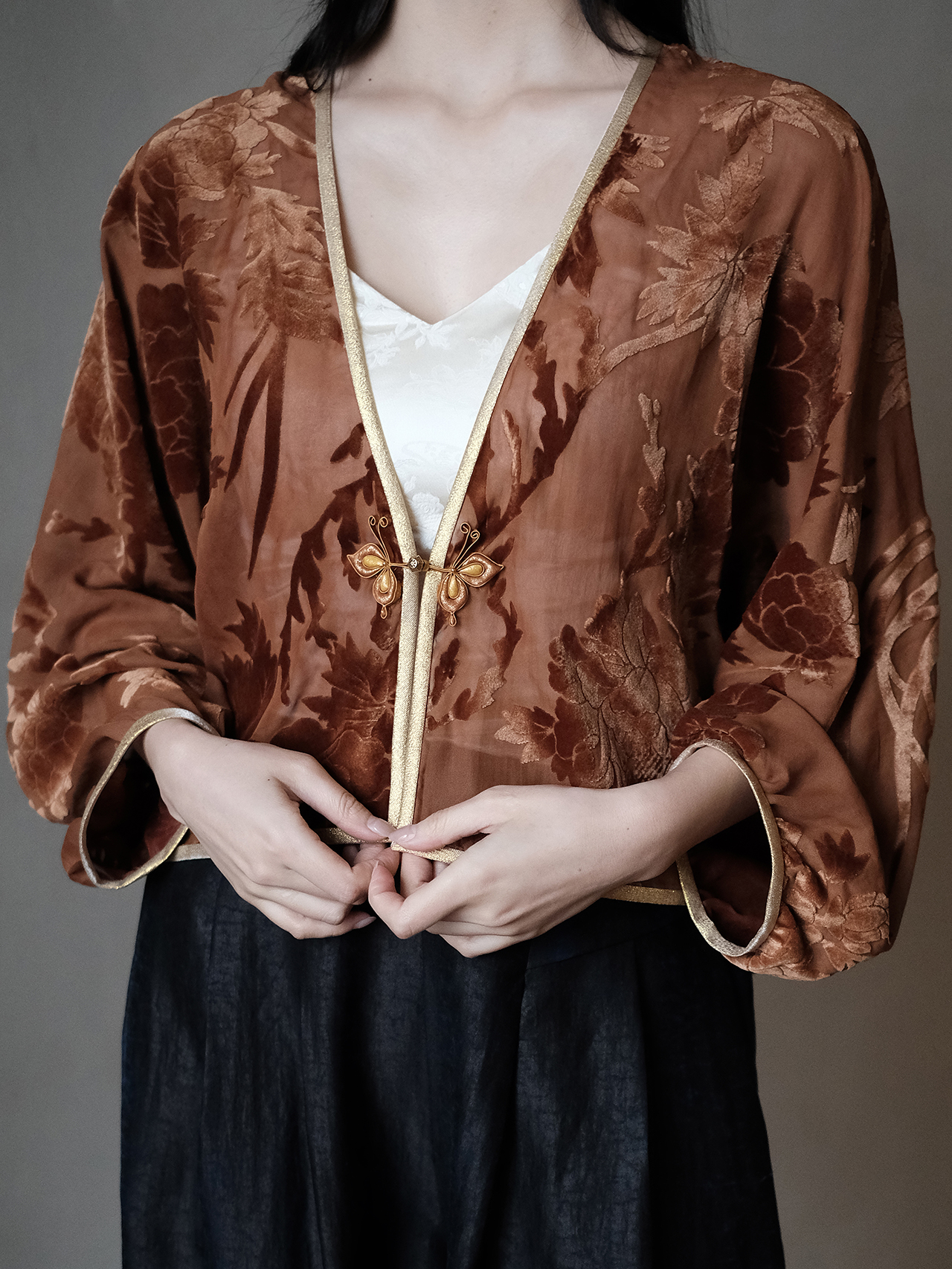 盛唐牡丹 | 真丝红云纱烂花绒外套