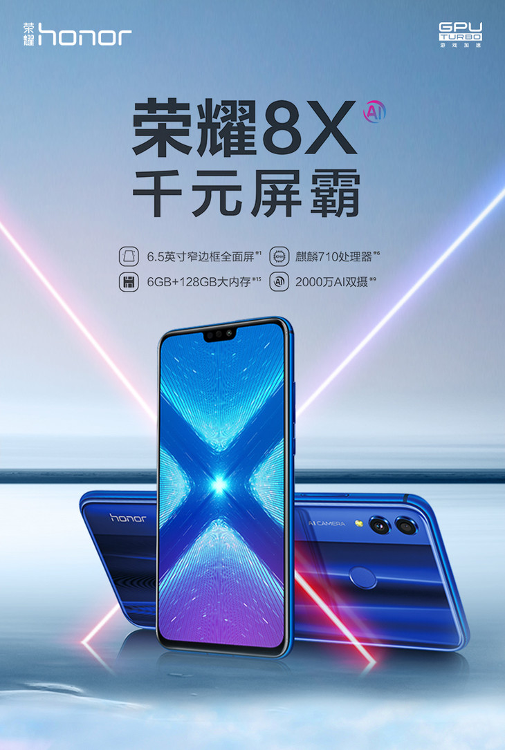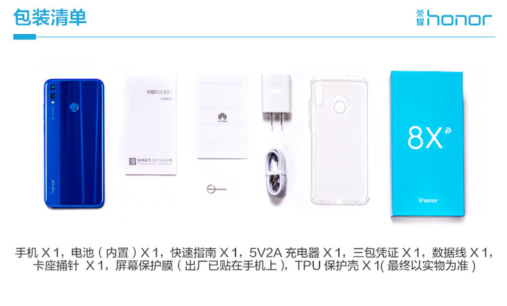 【 荣耀】。 荣耀8X全面屏手机屏占比高达91%全网通4G智能学生青春