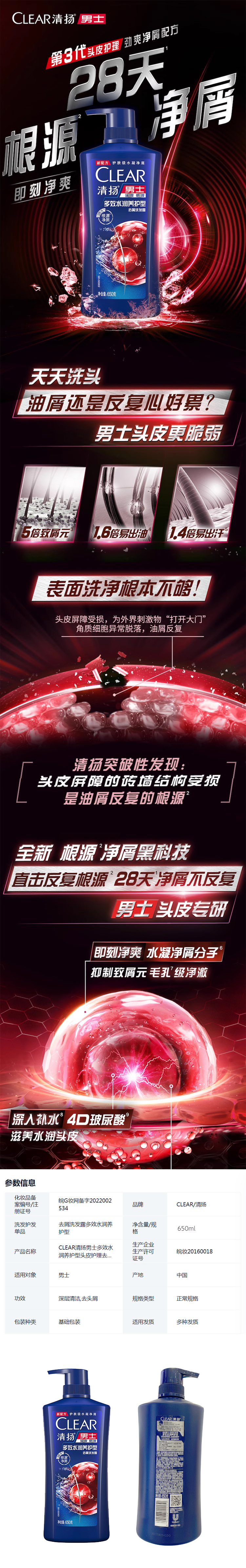 清扬男士去屑多效水润洗发露(650ml)【20100278】