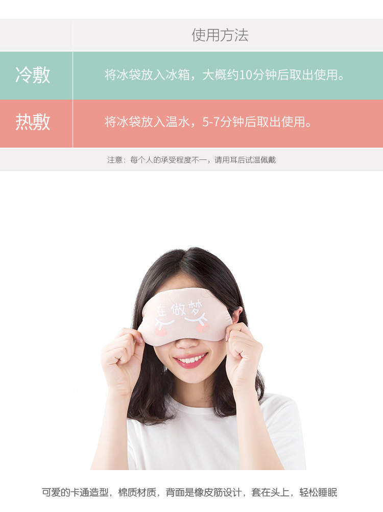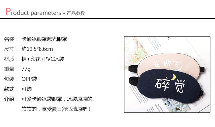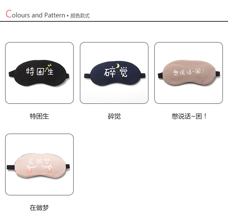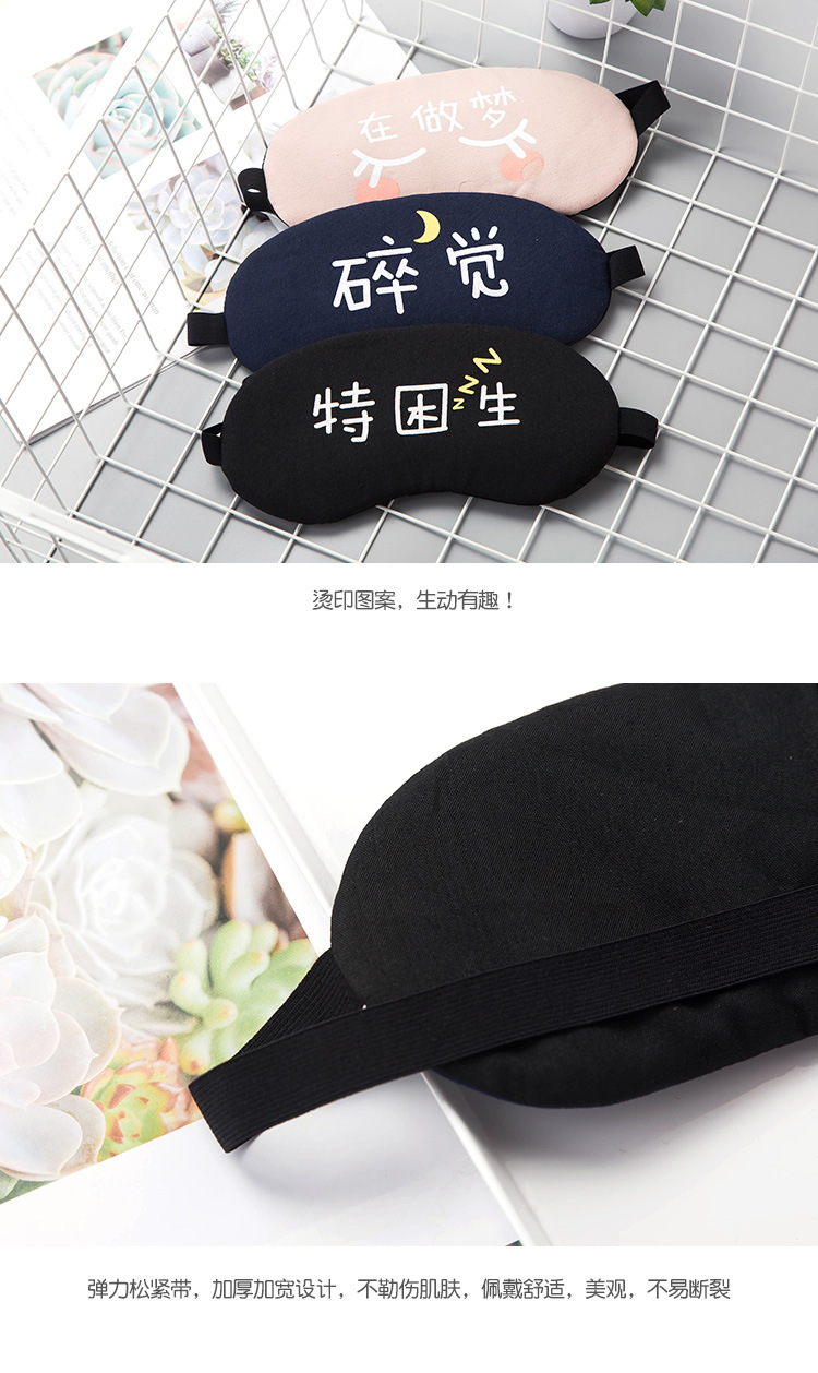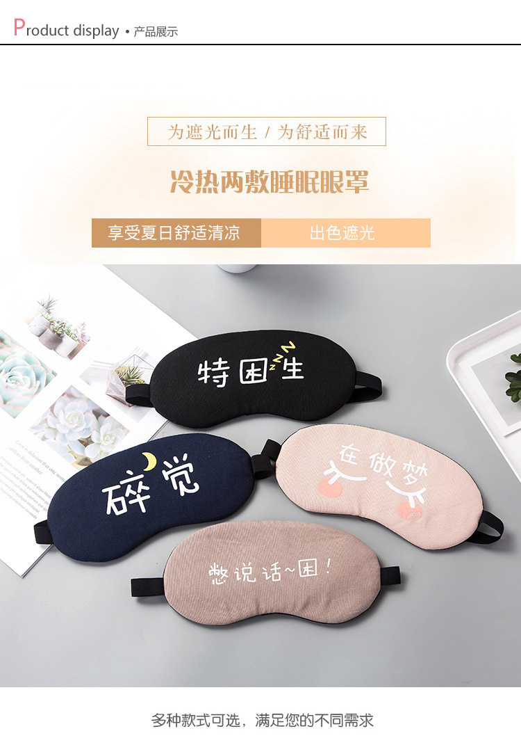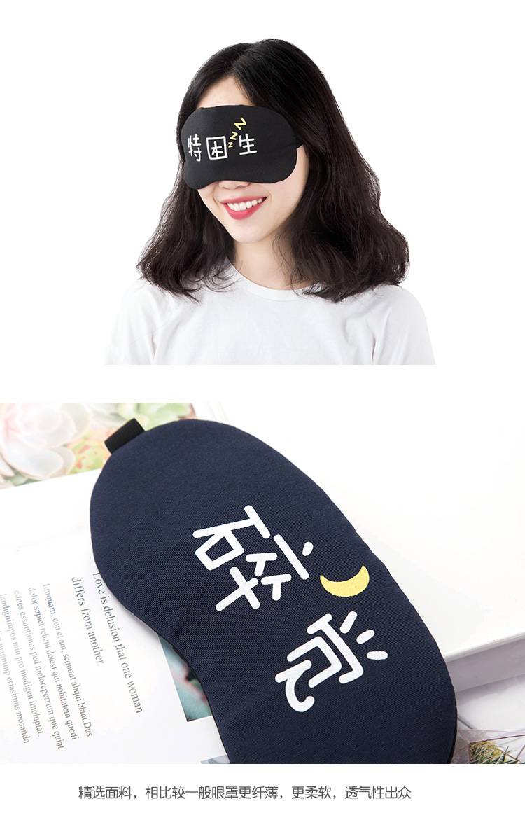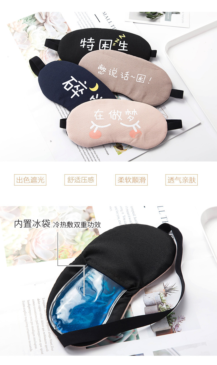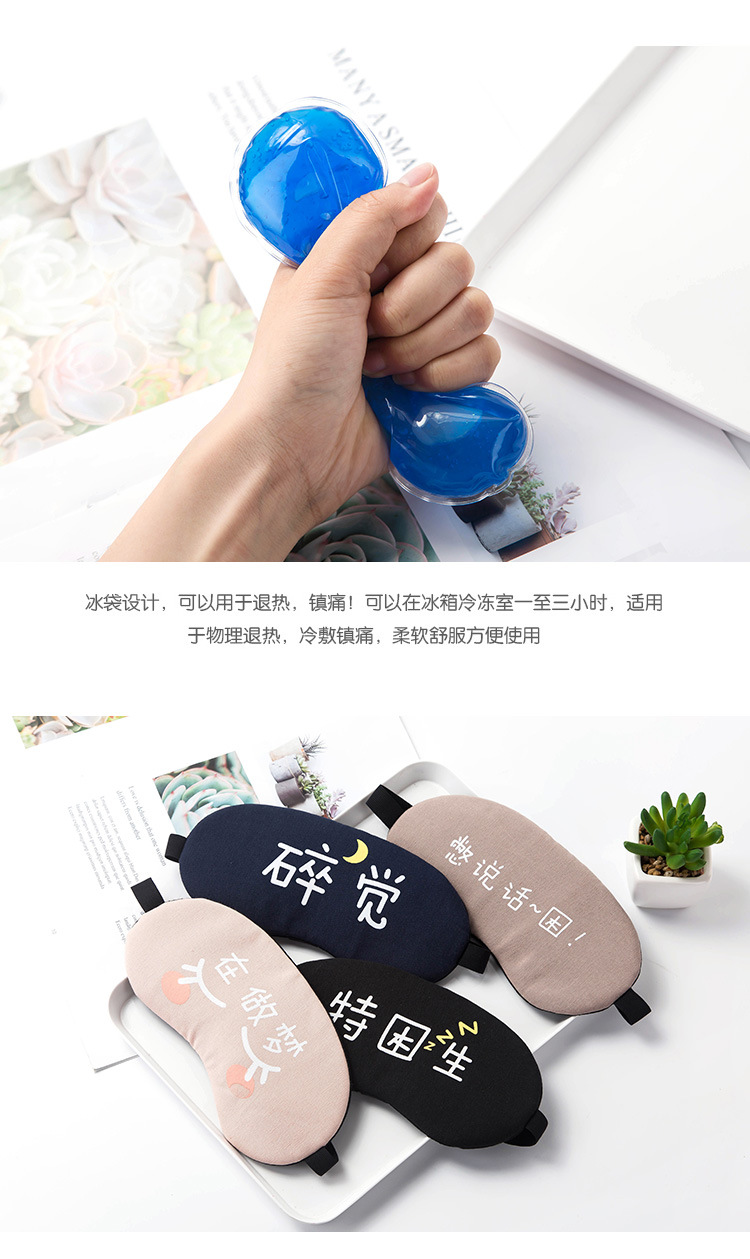 遮光透气棉睡眠眼罩 个性文字可爱女男冰袋冰敷热敷睡觉护眼罩1个