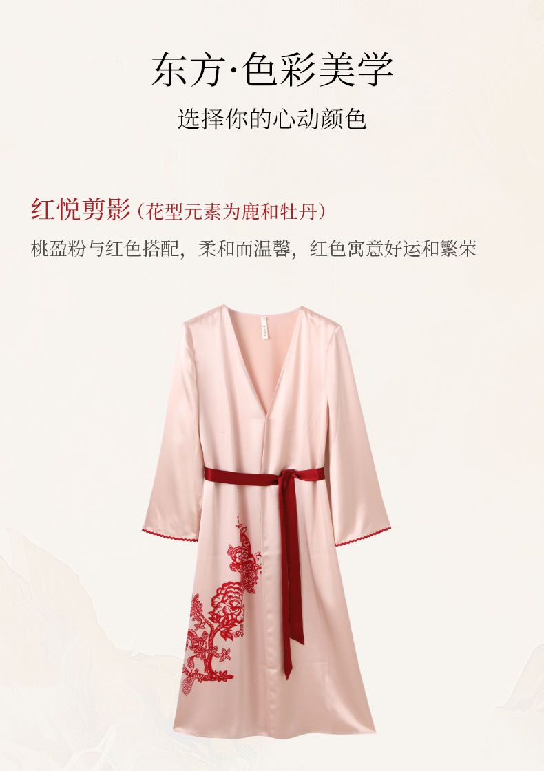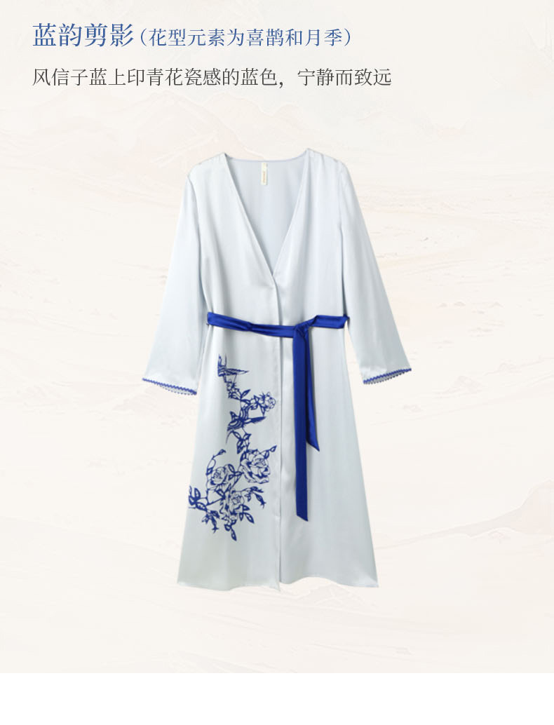 金三塔重磅真丝睡袍女100%桑蚕丝宽松舒适撞色印花家居服单袍 YSFFC101