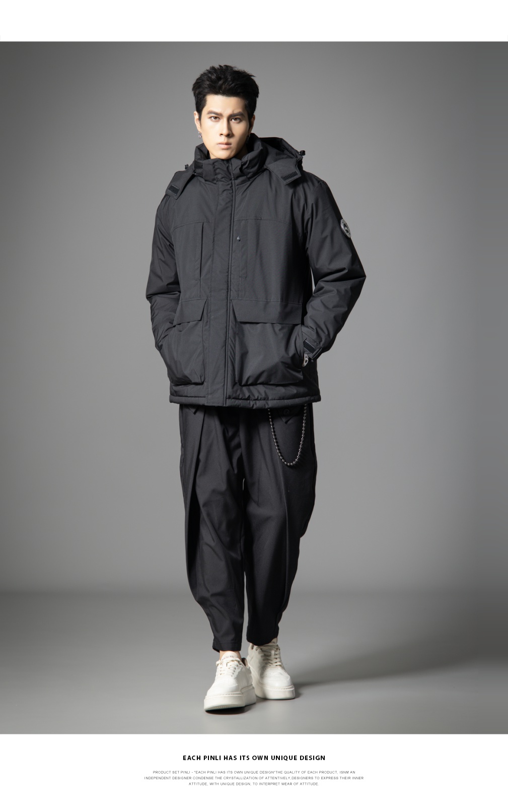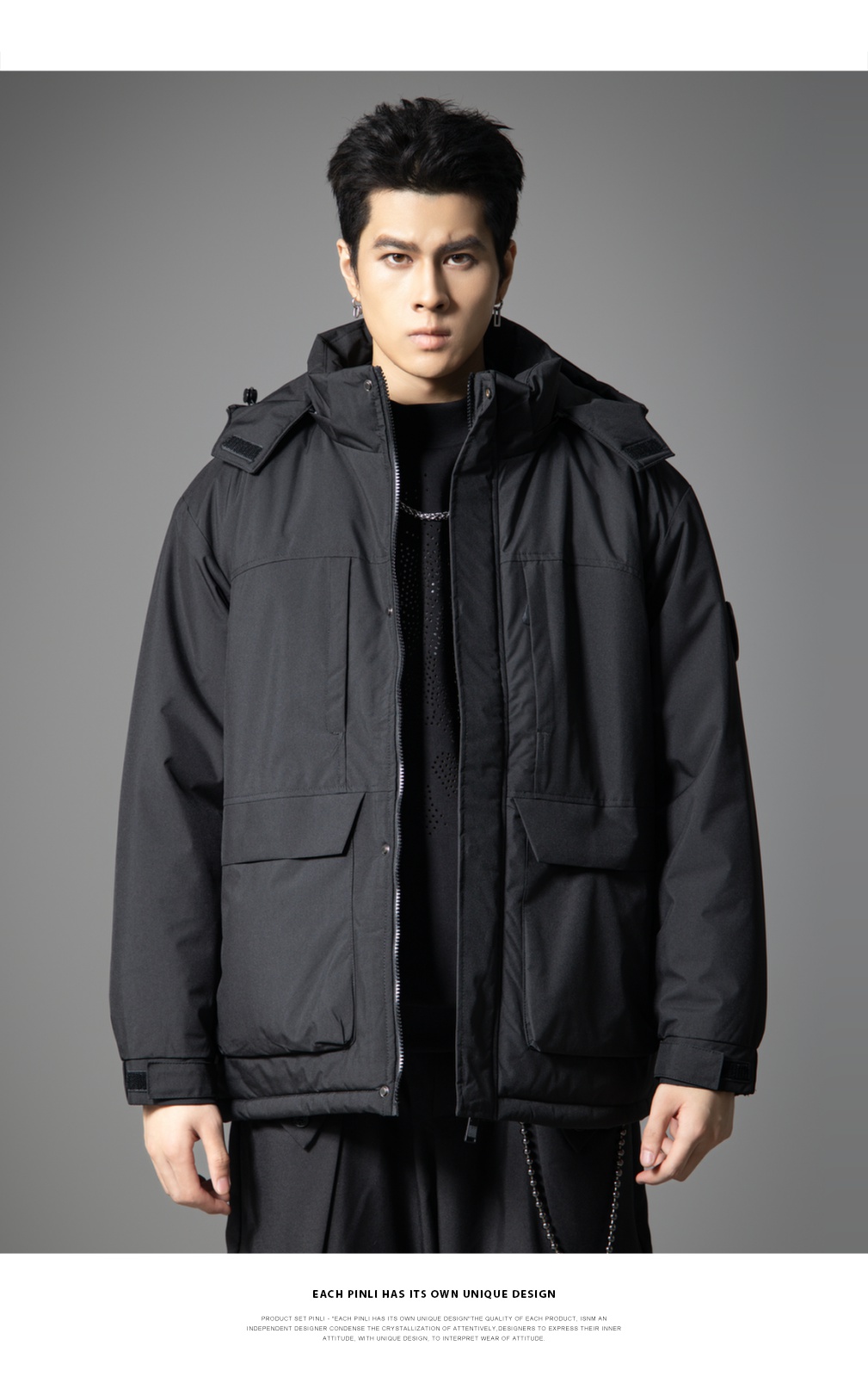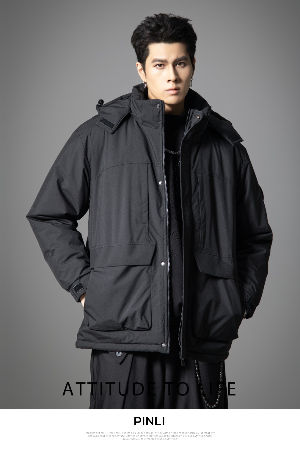 PINLI品立2025秋冬新款可拆卸连帽棉服外套潮男宽松工装休闲棉衣GD253105164