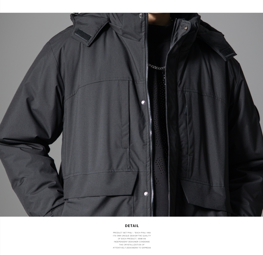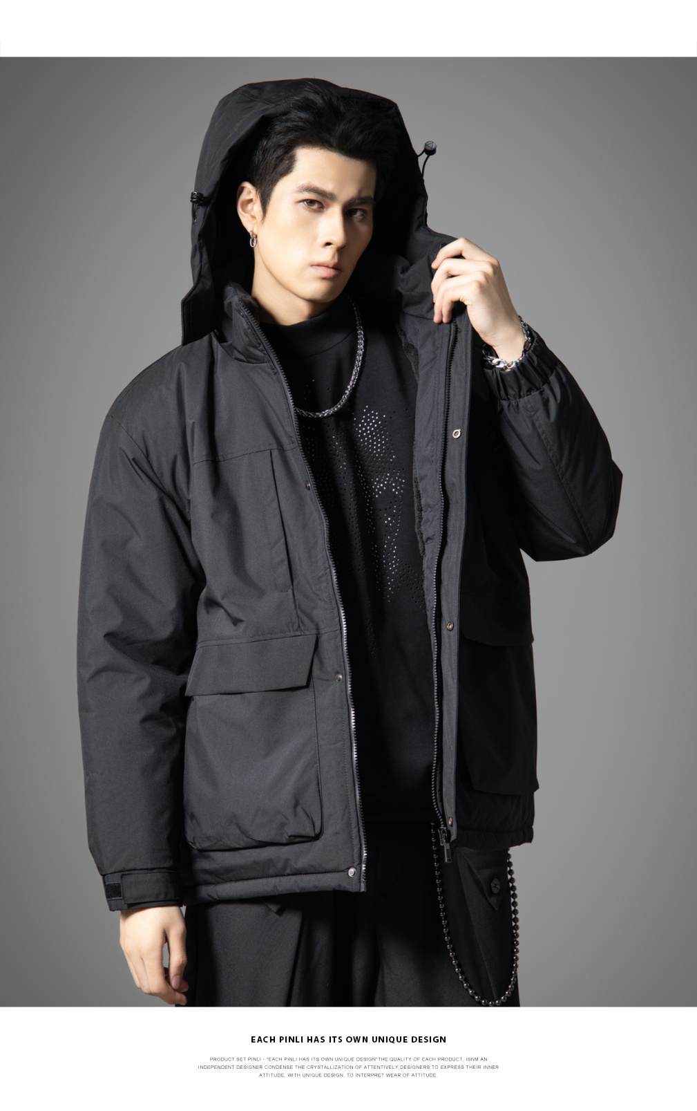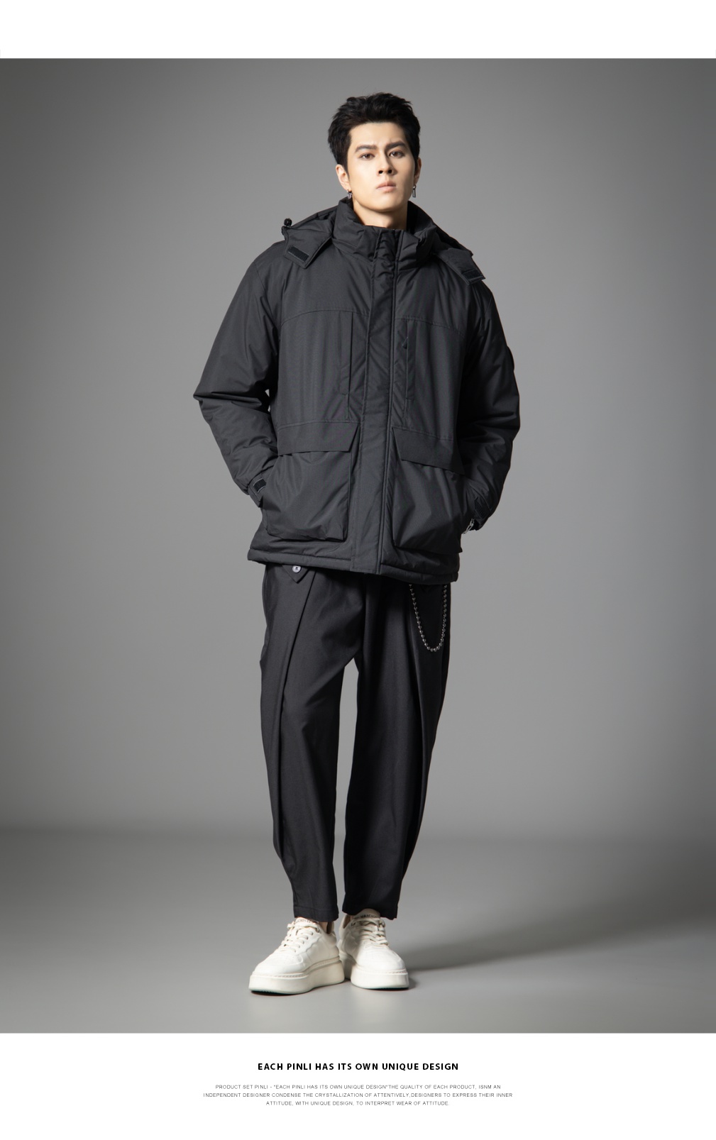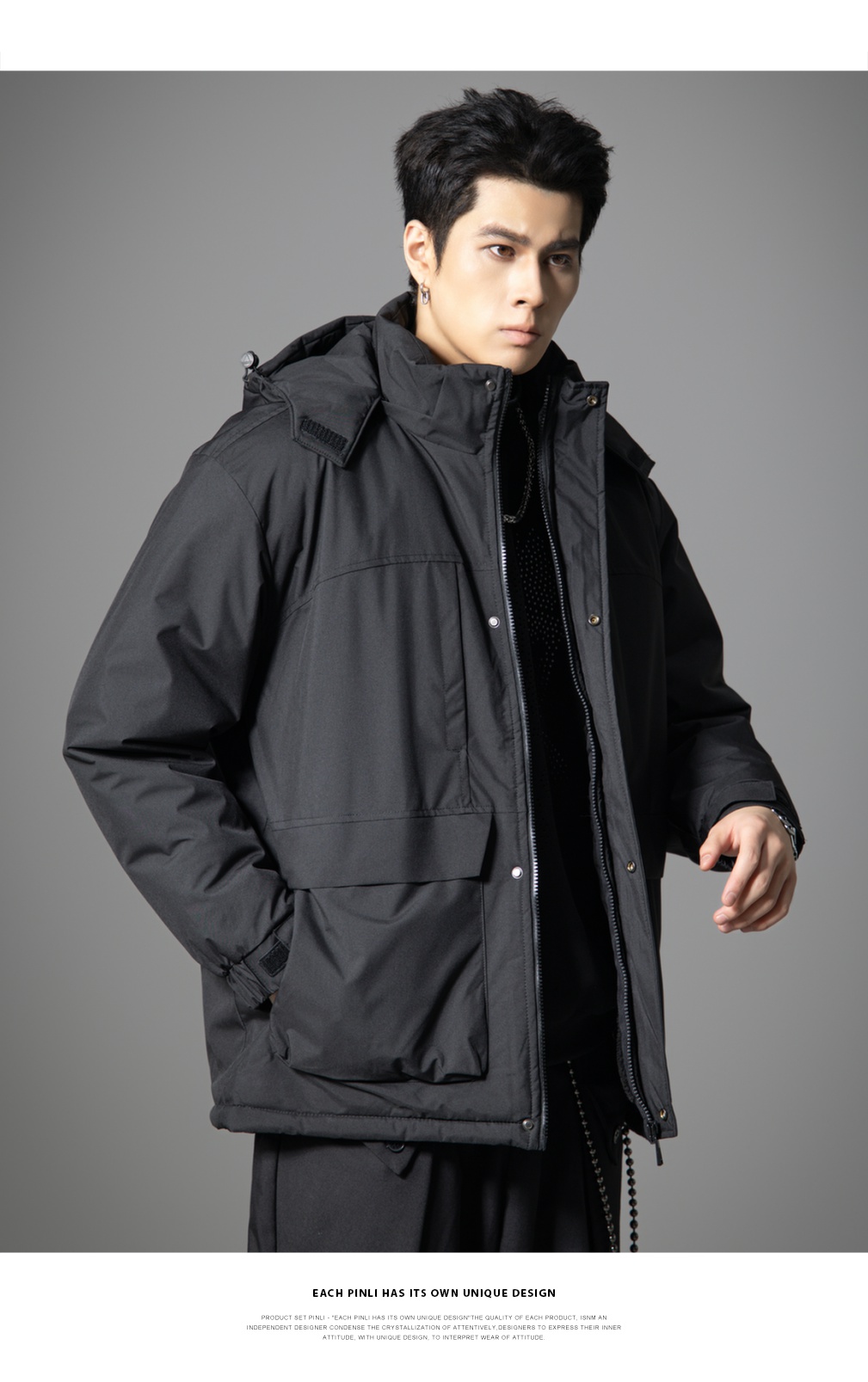 PINLI品立2025秋冬新款可拆卸连帽棉服外套潮男宽松工装休闲棉衣GD253105164