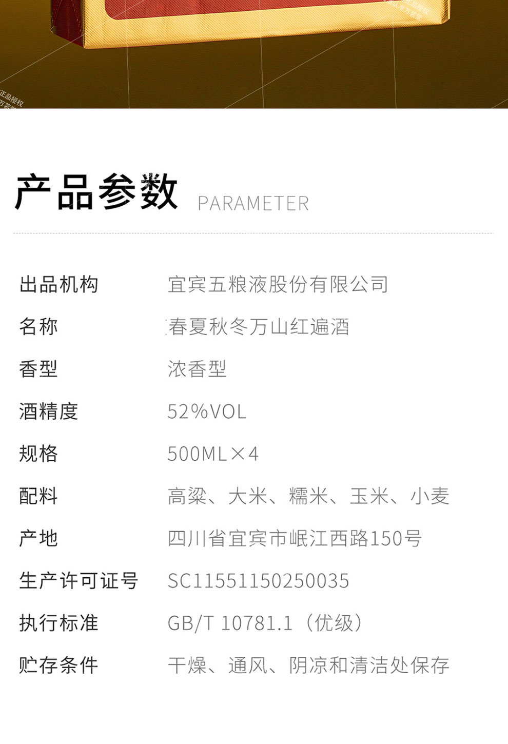 春夏秋冬万山红遍礼盒酒 五粮液股份出品 52度500ml*4瓶