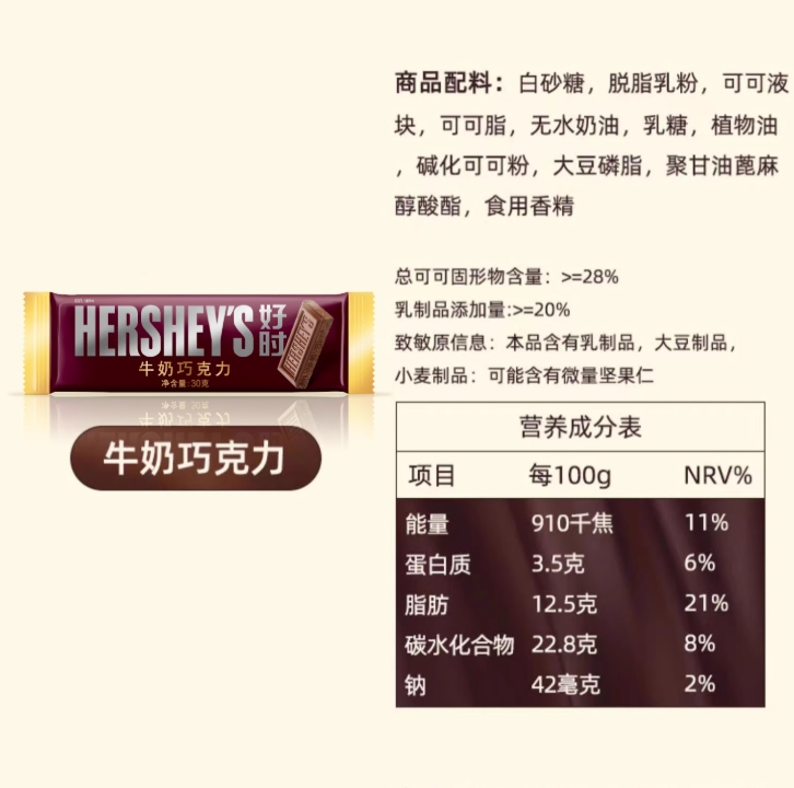 好时 牛奶巧克力 30g/条