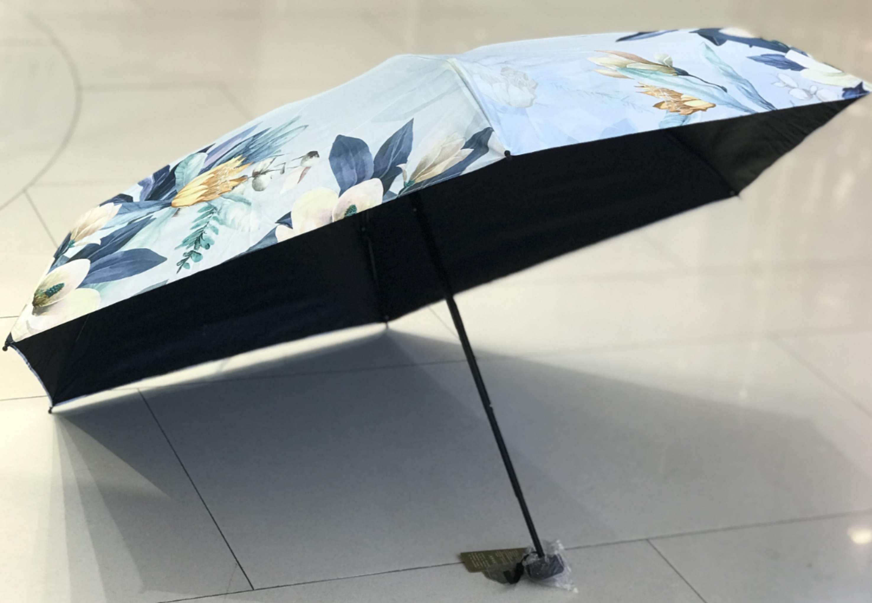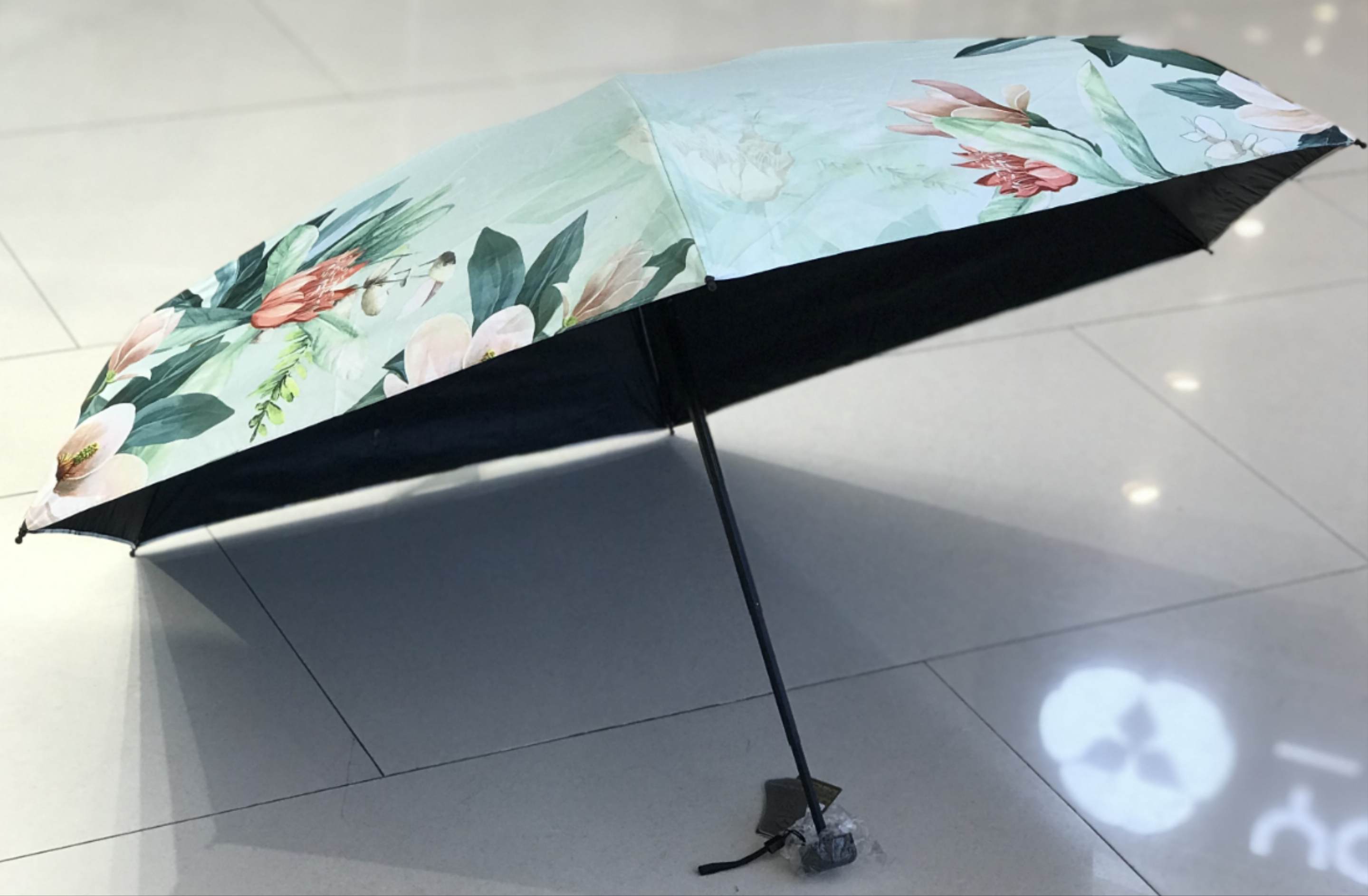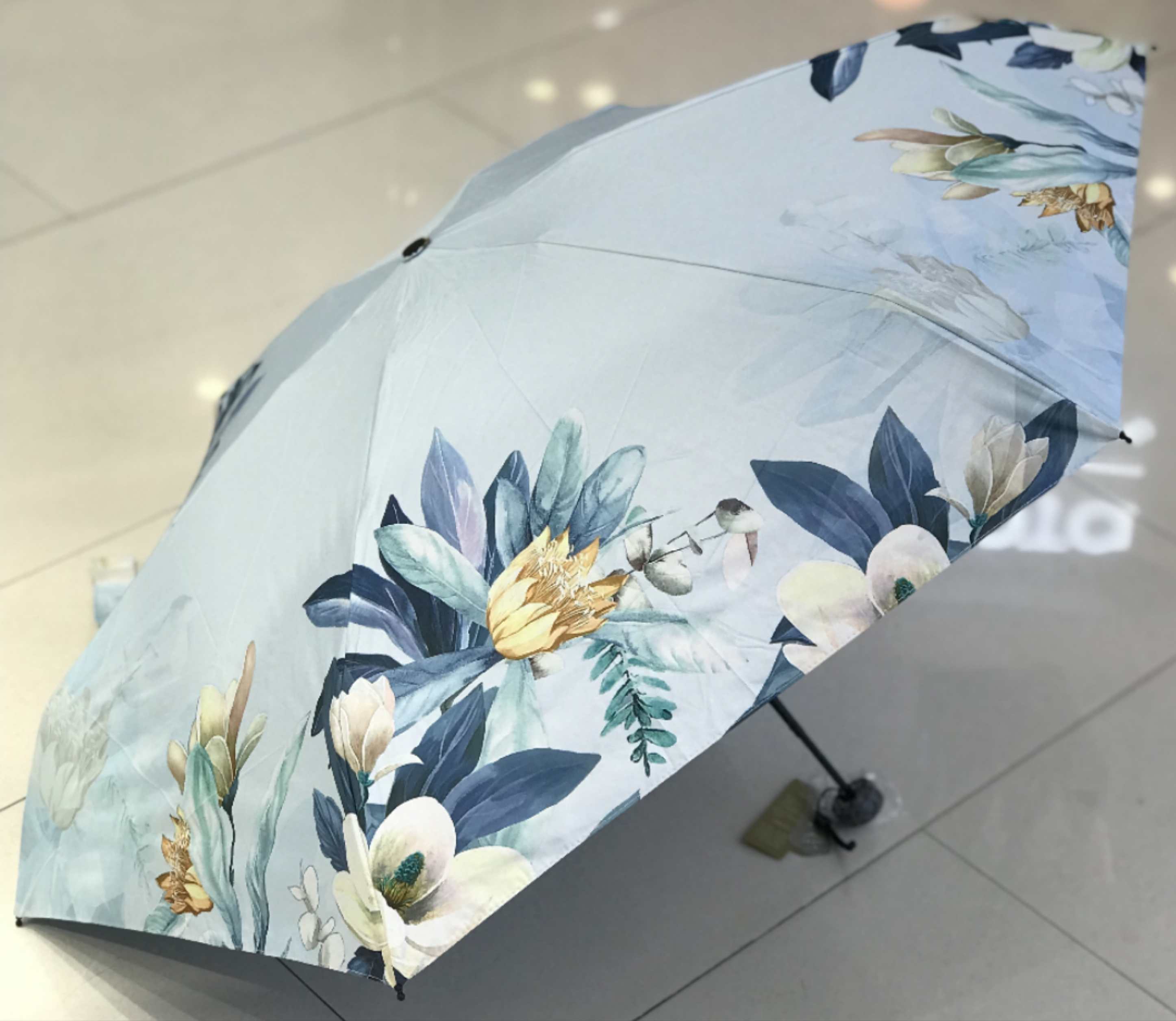 优品堂【烈焰花漾】五折黑胶防外线伞
