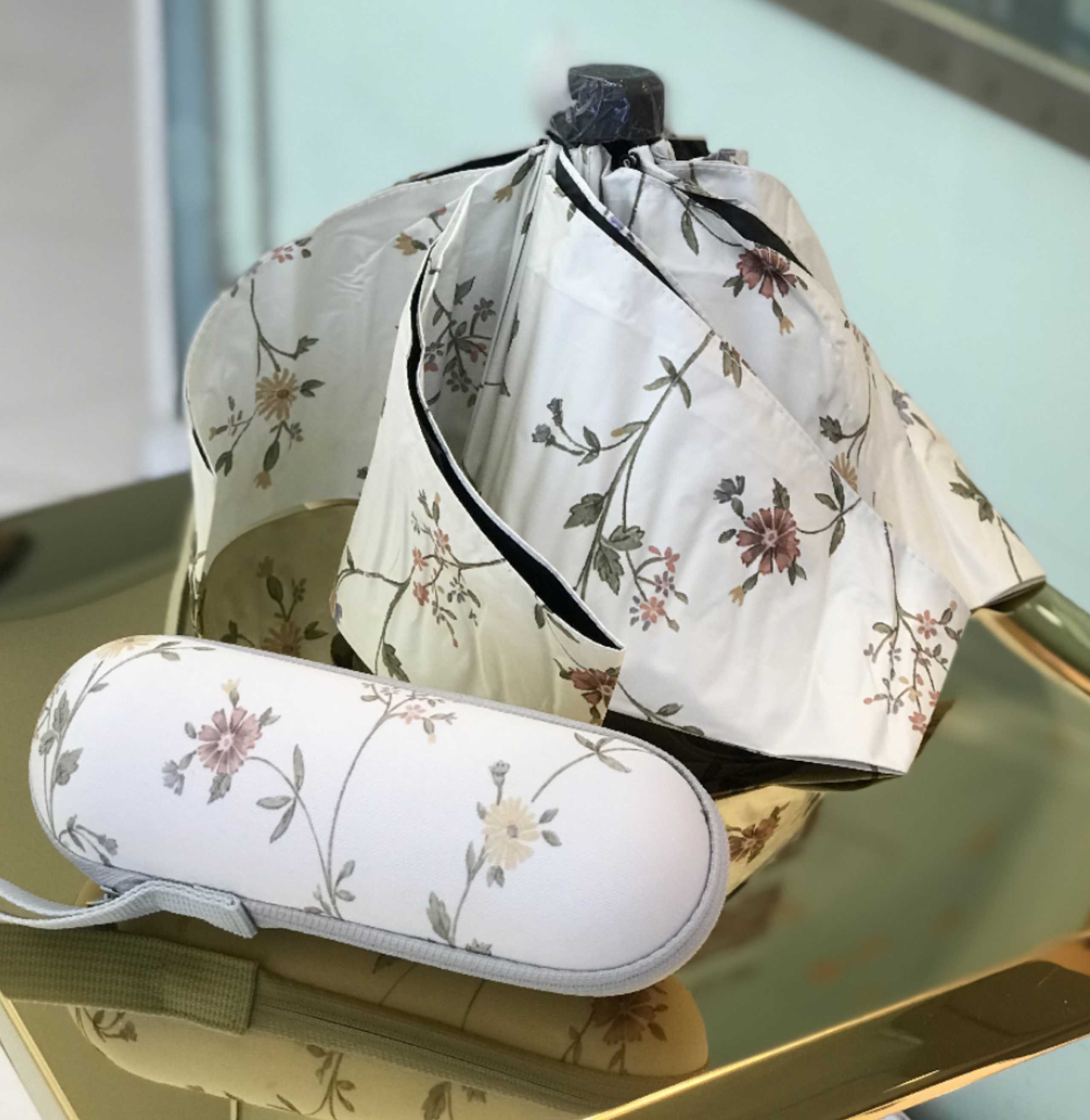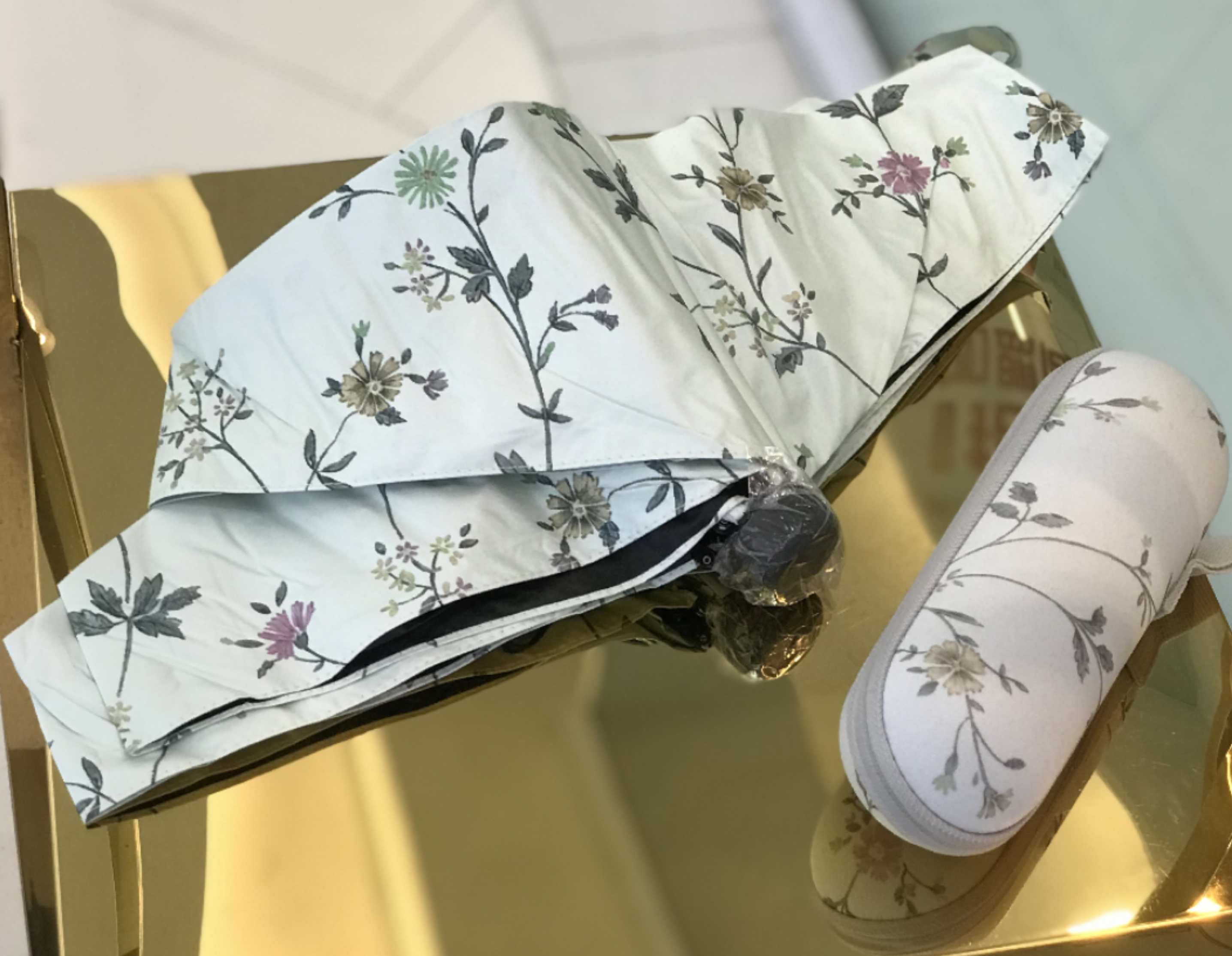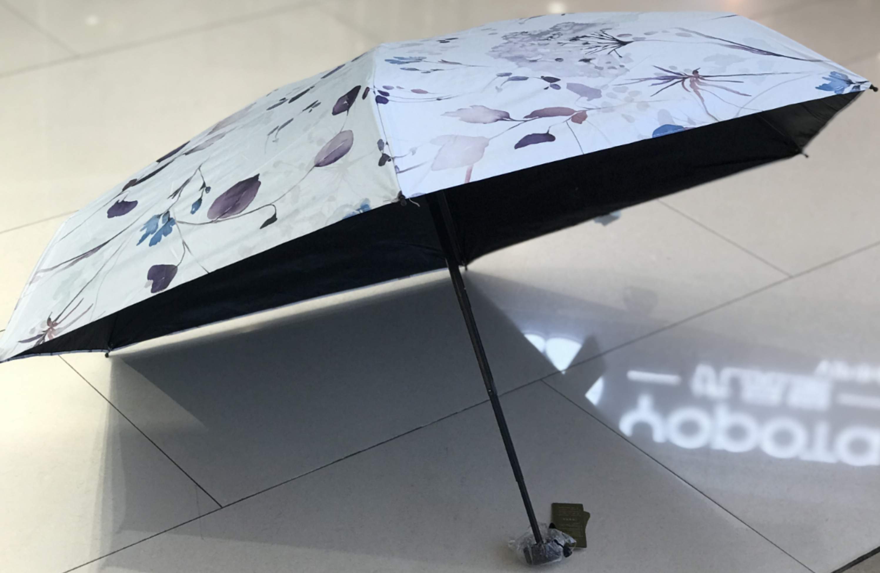 优品堂【烈焰花漾】五折黑胶防外线伞