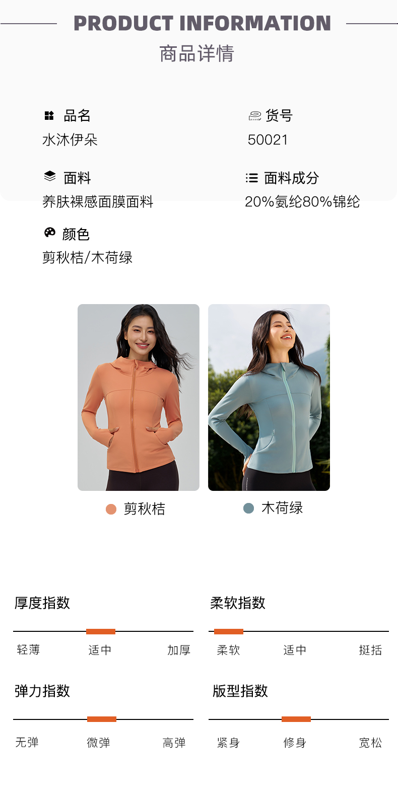 SMOEDOD/水沐伊朵养肤裸感运动瑜伽连帽外套轻盈透气防风女50021