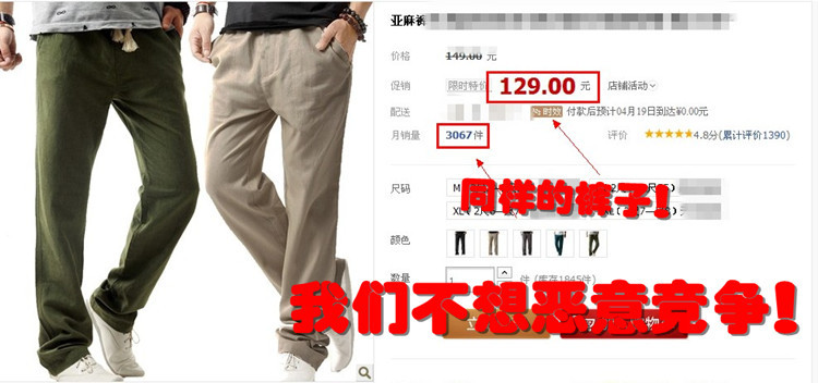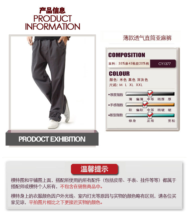 【服饰鞋包】夏季薄款透气亚麻宽松棉麻直筒长裤