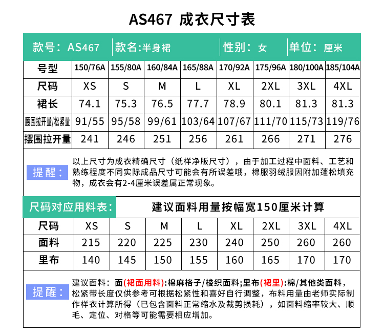 裁缝学苑AS467格子半身裙纸样女装拼接伞裙夏季中长款裙子样板图纸