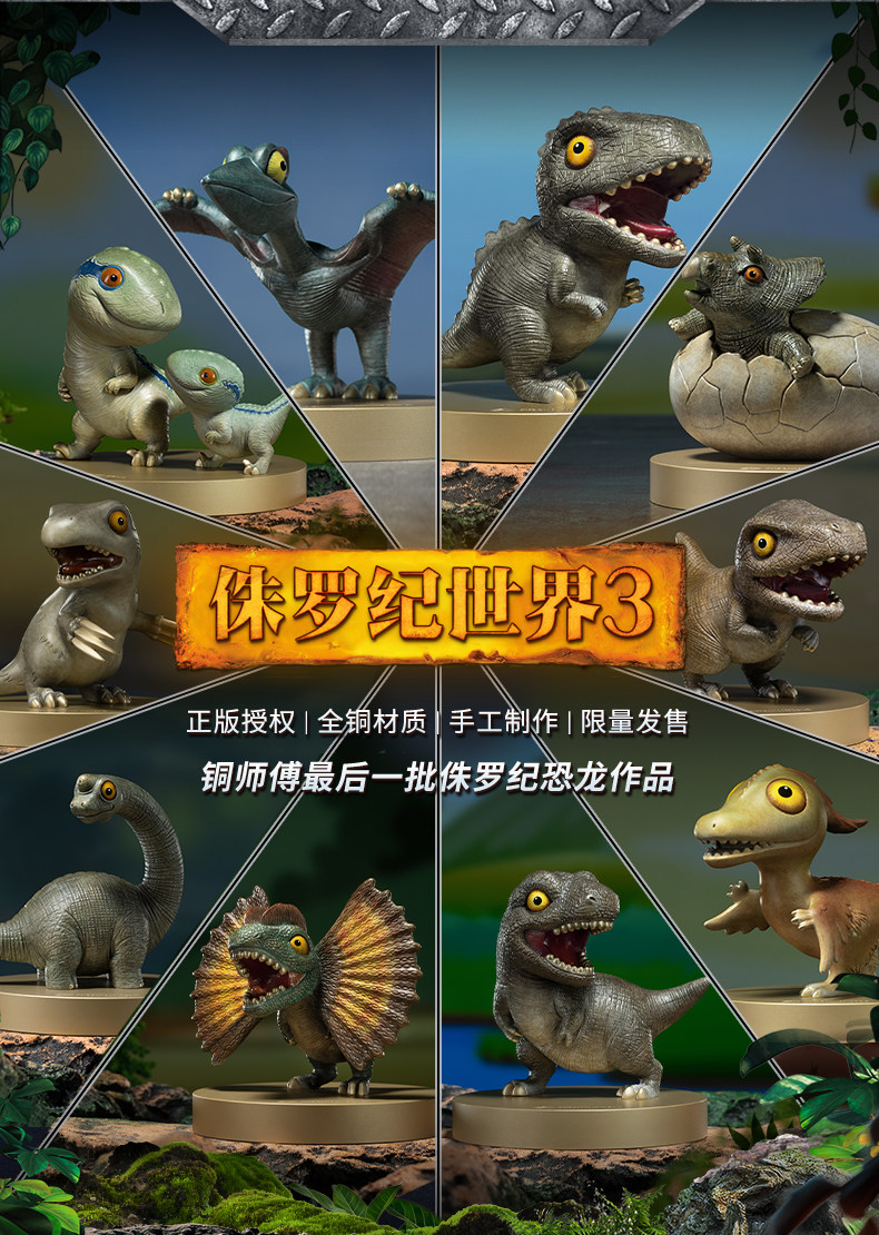 铜师傅《侏罗纪世界3》之萌版恐龙 客厅办公室装饰摆件