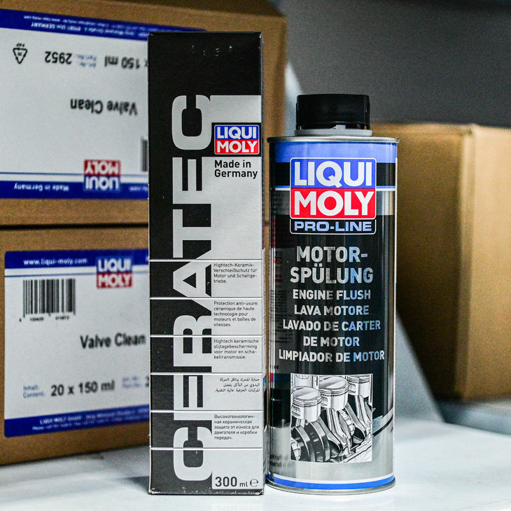 除了机油外,我们搭配发动机内部清洗剂和力魔发动机陶瓷保护剂。
