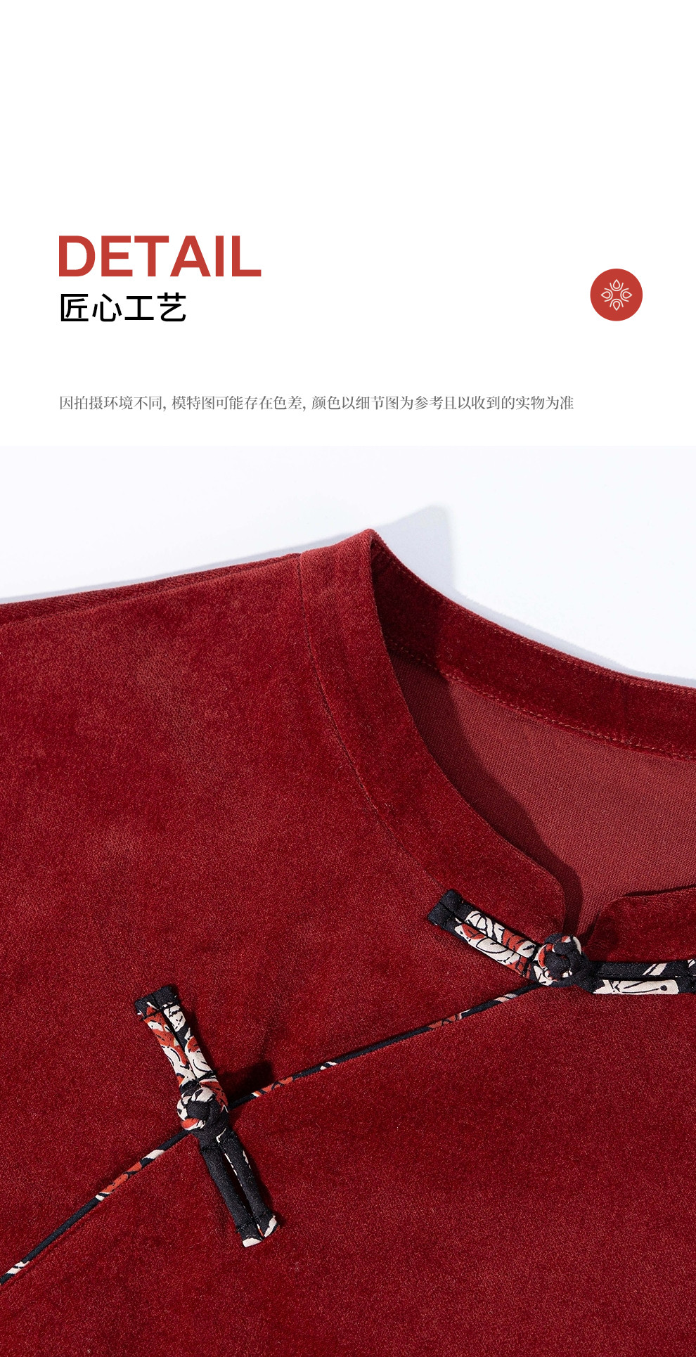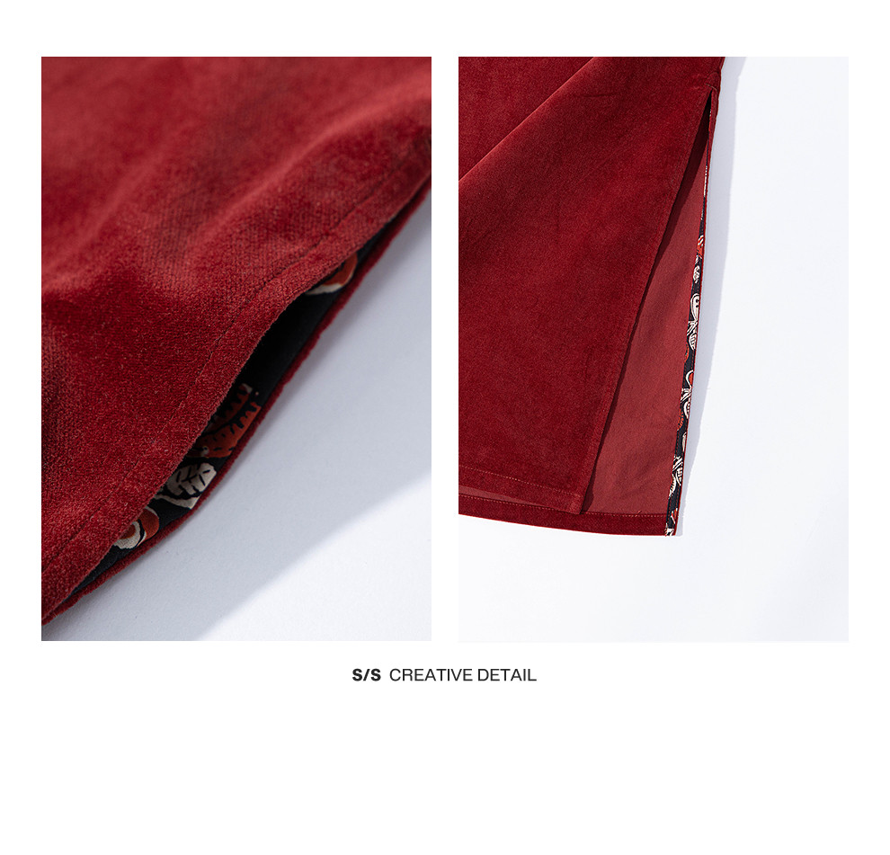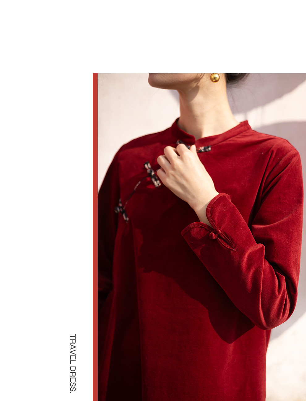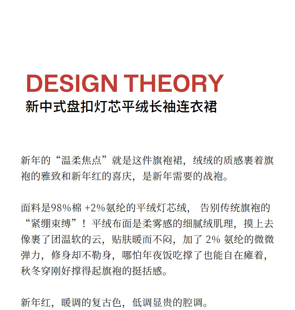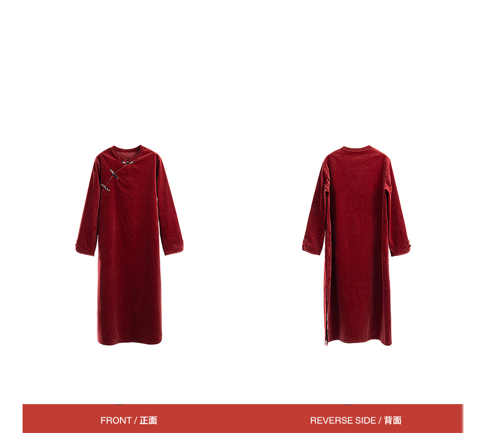 绽放039朵/新中式盘扣纯棉灯芯平绒长袖连衣裙冬新年红色文艺长裙