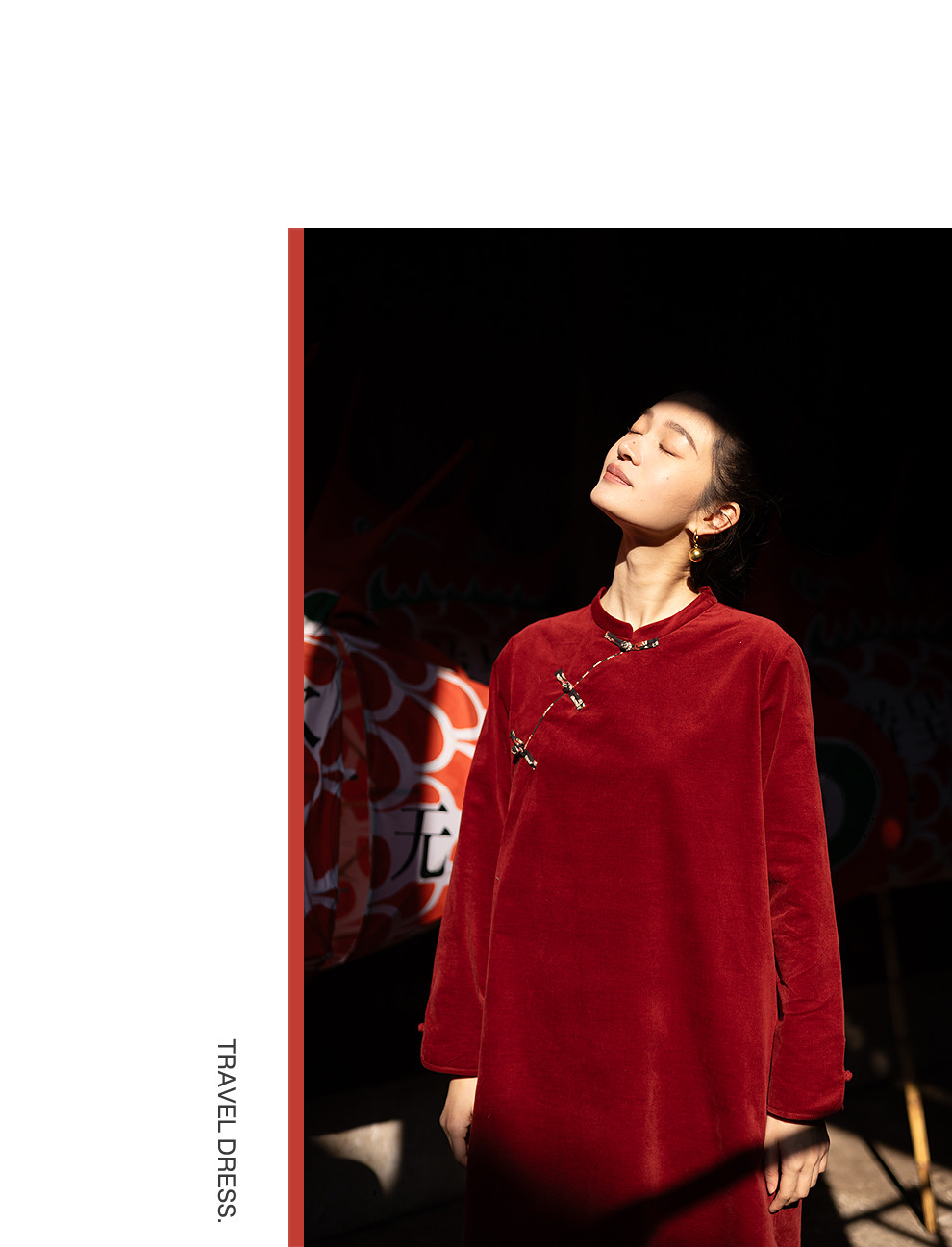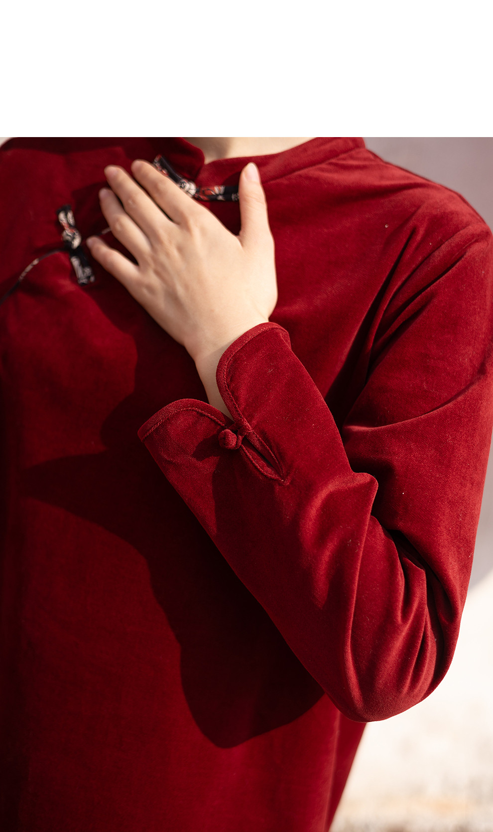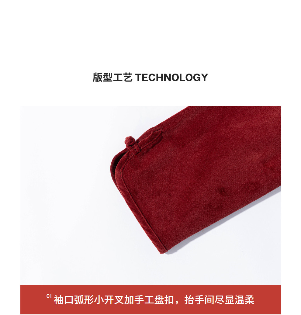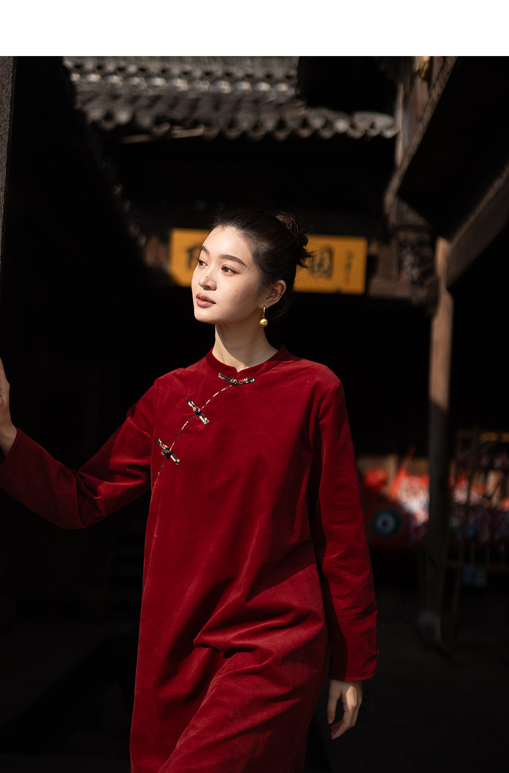 绽放039朵/新中式盘扣纯棉灯芯平绒长袖连衣裙冬新年红色文艺长裙