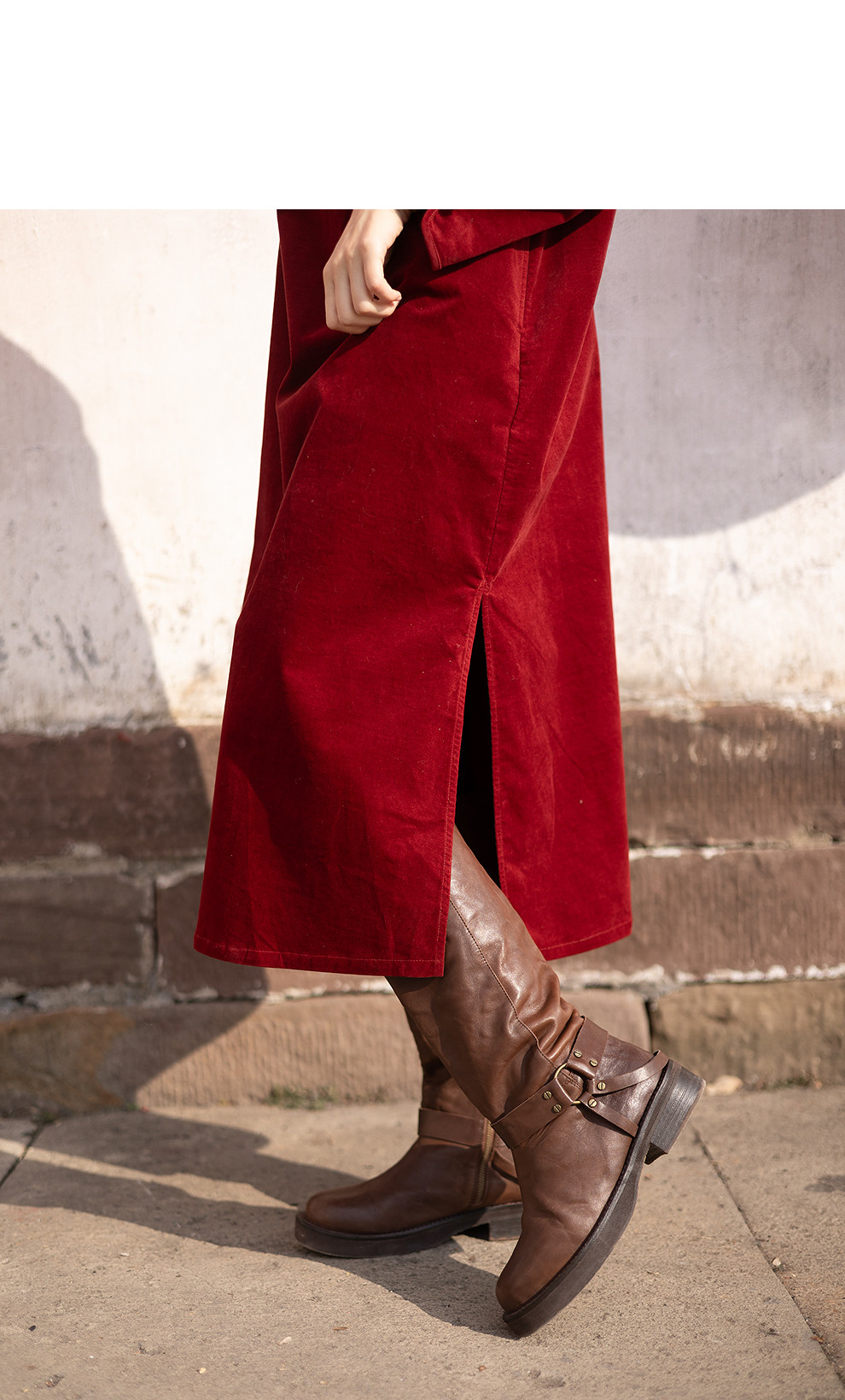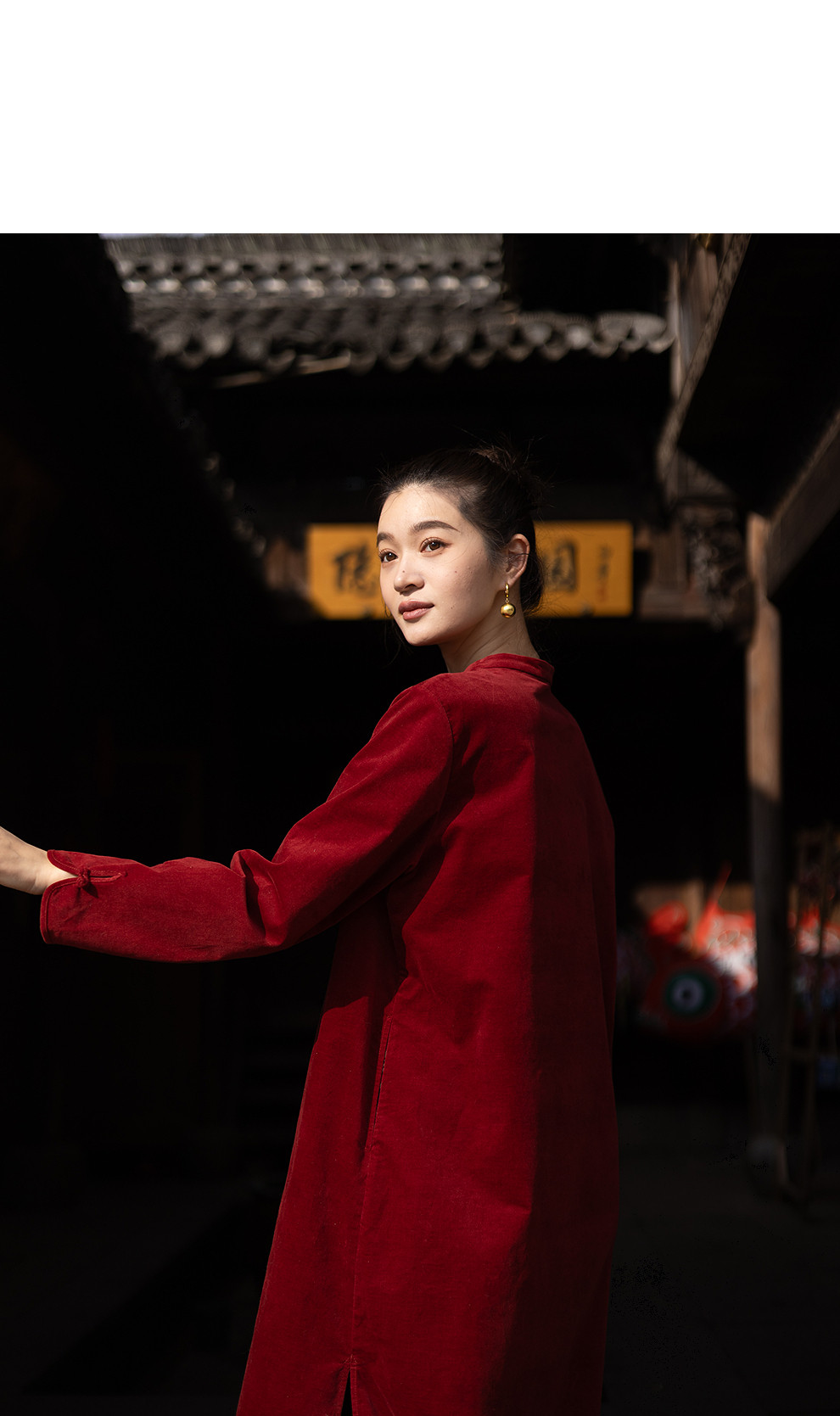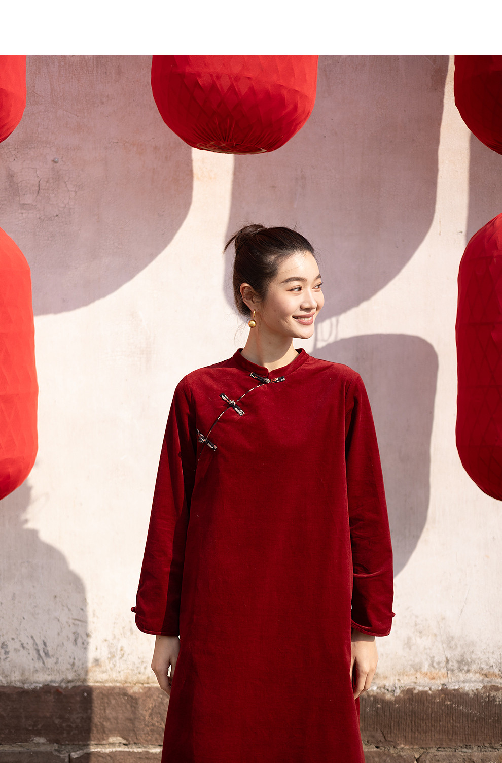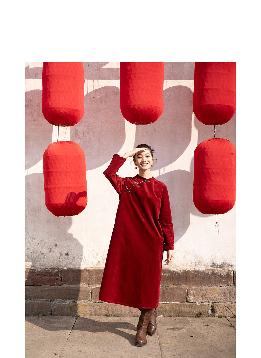 绽放039朵/新中式盘扣纯棉灯芯平绒长袖连衣裙冬新年红色文艺长裙