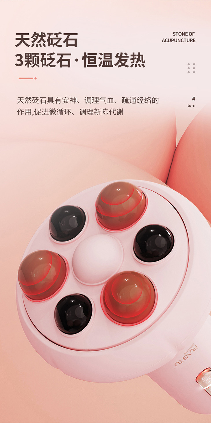 而且它上面有3颗砭石球、3颗红光按摩球,遇热之后,能产生强渗透力的红外线。