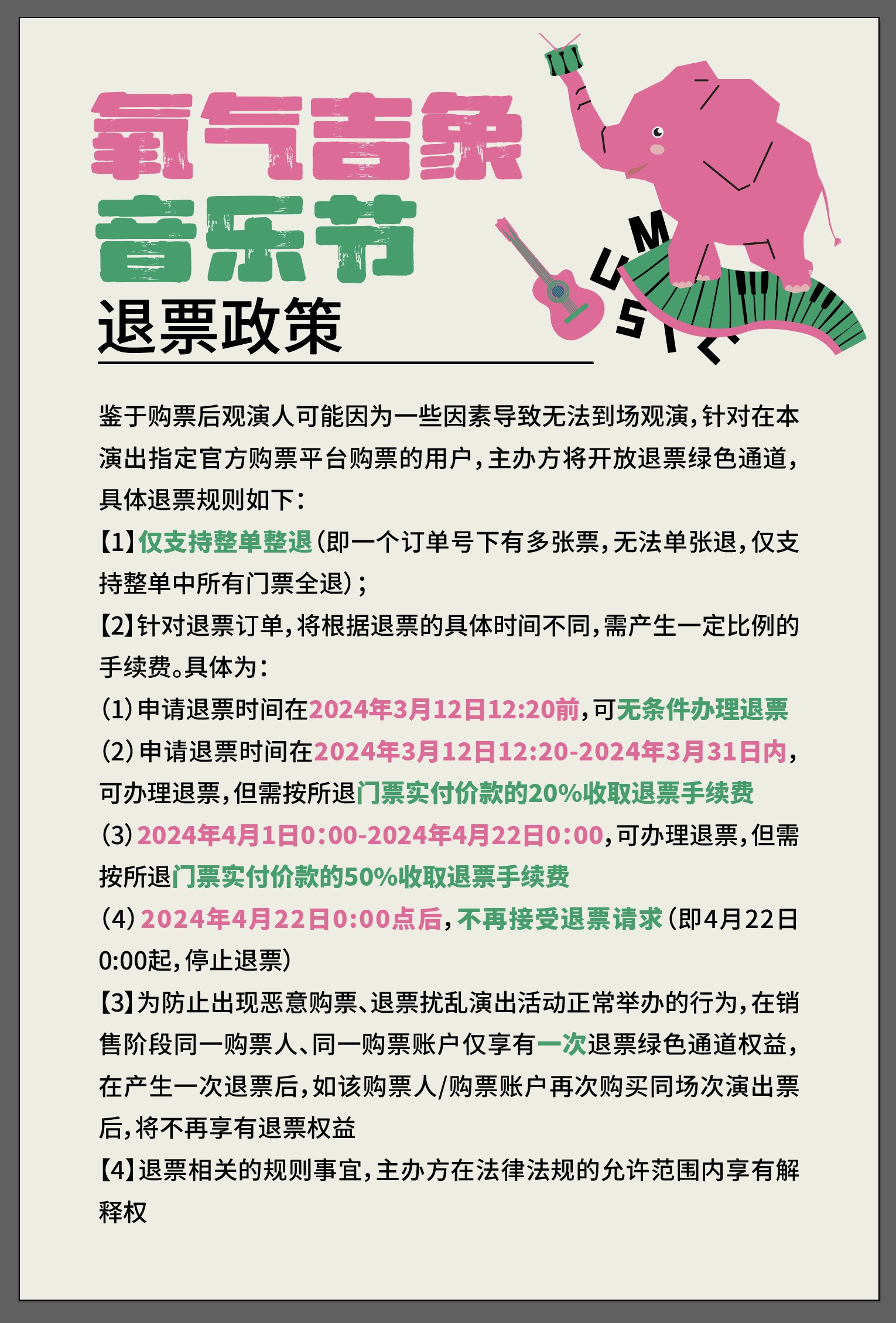 *若演出受不可抗力影响延期或取消导致退票的,仅支持退回票款,其它因观演发生的费用需由您自行承担。