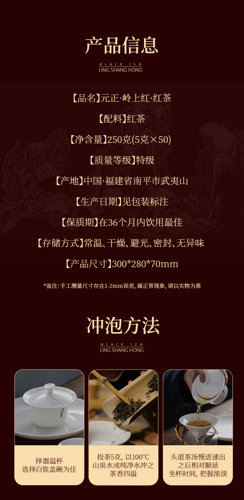 元正 岭上红礼盒装 特级浓香型大叶种武夷红茶送礼250g