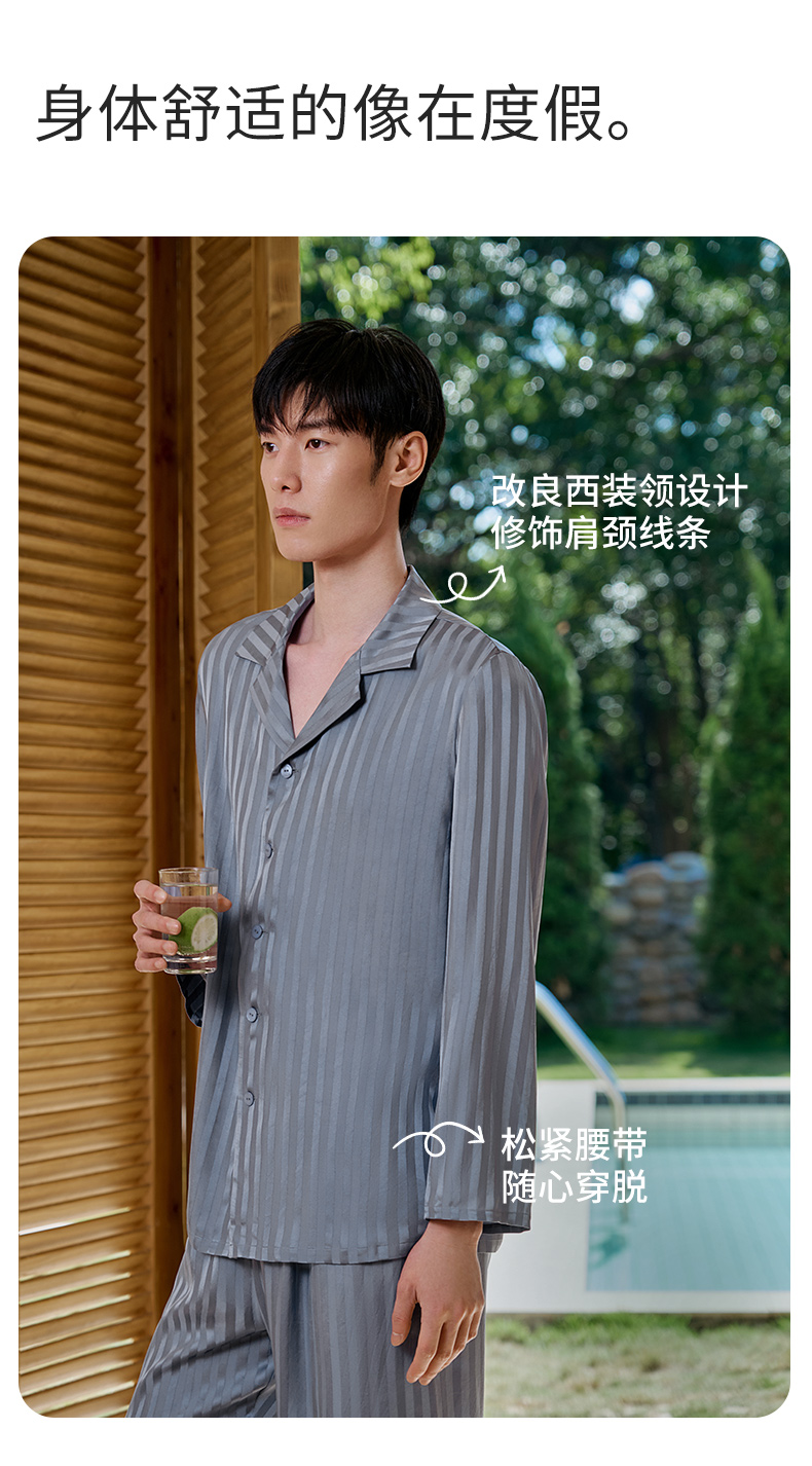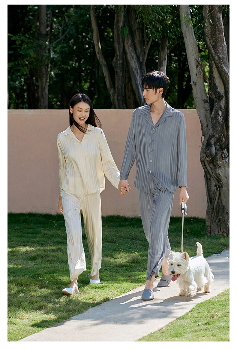 礼物】金三塔新品100%桑蚕丝桑波缎情侣真丝睡衣宽松舒适衣裤套 YSFFA211+YSMFA205
