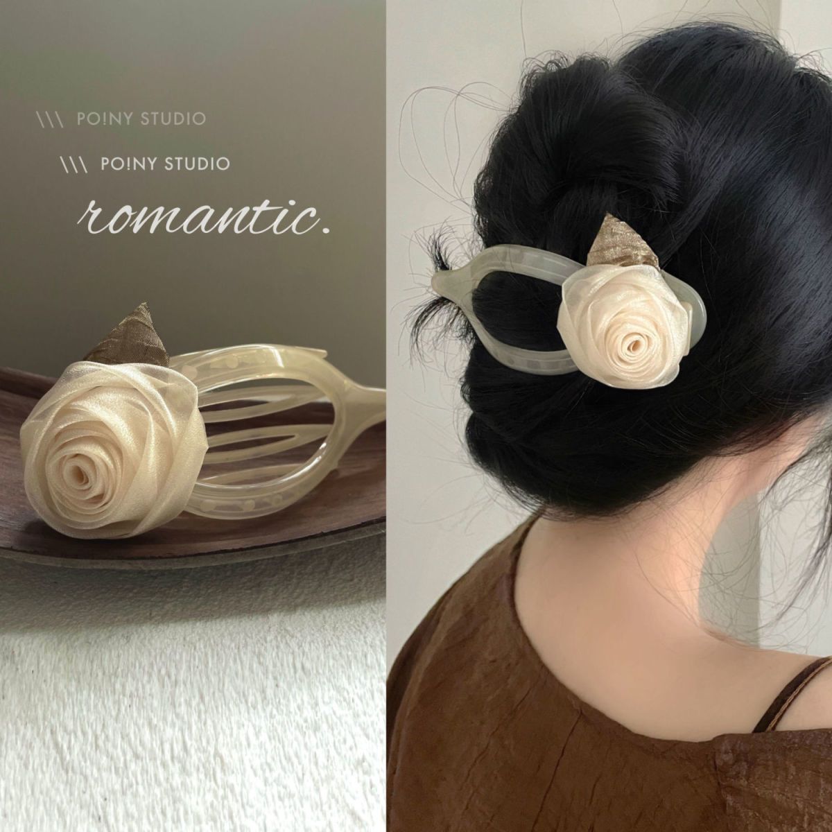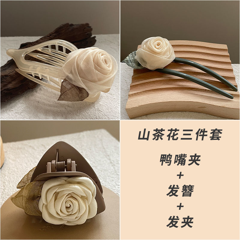山茶花朵发夹横夹温柔气质抓夹碎发夹
