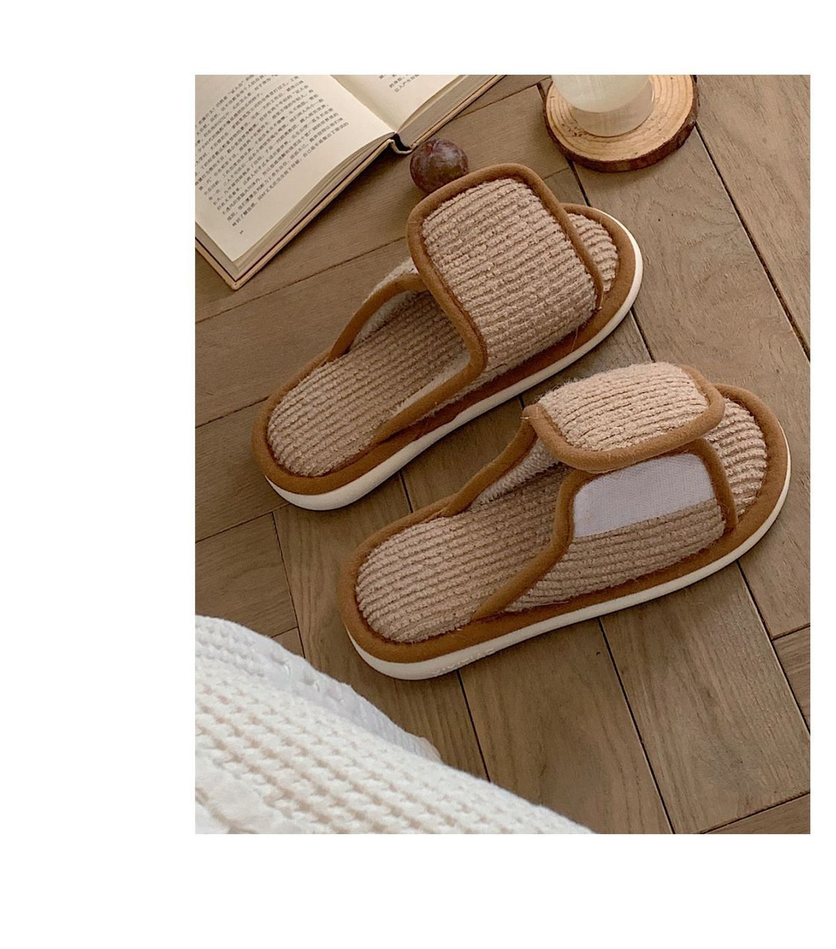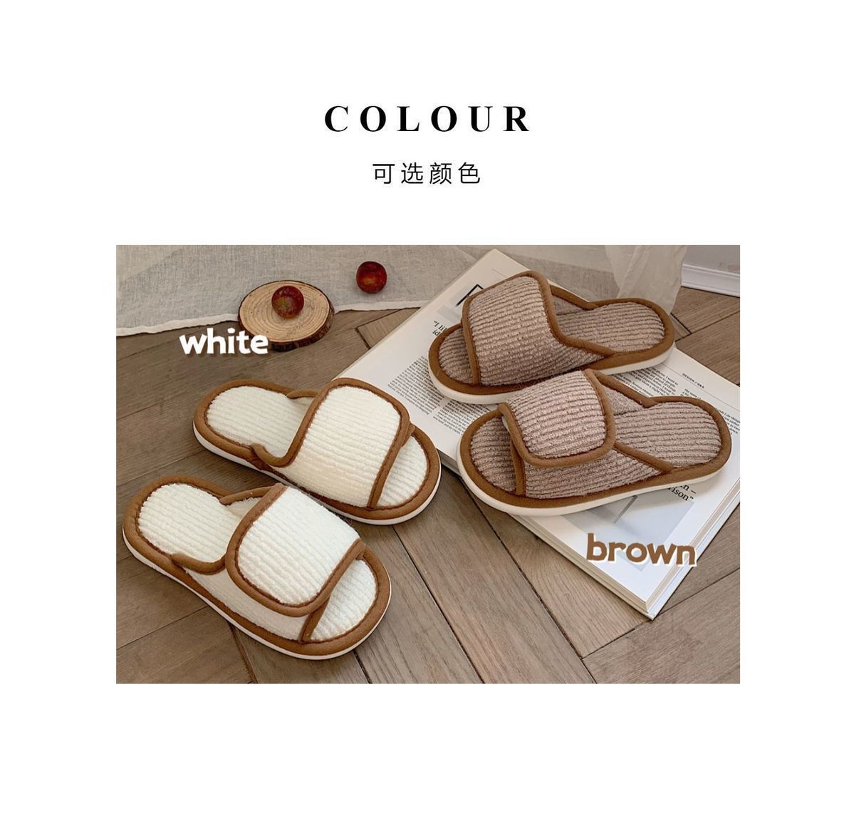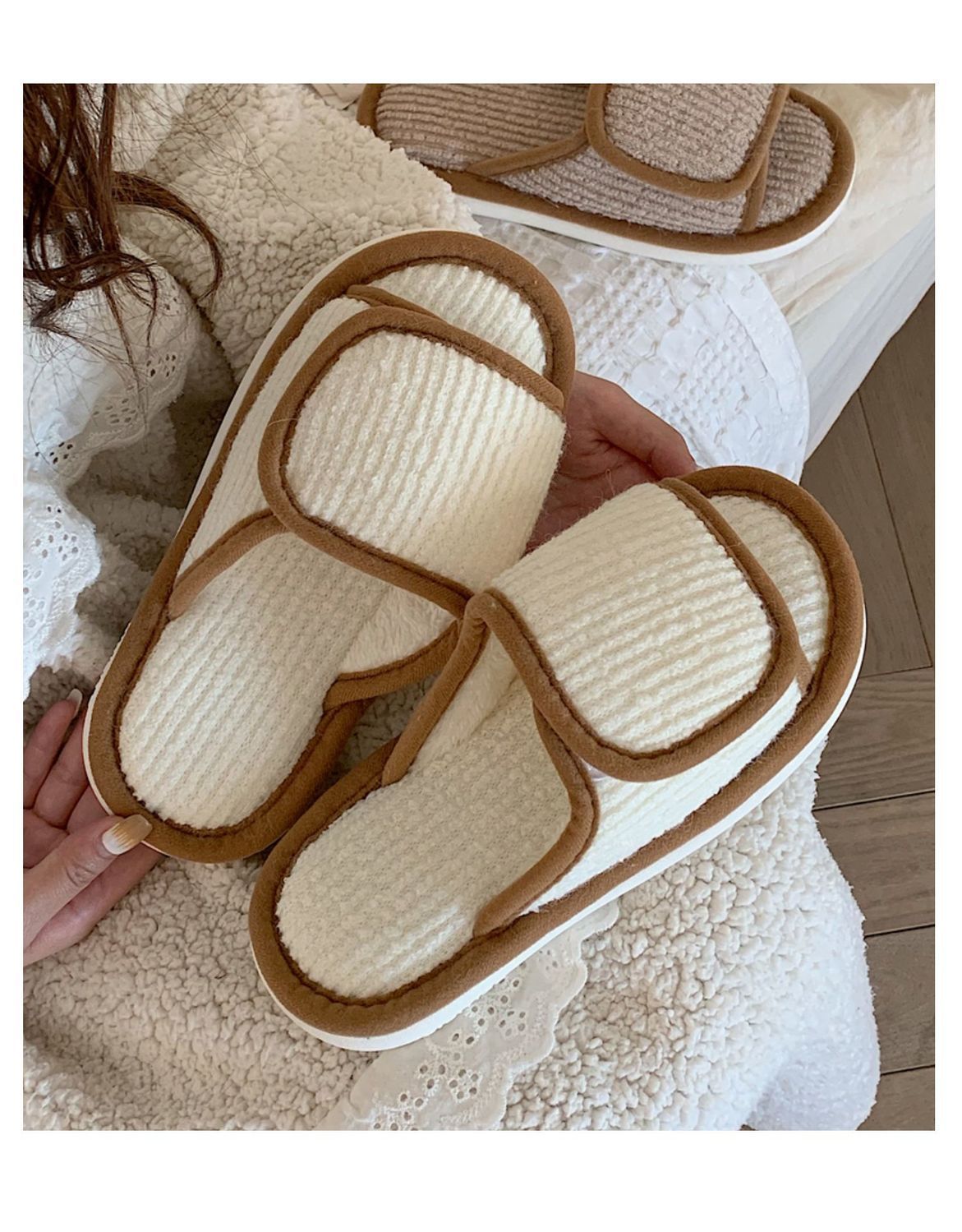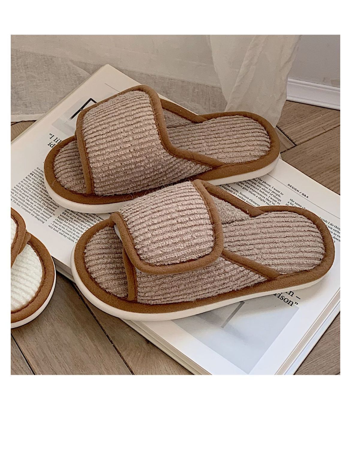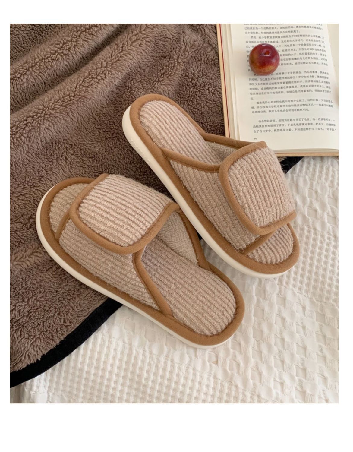 [脚肿浮肿可调节拖鞋] 一字棉拖鞋创意时尚魔术贴女秋冬室内家用简约纯色保暖月子鞋ins