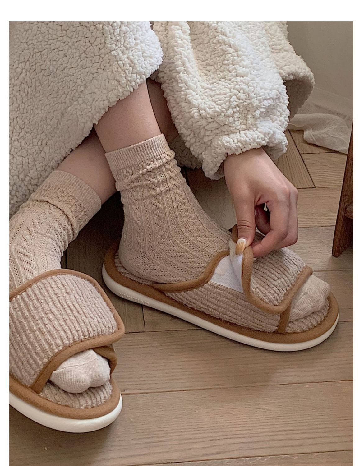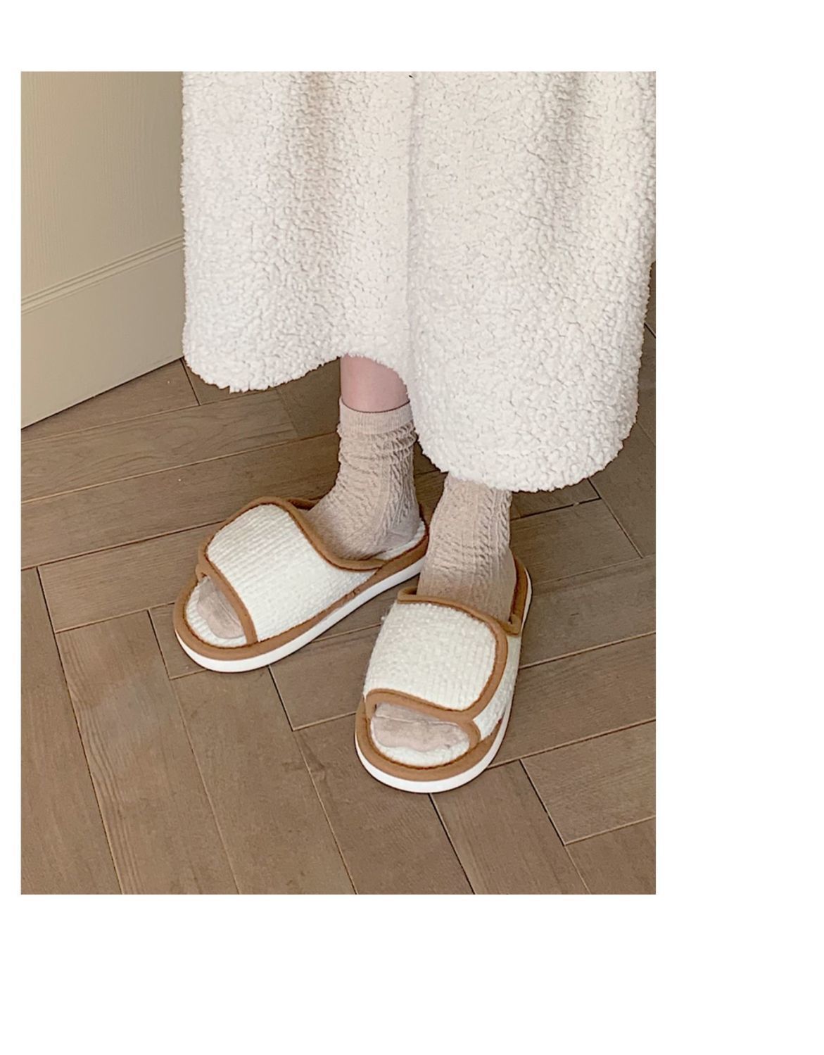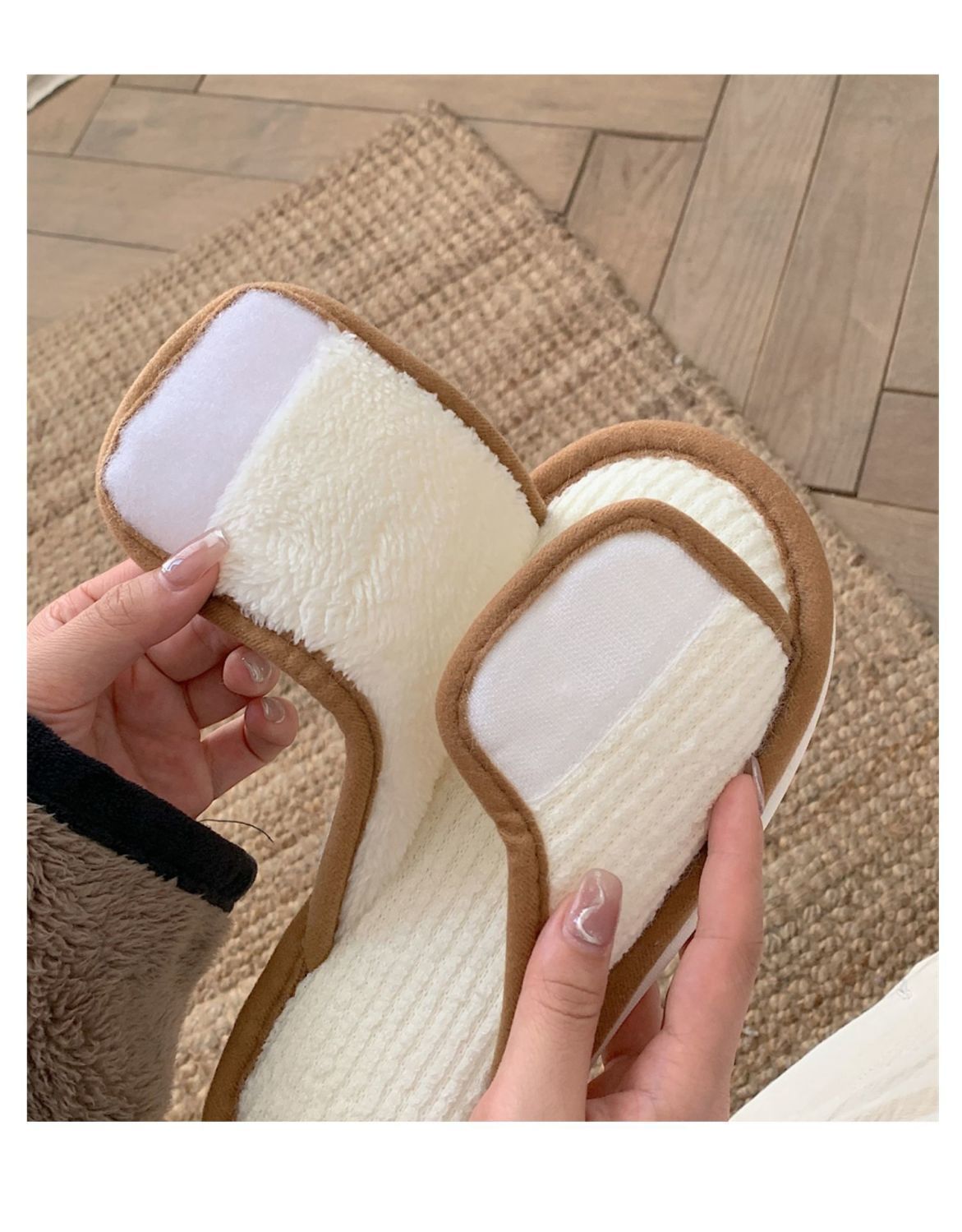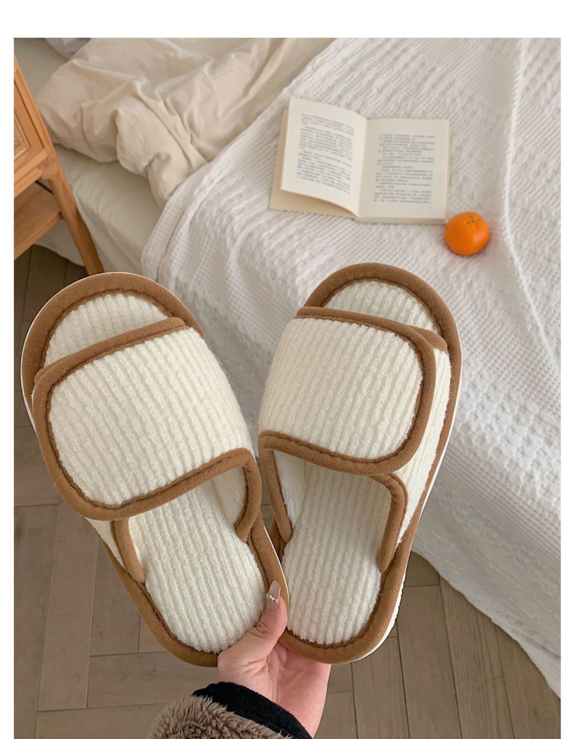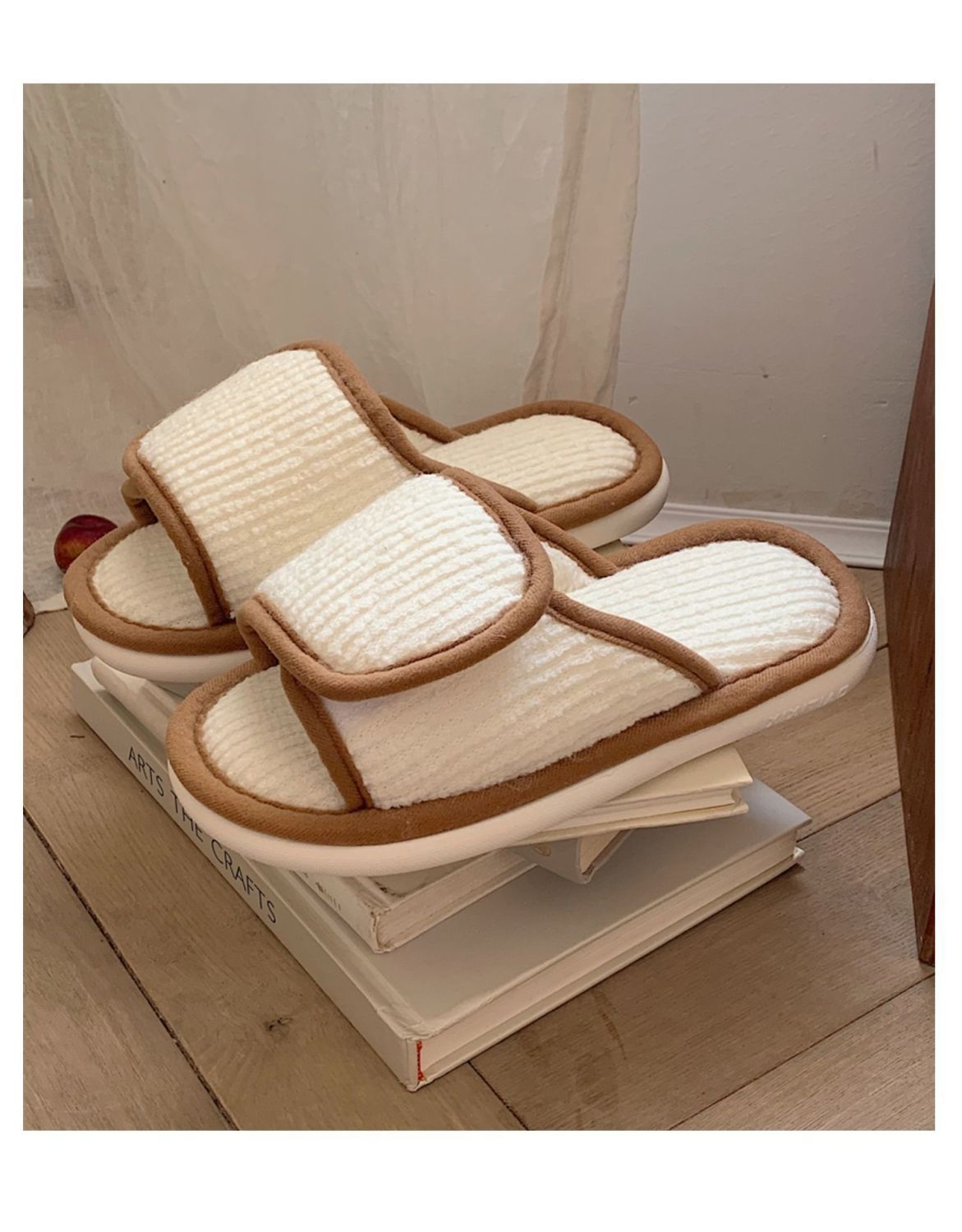 [脚肿浮肿可调节拖鞋] 一字棉拖鞋创意时尚魔术贴女秋冬室内家用简约纯色保暖月子鞋ins