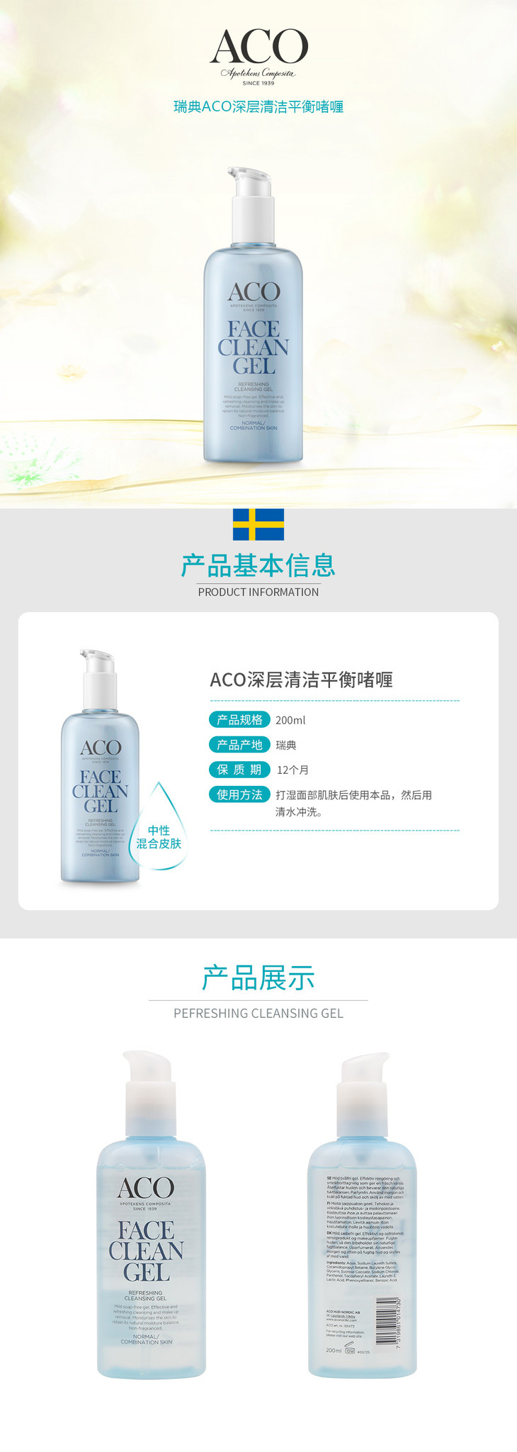 [瑞典]ACO深层清洁平衡啫喱 150ml ACO Face Refreshing Cleansing Gel 200 ml