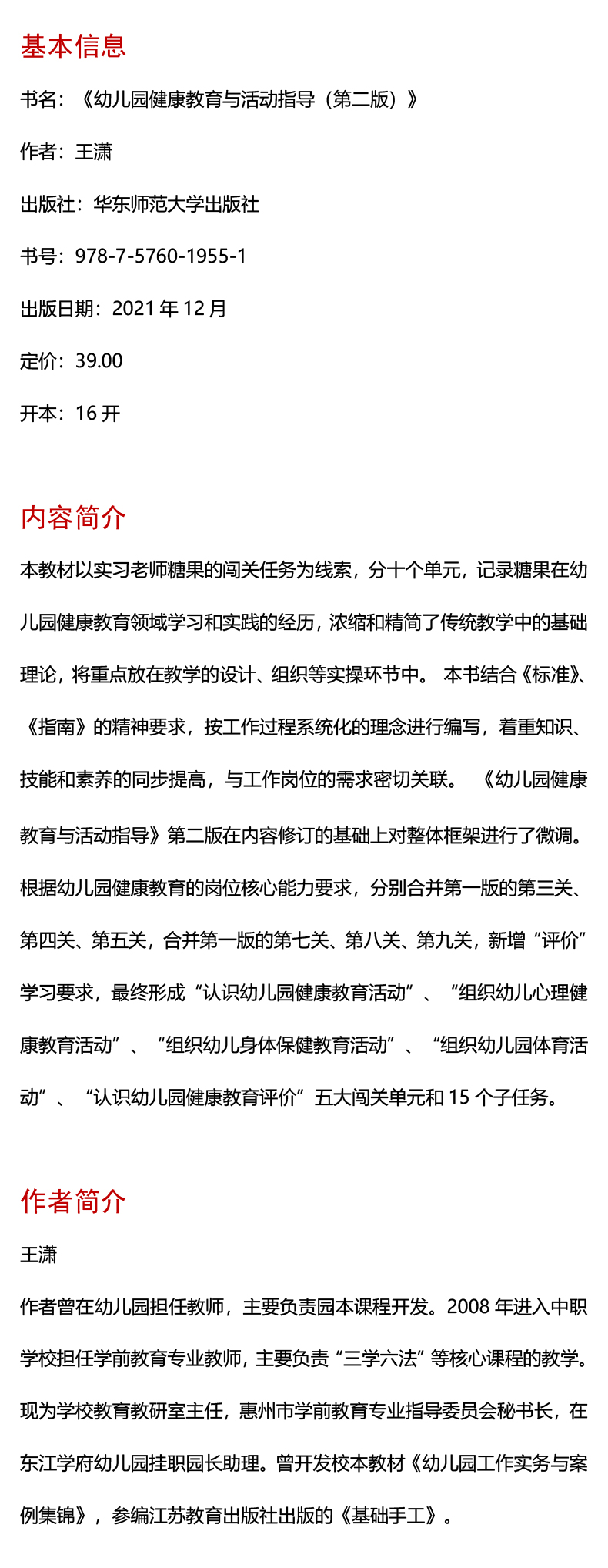幼儿园健康教育与活动指导 第二版 微课版 王潇主编