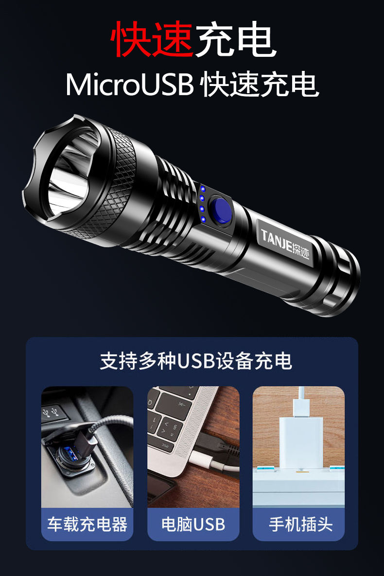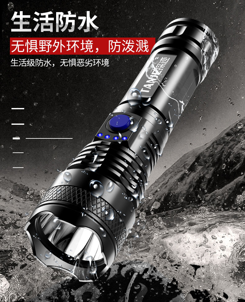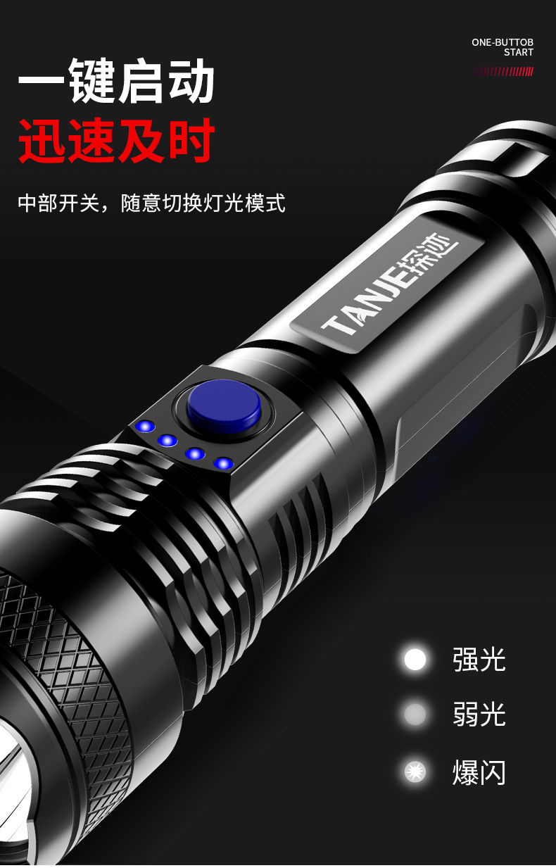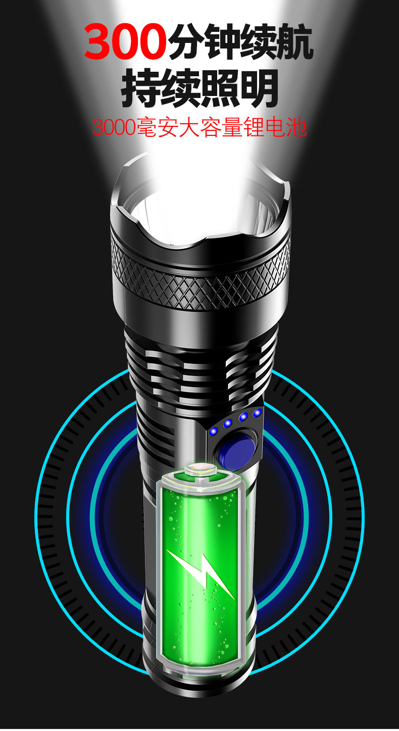 迷你led强光usb充电超亮远射便携多功能手电筒