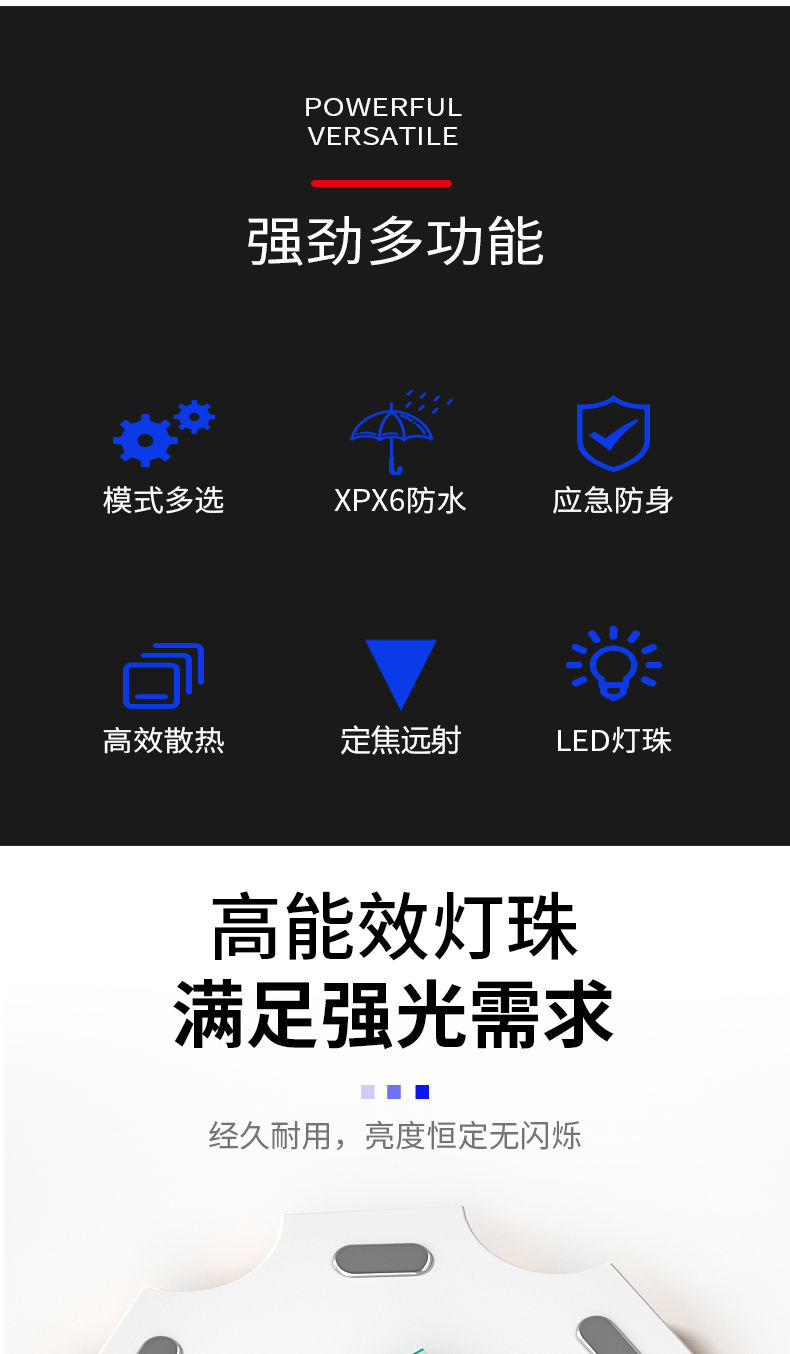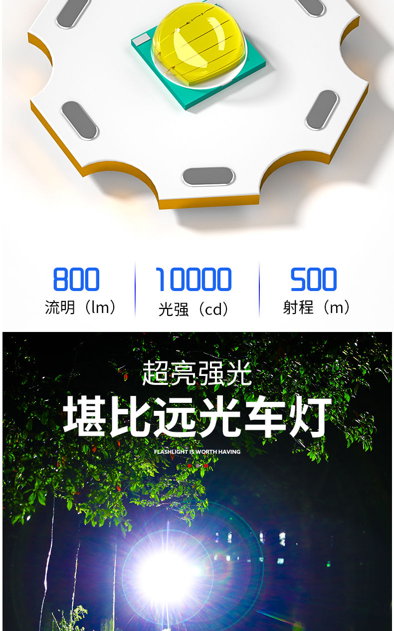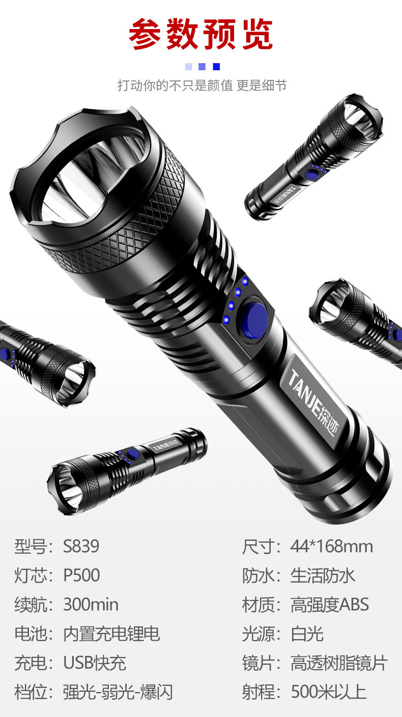 迷你led强光usb充电超亮远射便携多功能手电筒