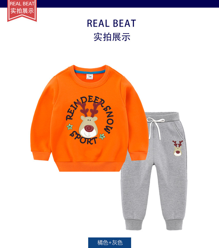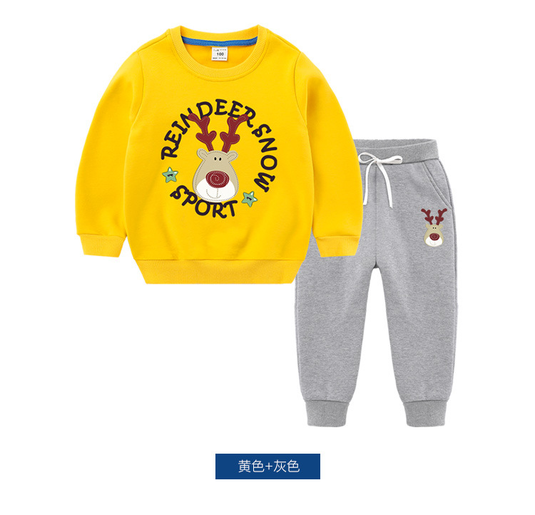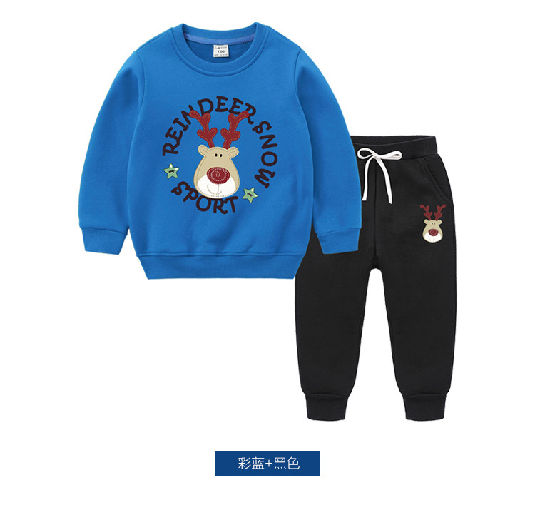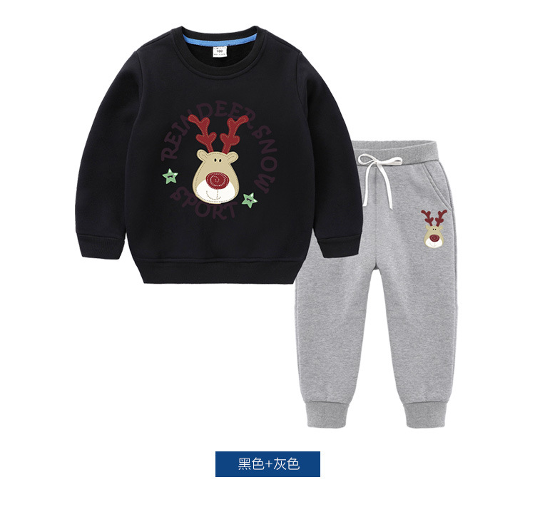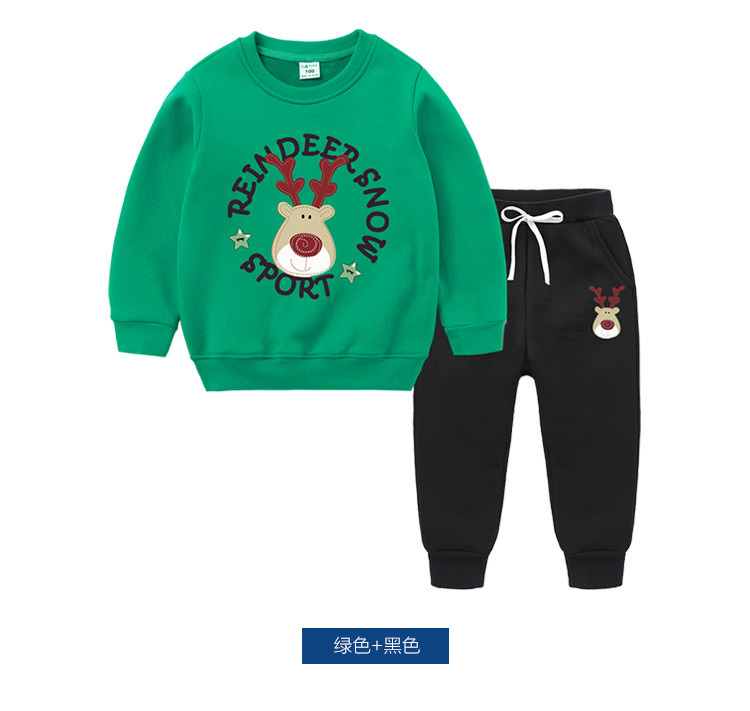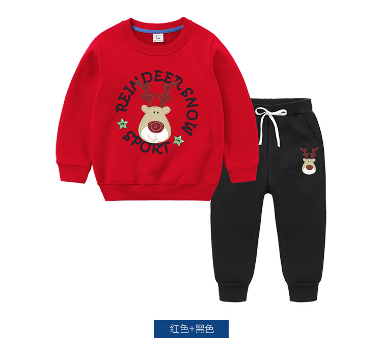 【圣诞复合绒保暖套装】儿童秋冬宝宝加绒加厚套装儿童复合加绒长袖两件套装