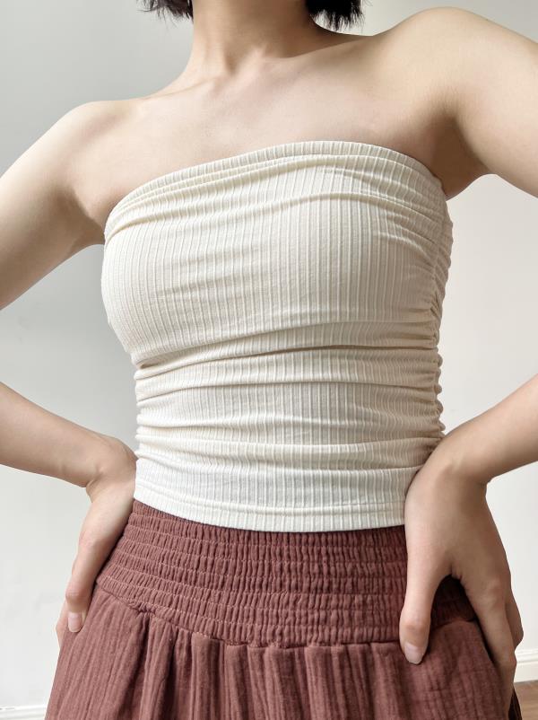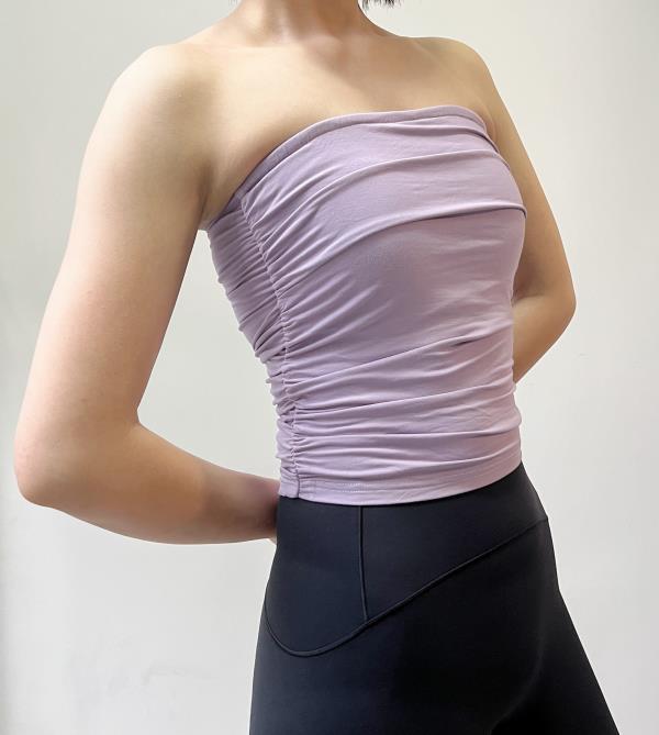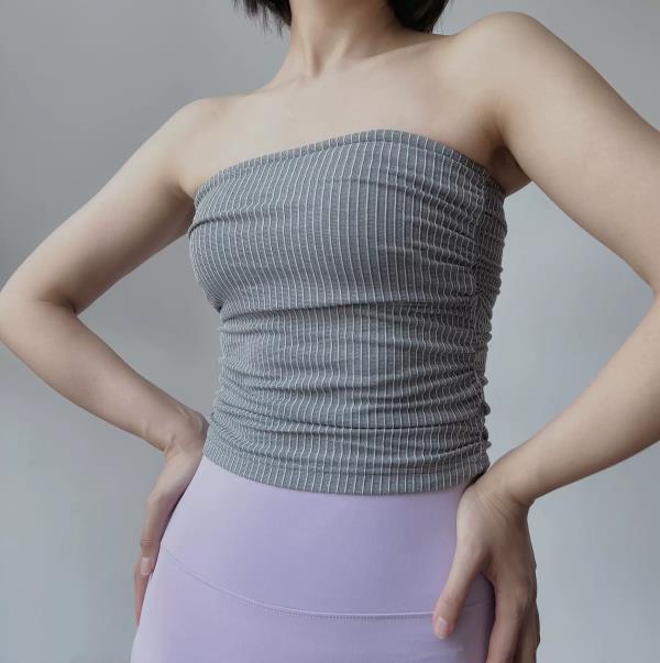 AddOne+1小众设计瑜伽运动亲肤高弹褶皱防滑抹胸背心(含胸垫)