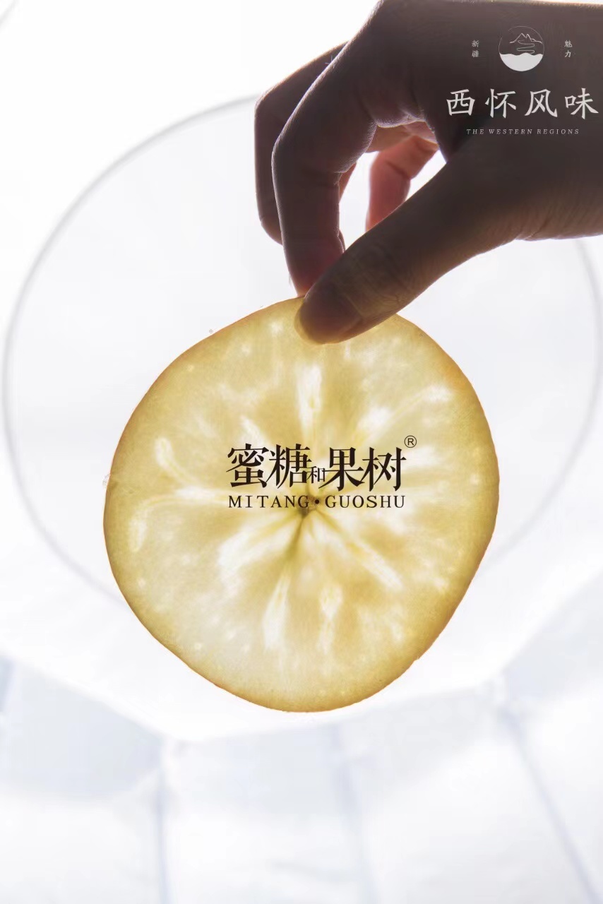 西怀风味甜心果采摘时间有严格的控制,才能符合口感要求 以“冰糖心”的内部结构为特色,没有经过三次霜降的冰糖心可不完美哦!受霜降气温刺激,苹甜心的果糖分往果核部分凝聚,堆积成琥珀色的结晶体,在果肉内形成漂亮的糖心,这是水果的自然糖化现象,也是甜心果好吃的核心