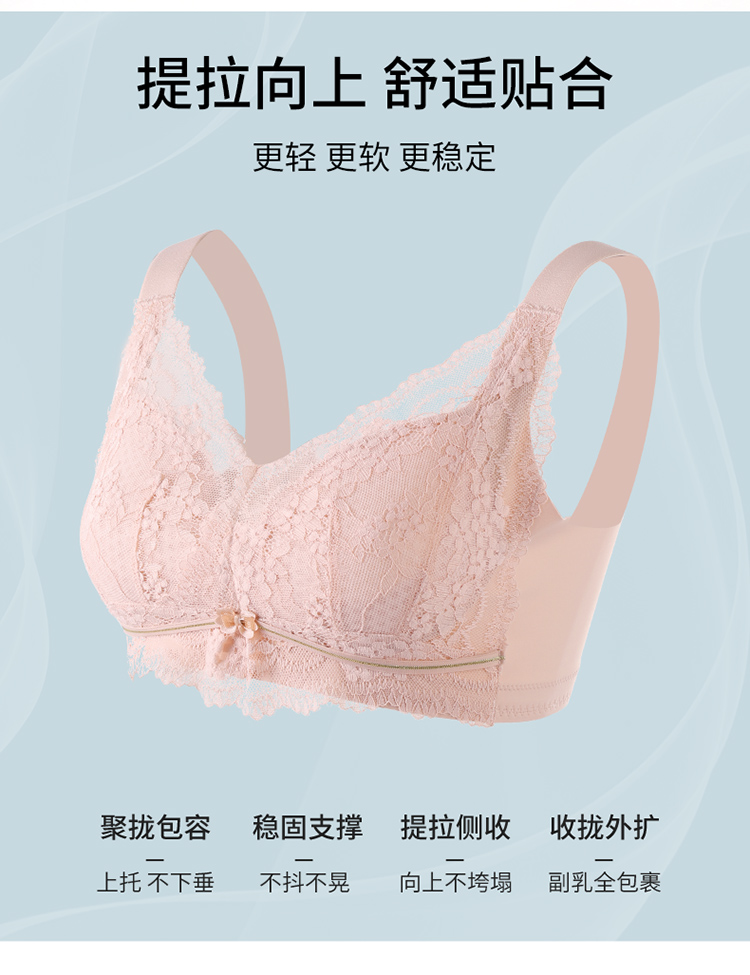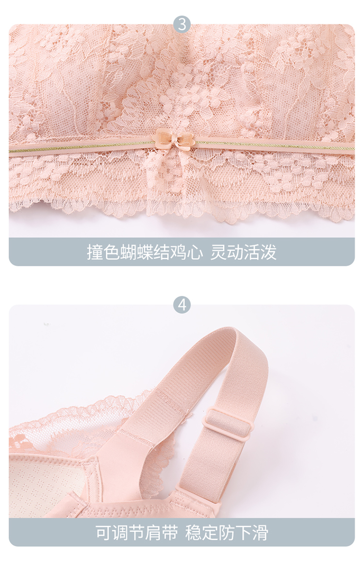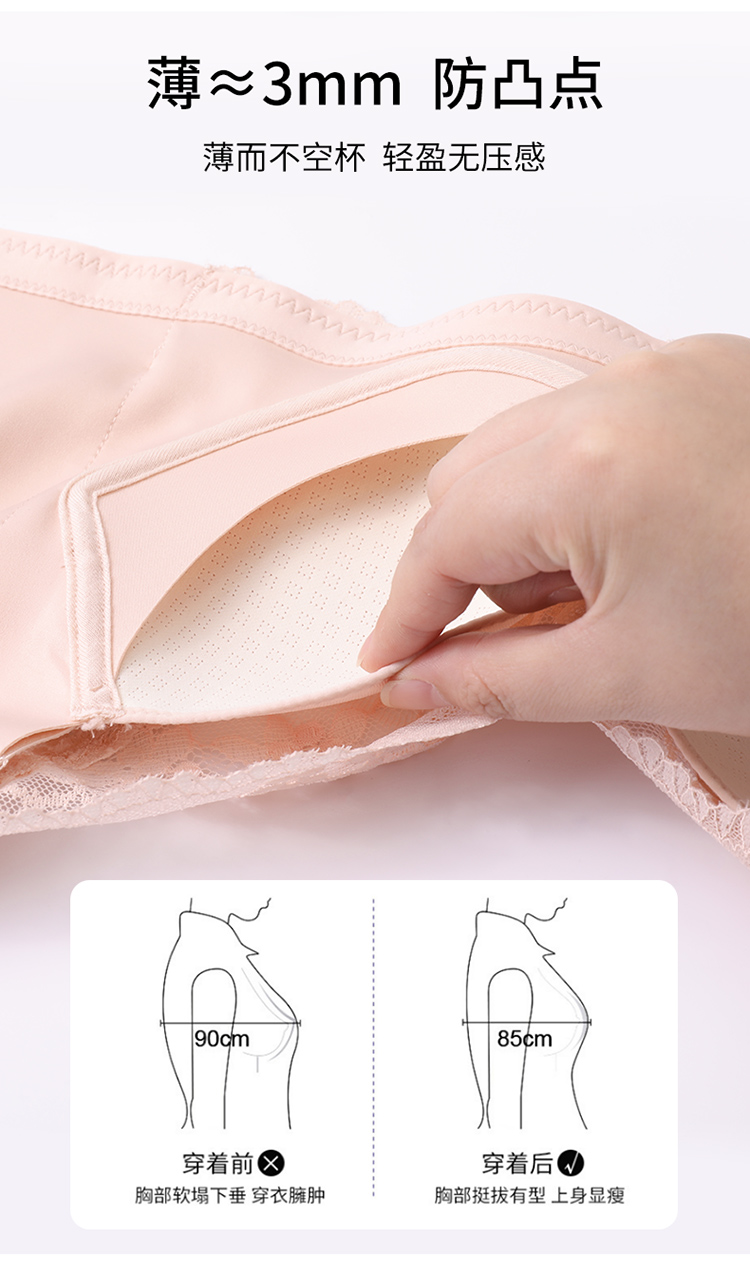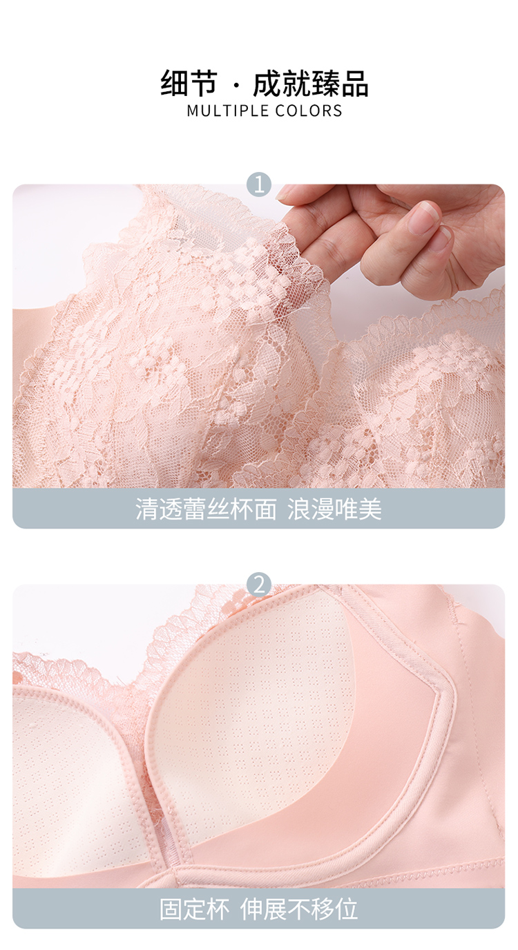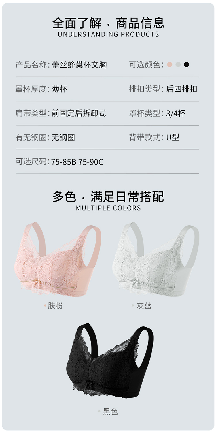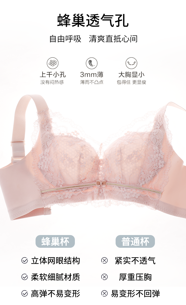 雅黛丽内衣女大胸显小薄款刺绣蕾丝蜂巢杯聚拢文胸无钢圈美背内衣女