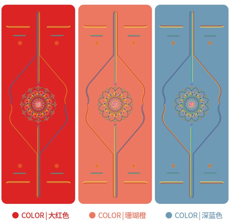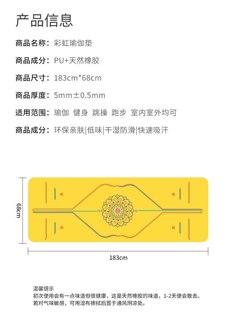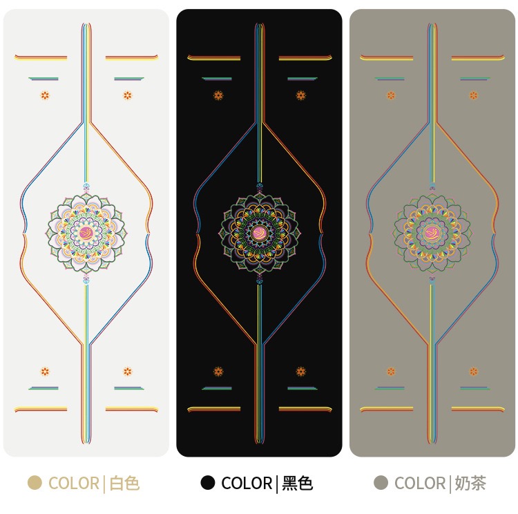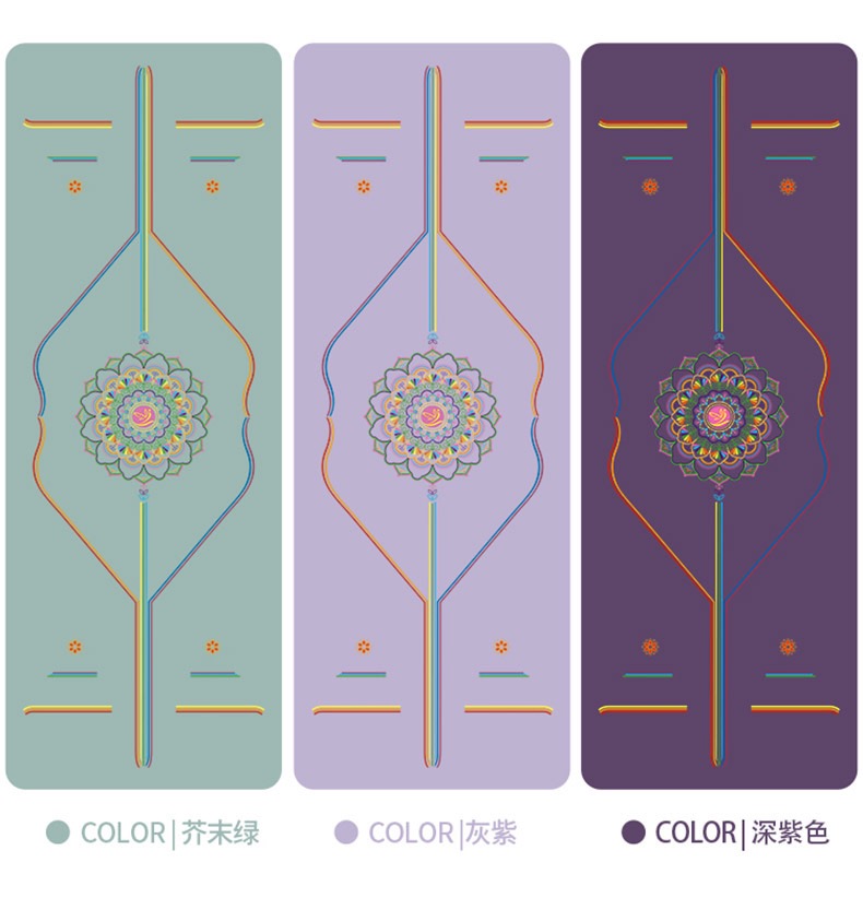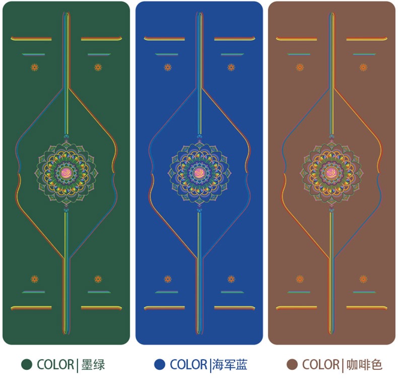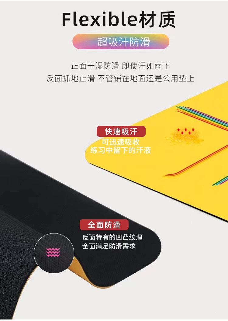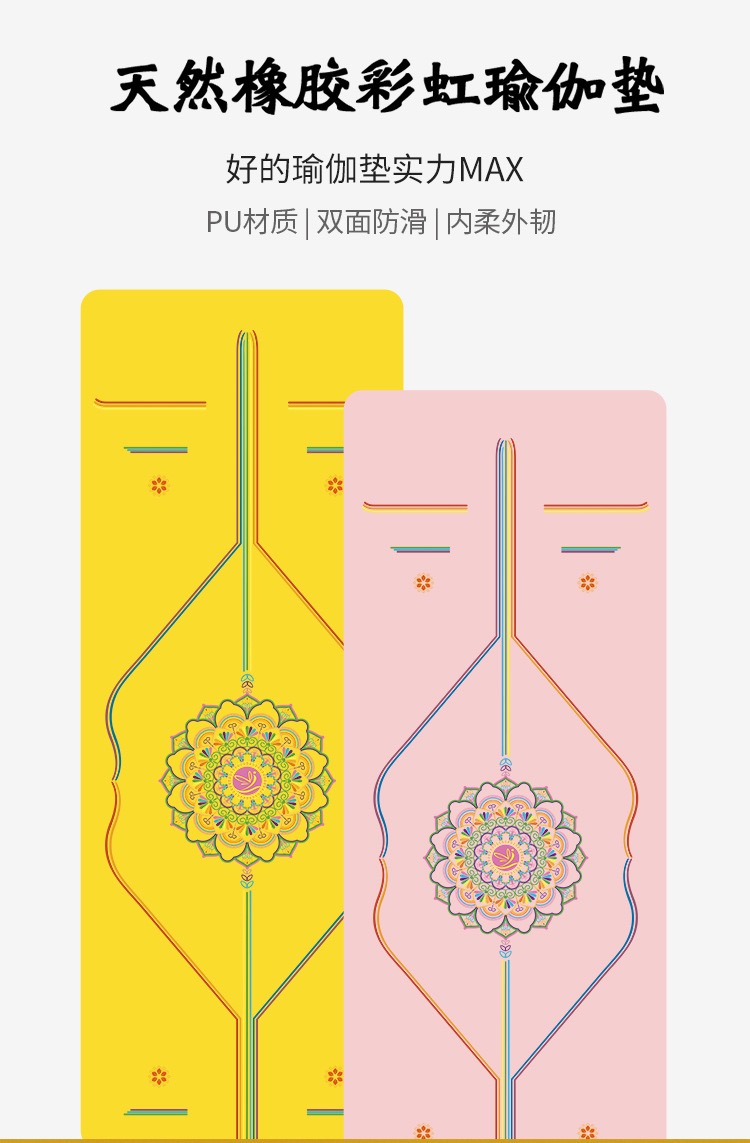 彩虹瑜伽垫PU天然橡胶防滑运动健身垫体位线加厚土豪垫子CK