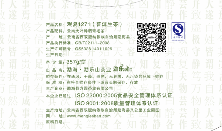 ►2015年6月,勐乐山普洱首次推出观复收藏系列之1271生饼,纪念元朝年间普洱远播海外,以飨南北茶友。